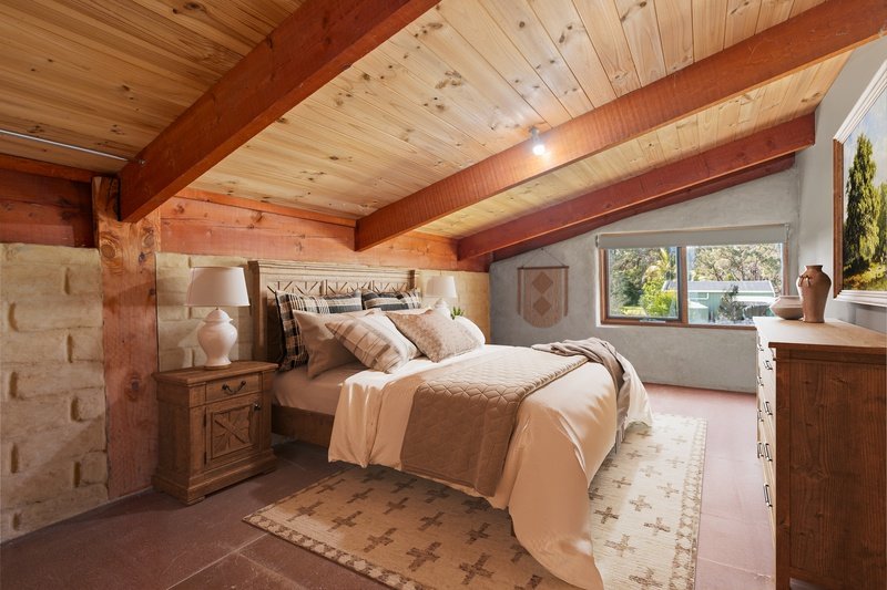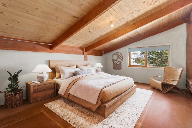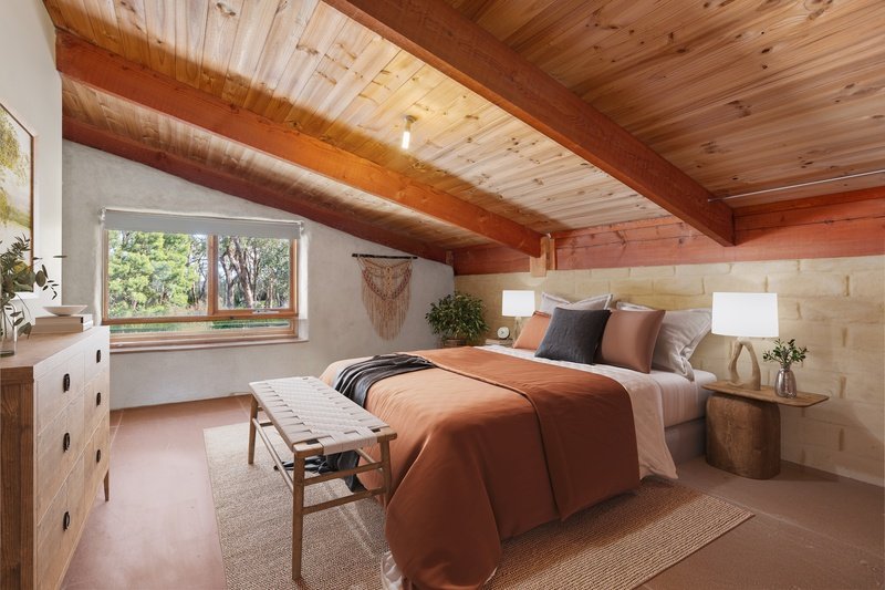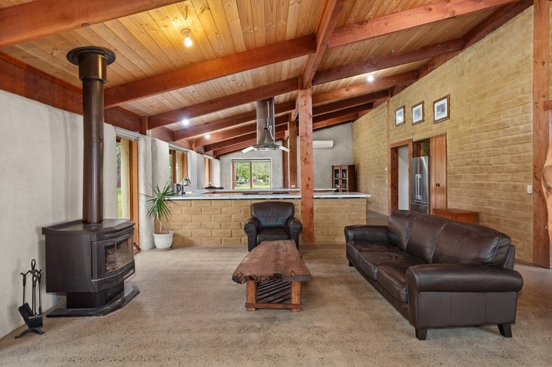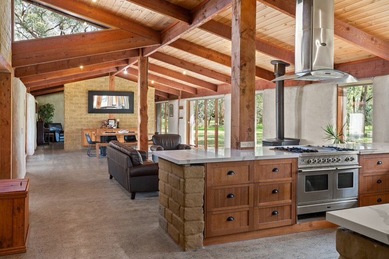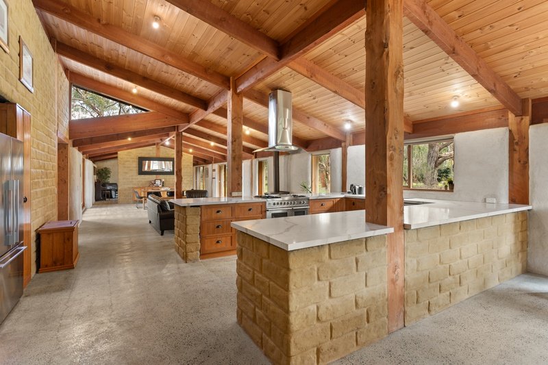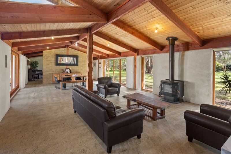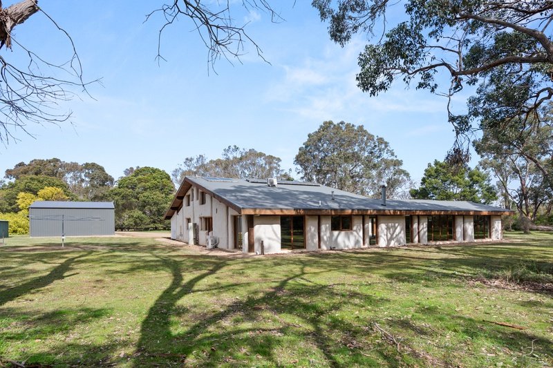 Set on approx. 2 acres of level, fully fenced land, this architecturally designed straw-bale and mud brick home spans approx. 750sqm under roof (plus a large workshop/barn) and blends striking natural materials with passive solar design to create a home of exceptional thermal comfort and timeless character.