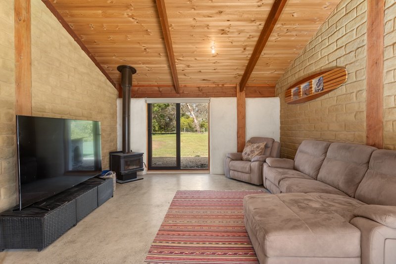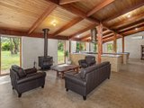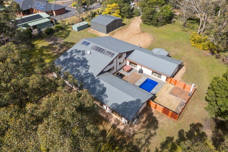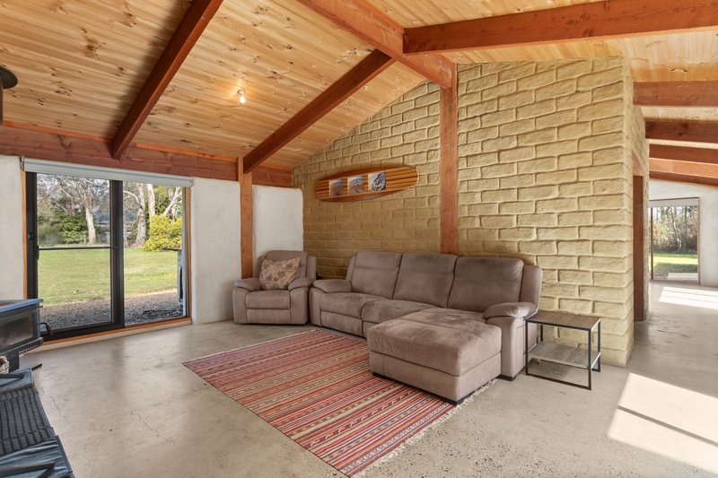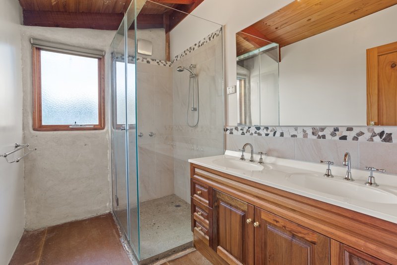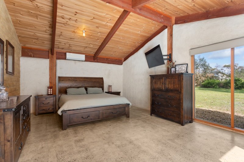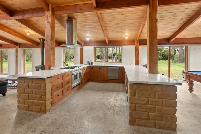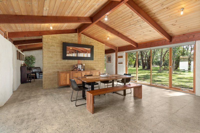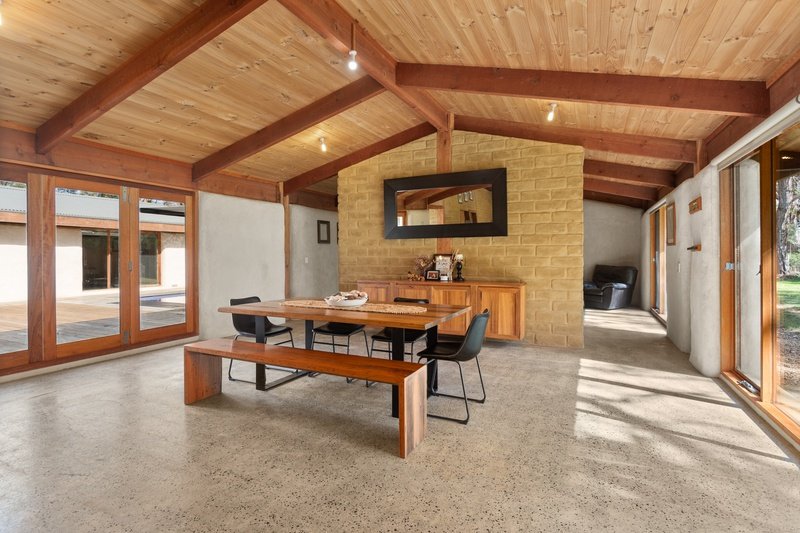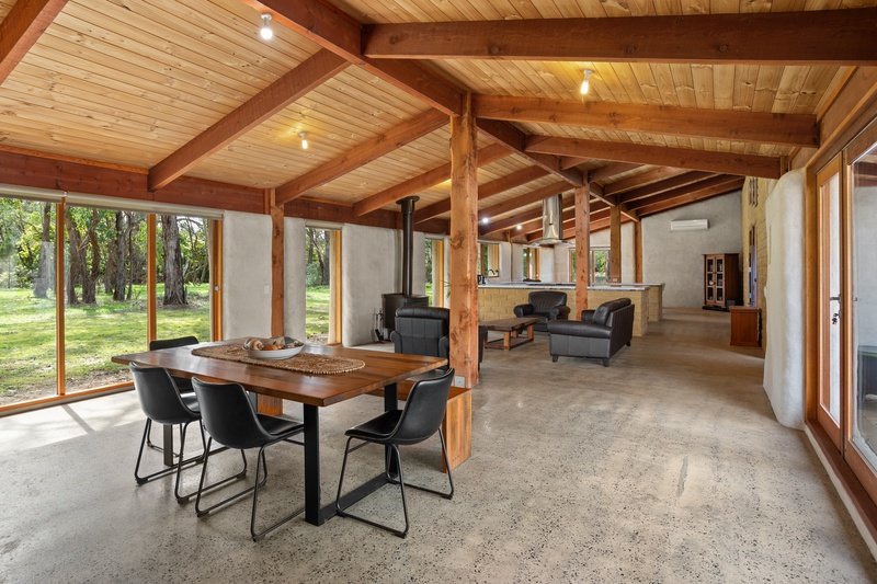 With seven bedrooms, three bathrooms, multiple living zones including a theatre room, billiards room and parents' retreat, this is a rare offering for large families or multi-generational living. Soaring ceilings, 250mm white cypress exposed posts, polished concrete floors, and hydronic in-slab heating reflect thoughtful craftsmanship throughout, while double-glazed windows and rendered straw-bale walls ensure whisper-quiet interiors and near-perfect climate control year-round—rarely needing the 3 reverse-cycle systems or 2 Coonara wood heaters.