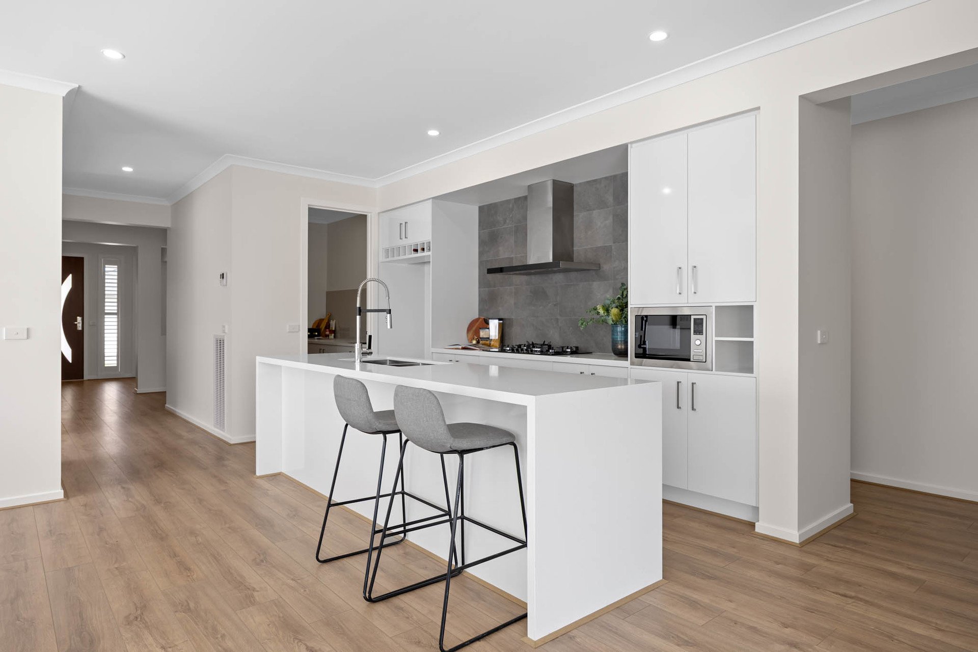 Beautifully designed for exceptional family living, this stylish modern home optimises space, privacy, and natural light to accomplish an effortlessly luxurious lifestyle. Beyond its perfect street presence, interiors reveal balanced functionality, enhanced by gorgeous engineered timber flooring and white plantation shutters.