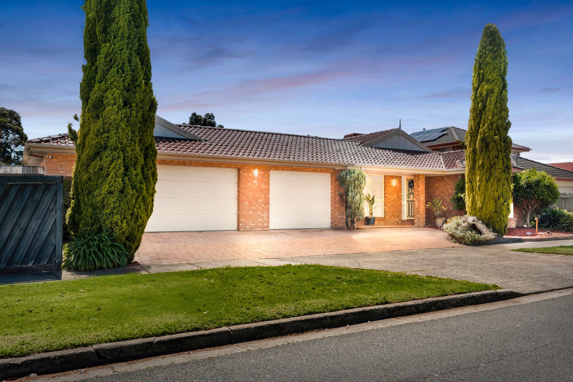 Flowing on, the main hallway soon reaches a spacious kitchen, dining and family room, fully equipped and opening out to an entertainer’s dream. Weather protected and distinguished by feature skylights, a vast paved entertaining area takes alfresco dining to the next level. Big bedrooms with built-in robes reach their peak in a main bedroom with walk-in robe and ensuite, while there’s also a sparkling family bathroom and large laundry with storage.