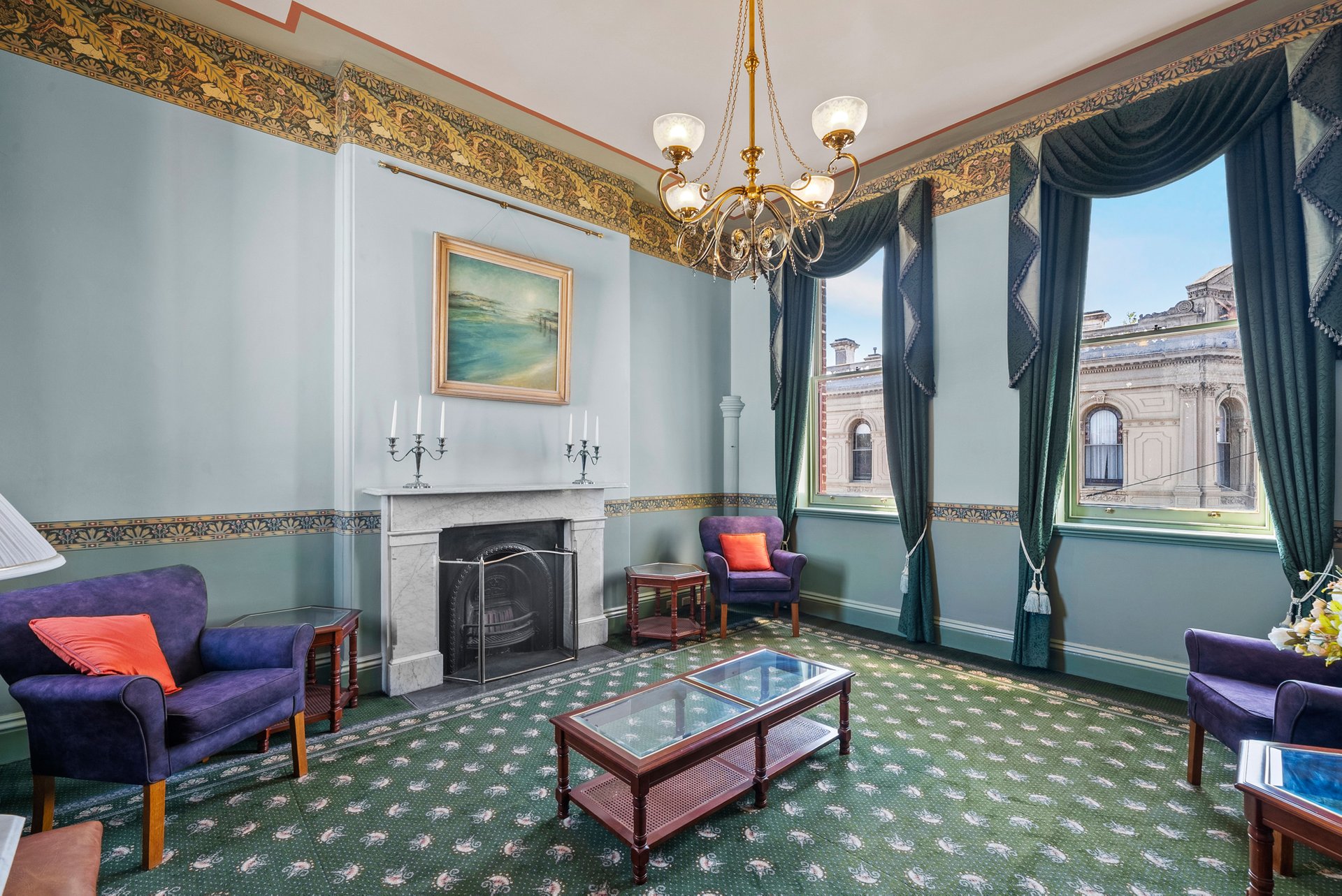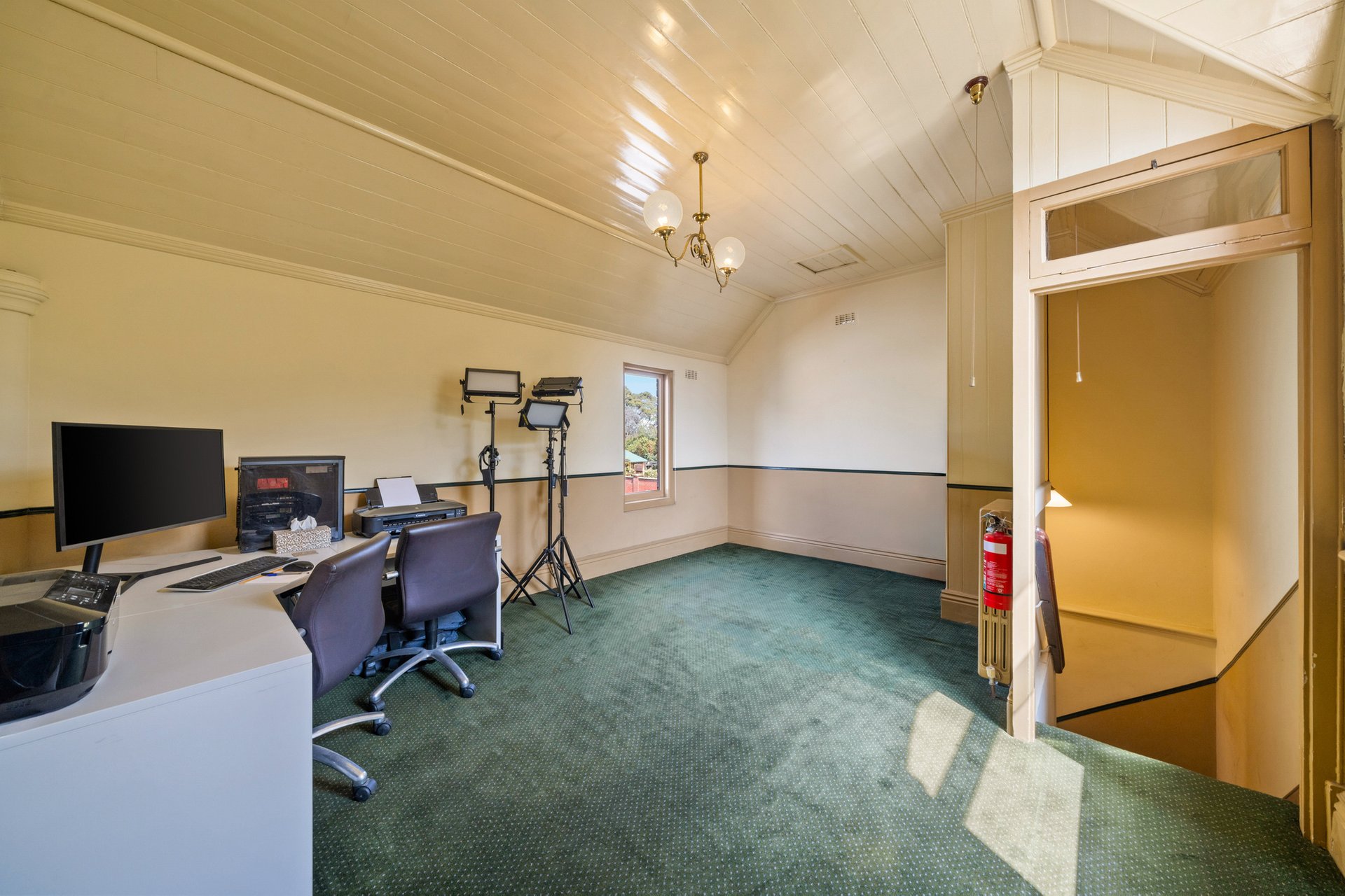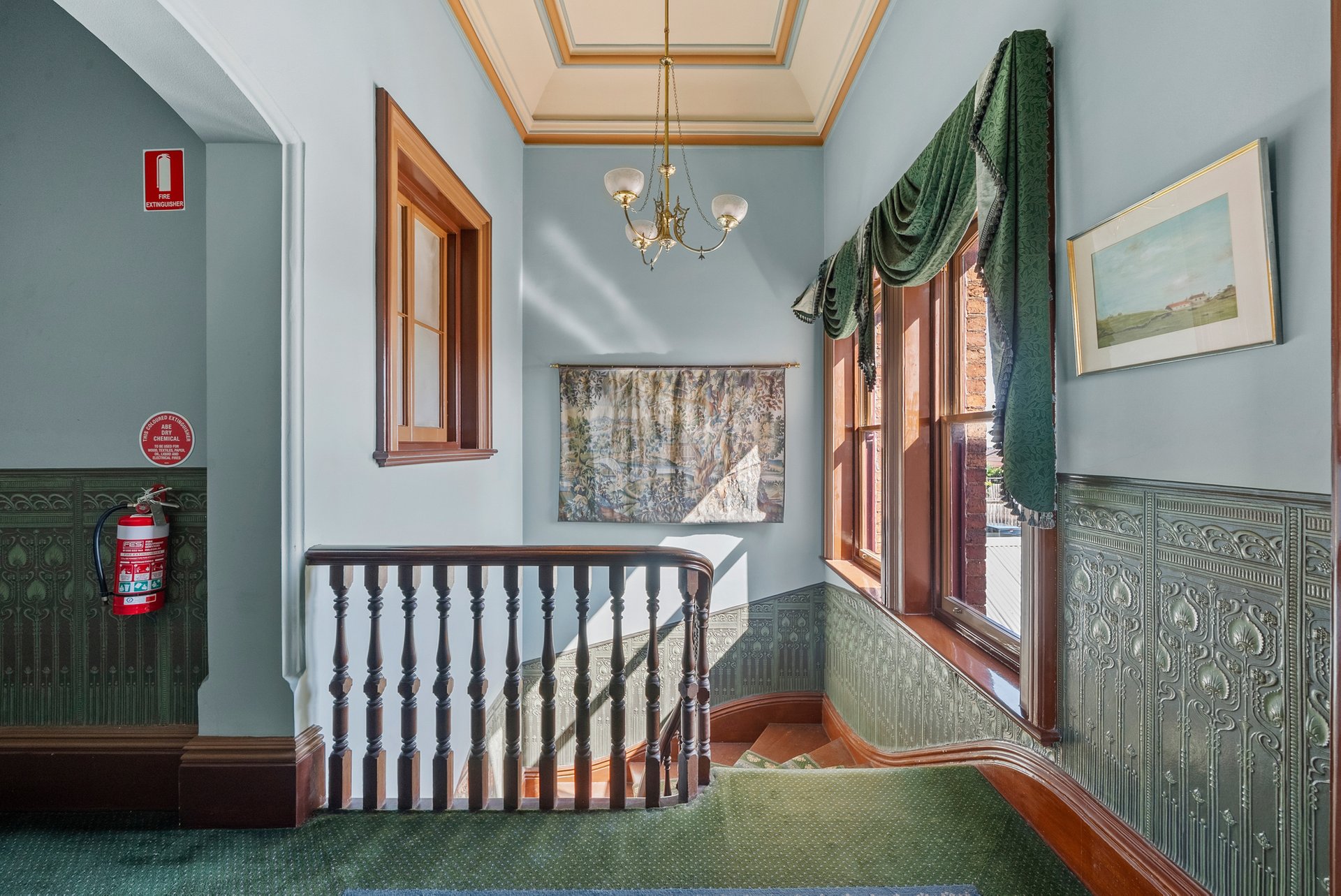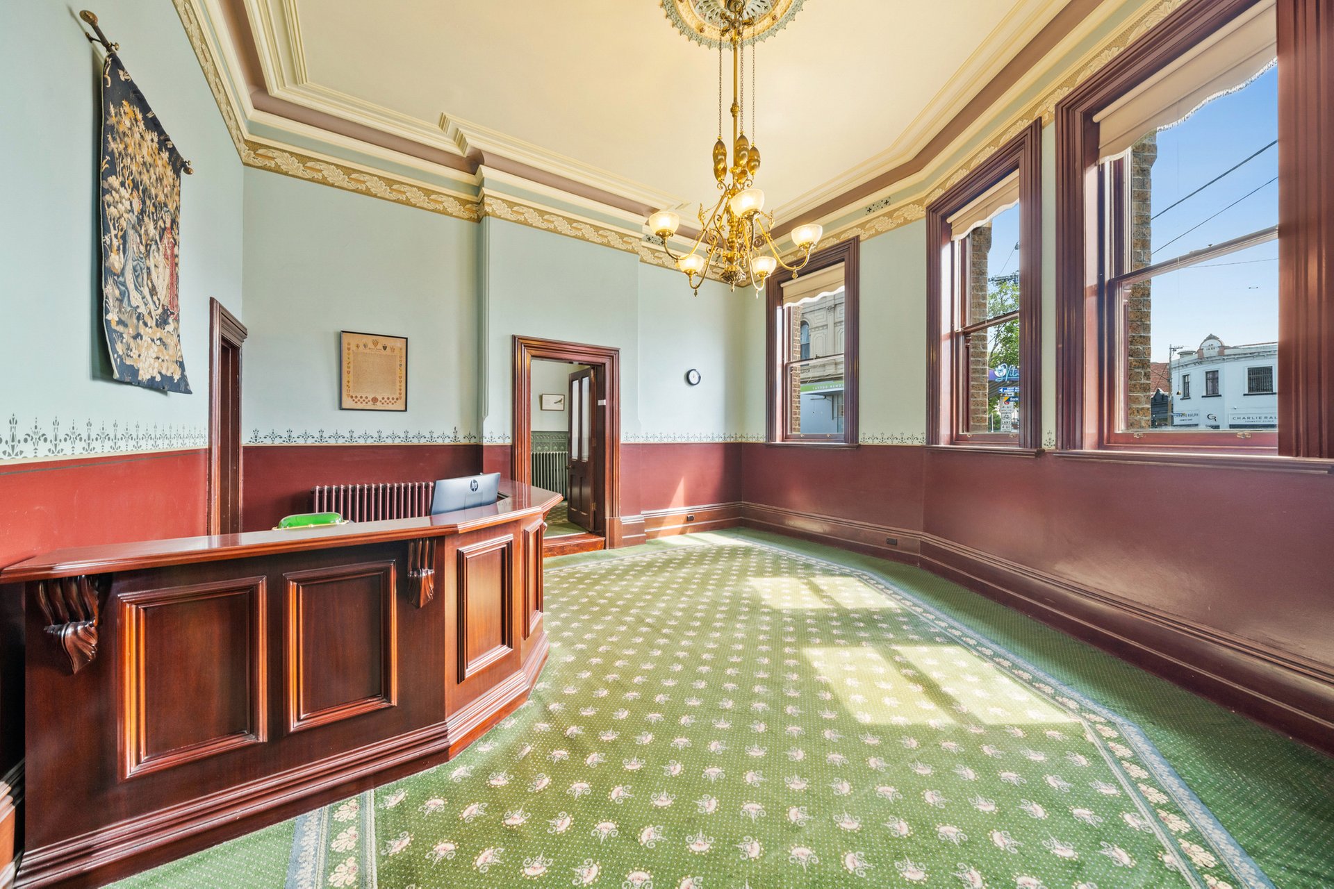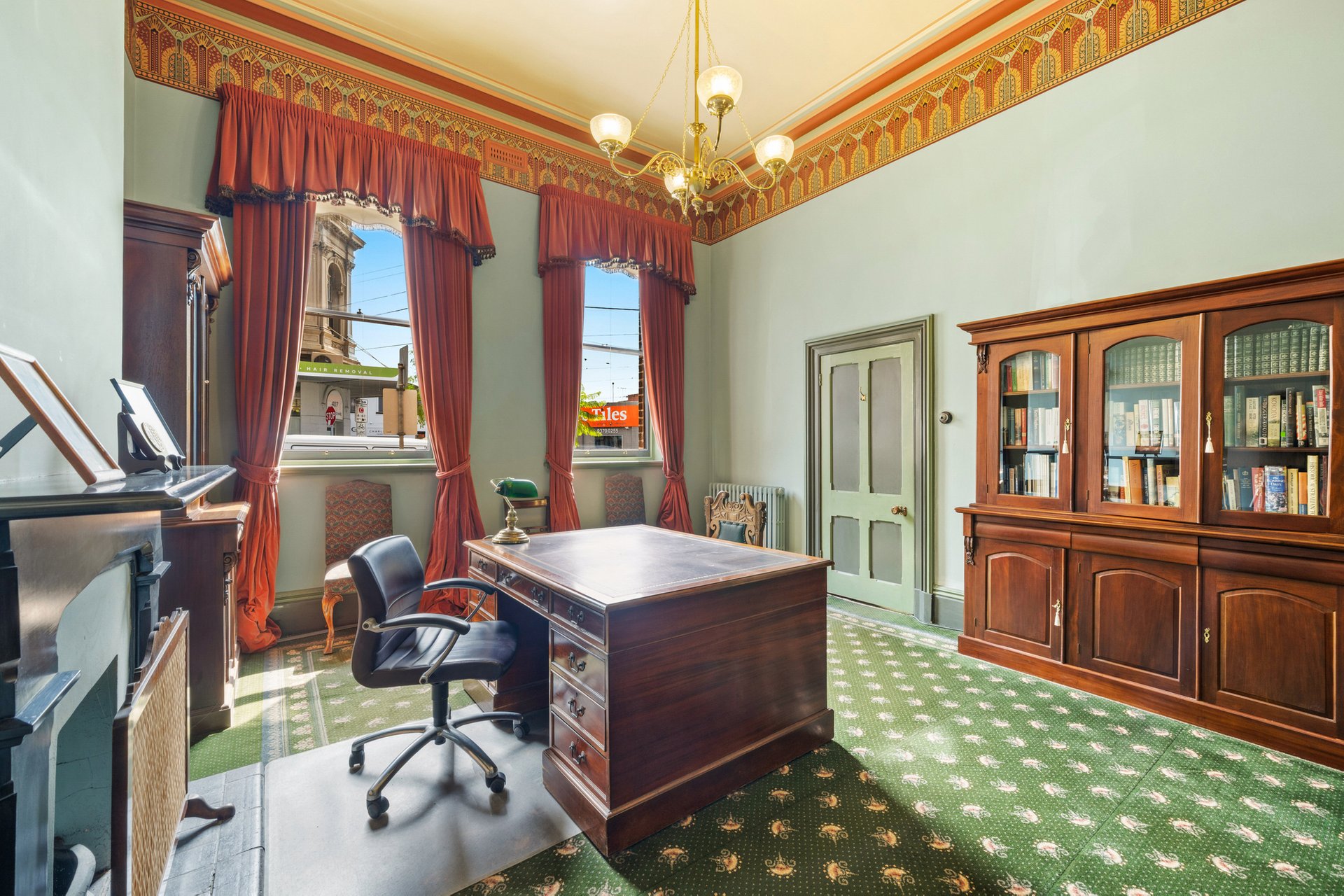 Other standout features include a grand foyer with a Mahogany reception desk and secure vault, period timber detailing, built-in cabinetry, and a statement grand staircase. The home also offers multiple private rooms that can be used as treatment rooms, boardrooms, or bedrooms, with hydronic heating ensuring comfort throughout. An alarm system adds additional security, while rear access via Bank Street provides entry to two remote garages, plus off-street parking for up to four vehicles.