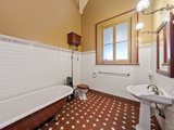 Accommodation includes multiple large rooms, all featuring high ceilings and large windows that enhance airflow and light. The master offers space and flexibility for a variety of uses, while the second bedroom is equally generous. Both rooms are ideal for bedrooms, offices, or consulting suites. The period-style bathroom is beautifully appointed with a clawfoot bath, heritage tiling, brass fixtures, and a traditional vanity.