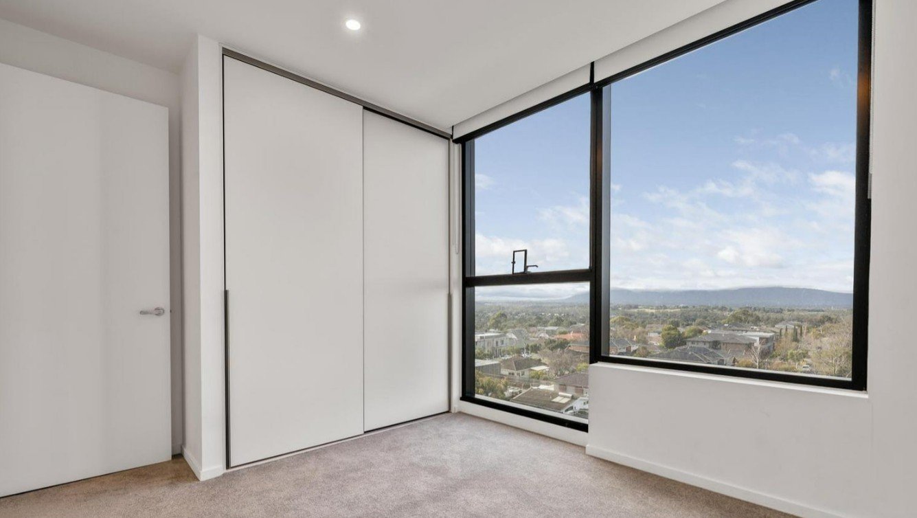 Whether you’re unwinding in the living area or kicking back on the sheltered balcony, the panoramic outlook to the lush Dandenong Ranges transports you to another world. The high-end kitchen impresses with stone benchtops and splashbacks, Miele appliances (including an integrated dishwasher), soft-close cabinetry, a walk-in pantry and an island bench perfect for casual dining.