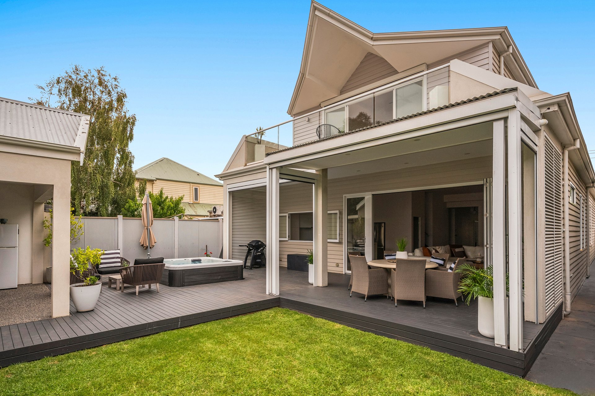 Positioned in a blue-ribbon setting, this magnificent four bedroom plus office/study, two bathroom Edwardian (circa 1910) unfolds with beautifully preserved grandeur, while its contemporary conversion elevates the home for families who love to entertain. Behind its storybook façade adorned with leadlight windows, timeless elements such as high decorative ceilings, mantle fireplaces and timber floors are artfully offset by modern plantation shutters and sleek stone surfaces. Unwind after a busy day in the bright family/dining domain, where generous open space flows to a chef-inspired kitchen appointed with quality Miele appliances including a dishwasher. A waterfall island, walk-in pantry, wine cellar, soft-close cabinetry and a servery window complete the deluxe package. Bi-fold doors open to an L-shaped decked alfresco boasting a private hot tub and landscaped garden. A remote controlled garage and carport with rear ROW expand the stage, creating a sheltered area perfect for hosting unforgettable soirées. What's more, a dedicated office/study and an upstairs rumpus room with a sunny balcony accompany the robed bedrooms and two sparkling bathrooms, one showcasing a classic clawfoot tub, the other with a double vanity. Further highlights comprise ducted heating, split-system units, ceiling storage, a full-size laundry and alarm. Zoned to Strathmore Secondary College, it's moments to Glenbervie Station, vibrant North Essendon Village, Allison Park and Windy Hill. It's also less than a five minute drive to prestigious schools, freeways and Keilor Road hotspots.