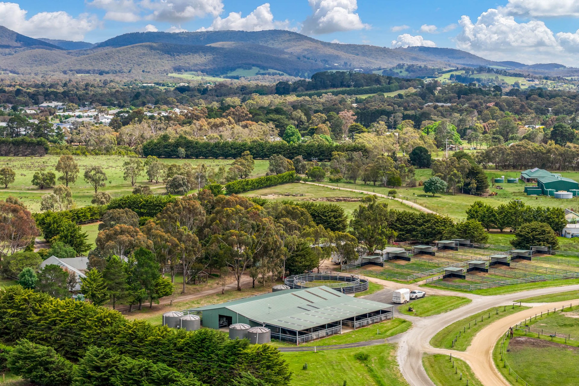 Boasting wonderful indoor-outdoor connection, the gracious main residence features a generous floorplan with open dining/living areas adjoining a modern kitchen with 900mm SMEG cooking along with 3 bedrooms and 2 bathrooms, while an independent fully self-contained unit includes its own kitchen, lounge, bedroom, and bathroom. Outdoor entertaining is another highlight, with expansive pergola and arboured alfresco areas and fenced house gardens. Additional accommodation of 1 bedroom, bathroom, kitchen, and lounge is located in the main stable – ideal for use as staff quarters. Also includes split system heating/cooling, automatic entry gates, security system, greenhouse, and car-shed. A landmark Macedon Ranges opportunity!