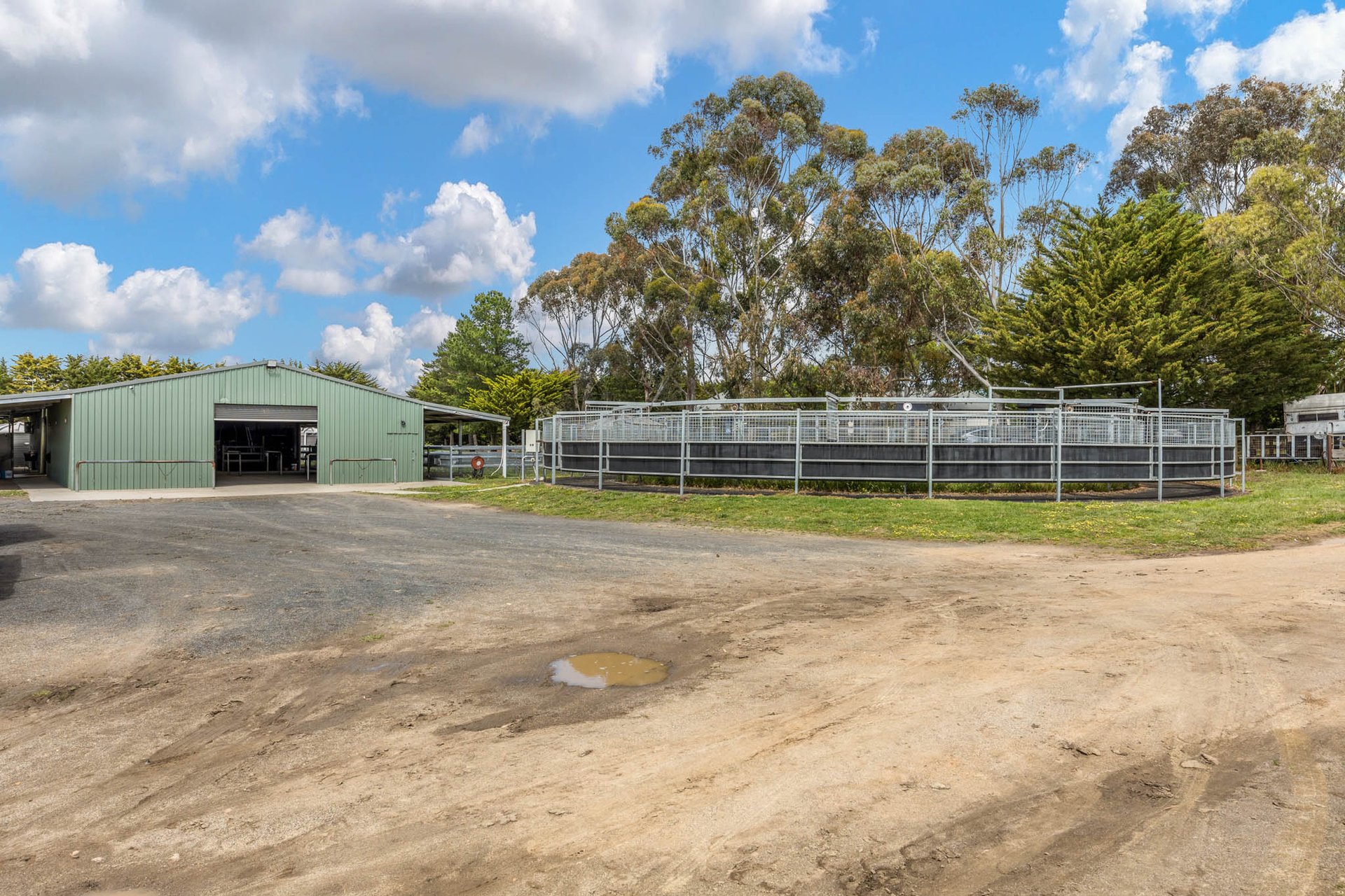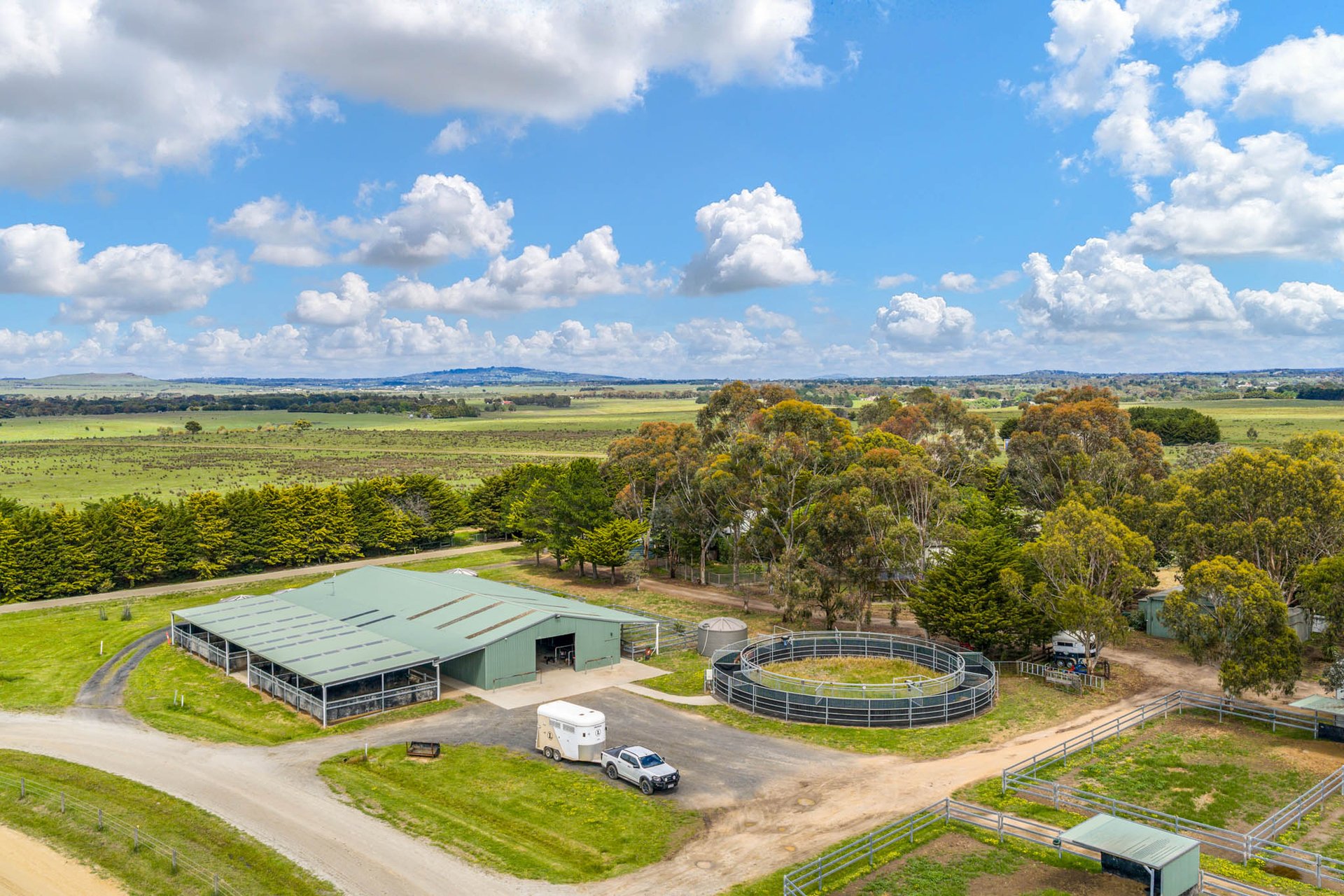 First-rate equestrian facilities include an 1150m all-weather training track, 1600m figure-8 training track, 10 double fenced paddocks with shelters and automatic water, an 8-horse electric walking machine, 10 steel yards with shelters, 3 day yards, 2 wash bays, and main stable with 4 x 4m stables, 6 steel semi-covered stables, 6 undercover yards, 8 individual cross ties/tie ups, and lockable tack room. Further infrastructure includes a machinery shed, hay shed, 4 dams, and 66,000-gallon capacity water tanks with reticulated water to all paddocks and yards (all measures approximate).
