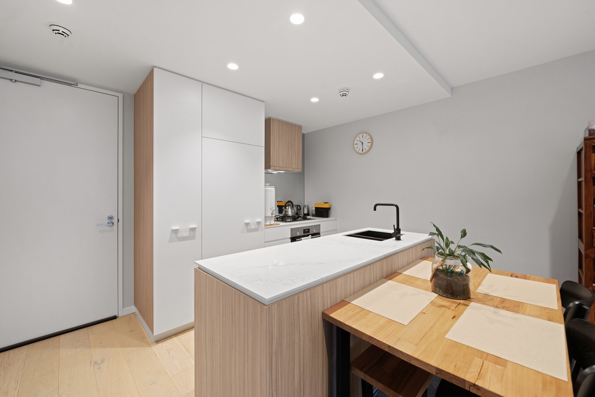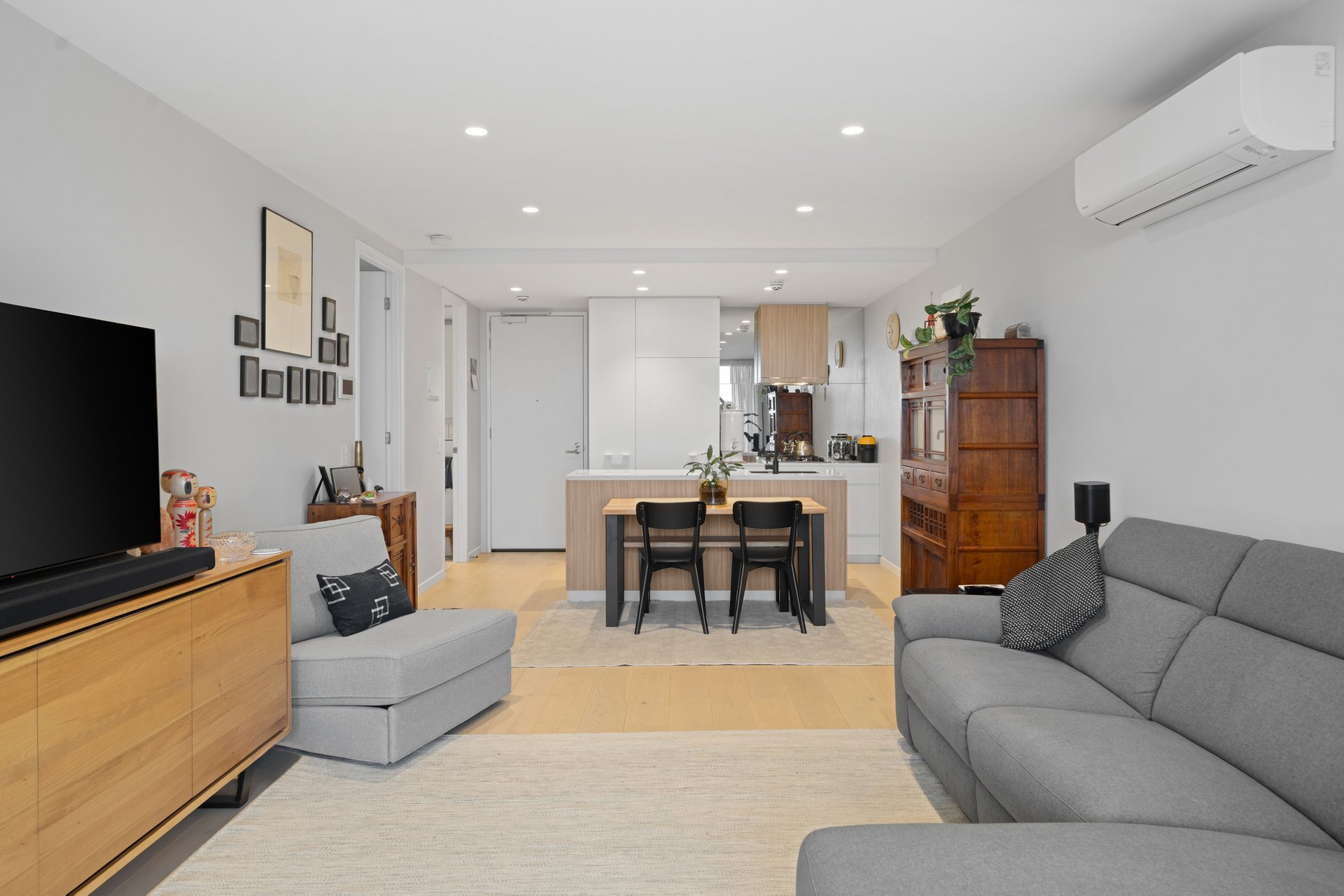 Quietly positioned in the landmark Rothelowman-designed One Coburg Quarter building, this fourth-floor apartment presents an exciting heart-of-Coburg lifestyle opportunity with its impressive proportions, premium inclusions and exclusive residents' facilities to enjoy. Corner-positioned for an abundance of natural light, the home's mint interior boasts two generous bedrooms (large master) both with mirrored robes, as well as a deluxe ensuite and equally-stylish main bathroom - both fully tiled. Flanked by floor-to-ceiling windows, the spacious and versatile open-plan living/dining area is further enhanced by a sleek stone-bench kitchen complete with mirrored splashback, soft-close drawers, Bosch cooking appliances and integrated dishwasher. Other stand-out features of this new apartment include a fully undercover balcony with elevated outlook, as well as a European laundry with trough, Daikin split-system heating and cooling, double-glazed windows, on-trend black fittings and engineered timber floors. Completing the picture is a secure foyer with fob entry and video intercom, secure parking space and storage cage, plus residents' library, lounge and kitchenette (ground-floor) and huge rooftop entertaining terrace with built-in BBQs and spectacular city views. Sydney Road trams are moments away along with an array of cafes, boutique shops and major supermarkets at your fingertips. It's also walking distance to Coburg Station, Pentridge Piazza and Palace Cinemas, as well as easy access to local schools, Coburg Lake Reserve and Merri Creek Trail. Owners Corporation Fee: $1,173.20 per quarter.