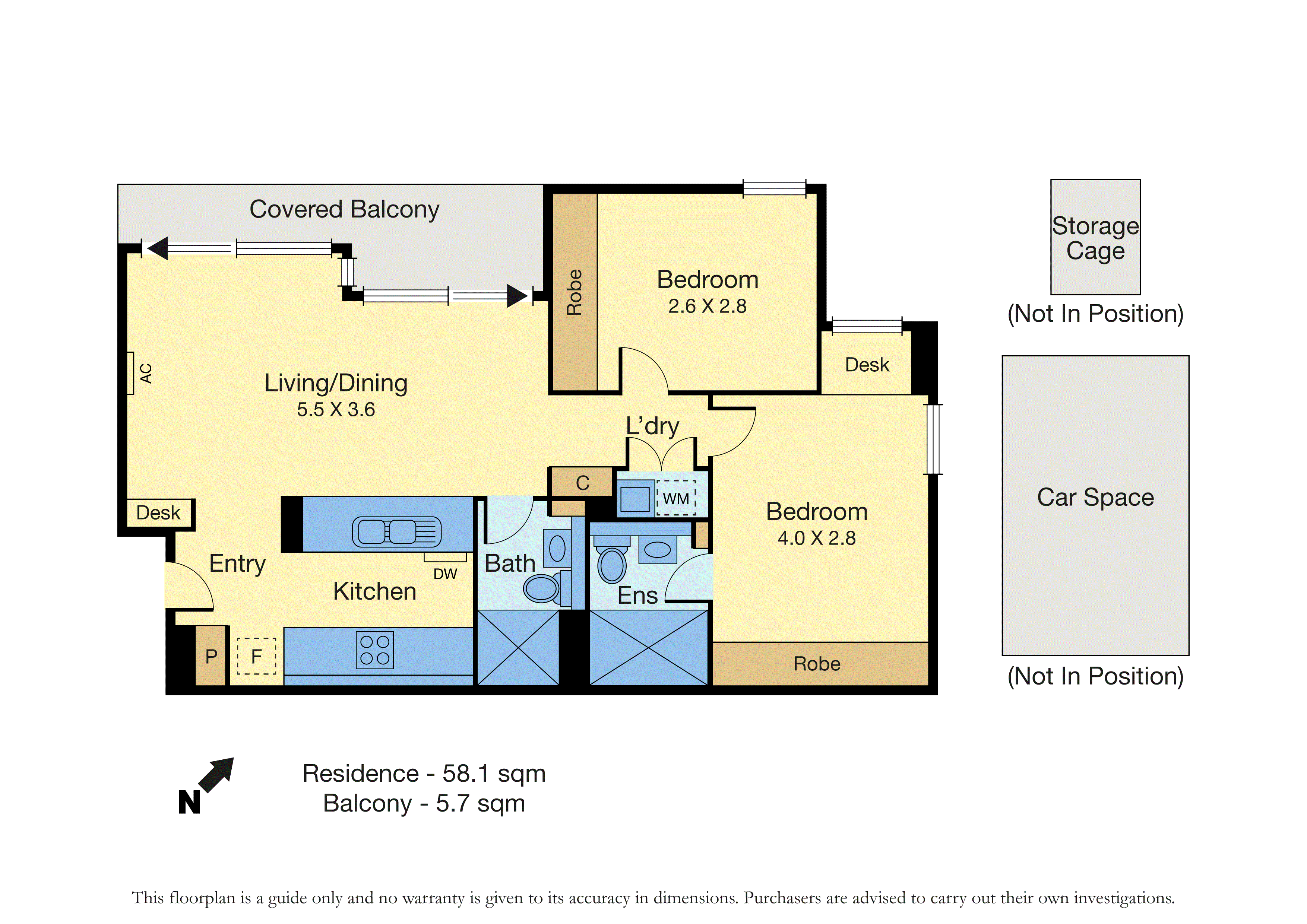 The two bedrooms incorporate a main suite with built-in robes, an integrated study nook and an elegant ensuite. The second bedroom also has built-ins and sits near a central bathroom. A European laundry, split system air conditioning and second workspace complete the essentials, while floorboards and floor-to-ceiling glass add designer energy to the mix.