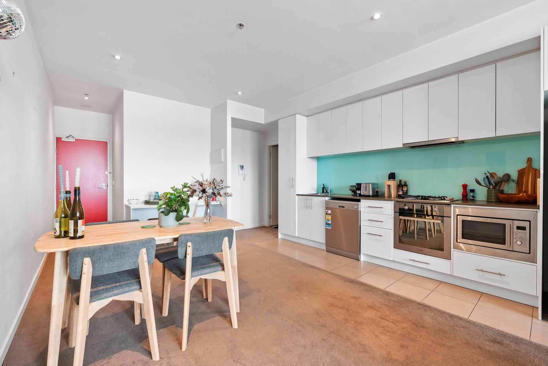 Other highlights include a built-in study desk in the living area, split-system heating/cooling, secure intercom entry and a dedicated car space (not a stacker!)