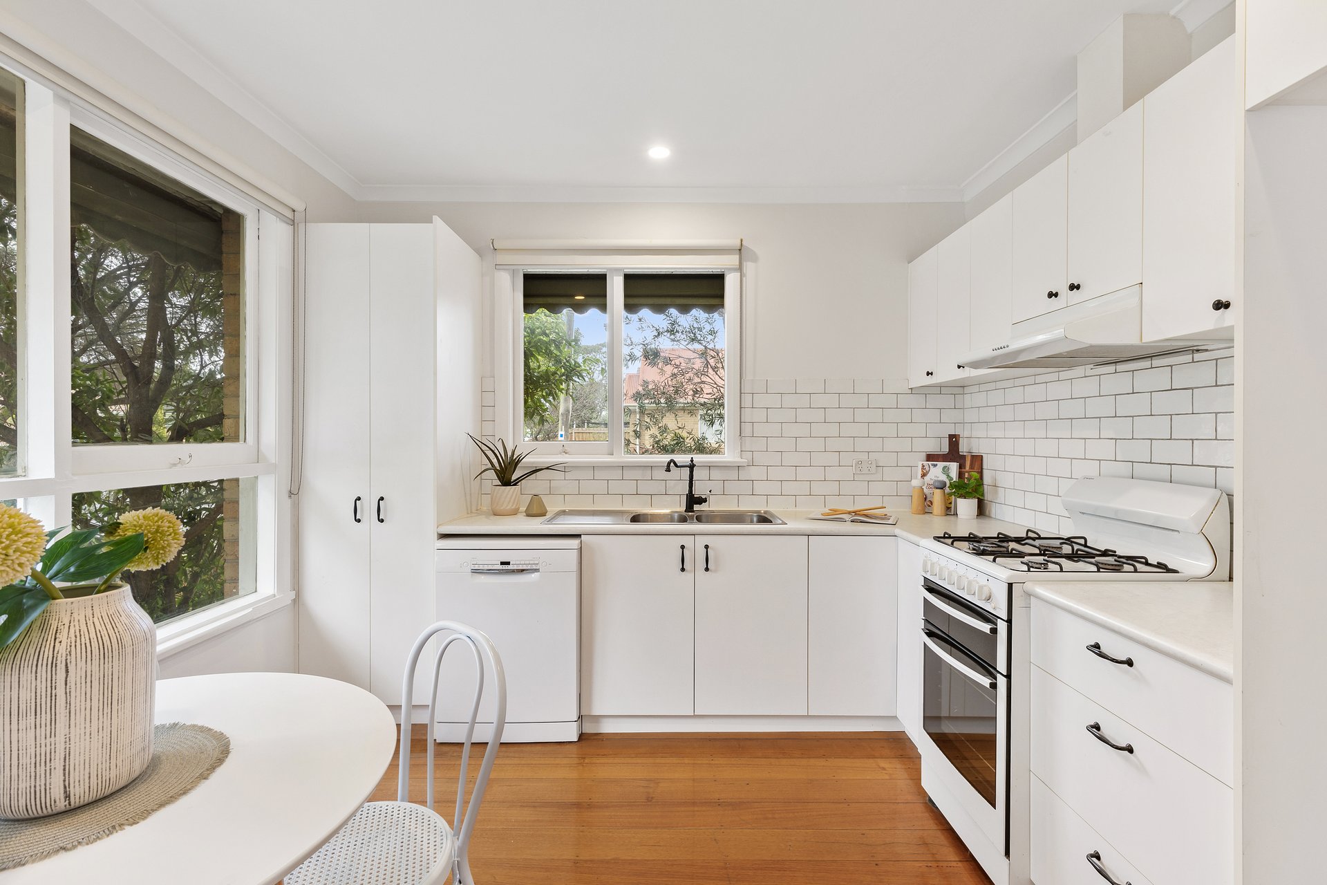 The home opens to a welcoming lounge and dining domain where polished timber floors, crisp white walls, and expansive windows create a sense of warmth and openness. The adjoining kitchen has been tastefully modernised, boasting stone-look benchtops, quality stainless steel appliances, tiled splashbacks, and abundant storage—all designed to meet the demands of contemporary living.