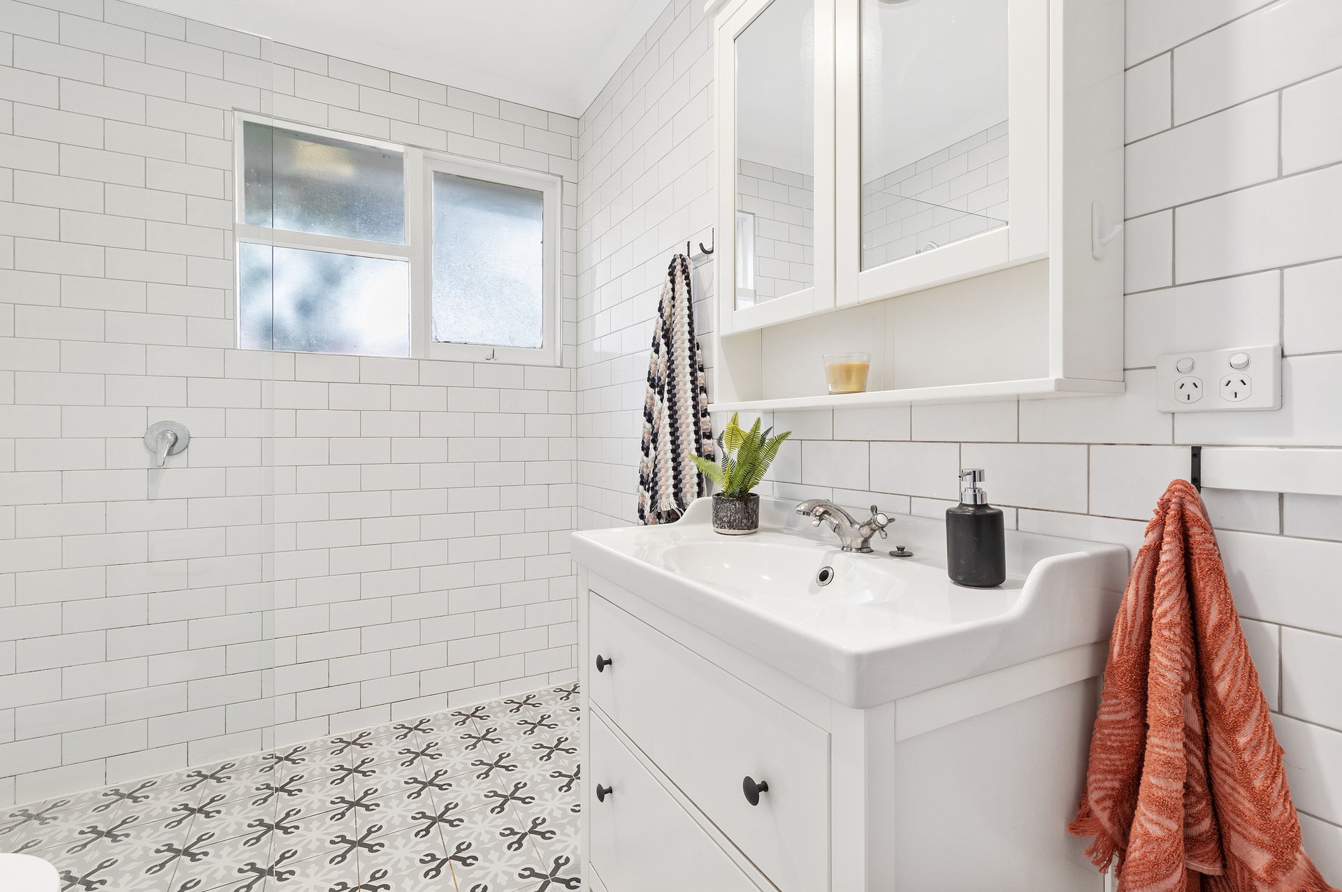 Accommodation comprises two well-sized bedrooms, each with built-in robes, complemented by a stylish central bathroom showcasing sleek white tiling and modern fittings. Additional highlights include central ducted heating, European laundry, split-system heating and cooling, and a private entry with established front garden( front garden not on title) plus access to communal parking (parking not on title) and communal facilities at the rear.