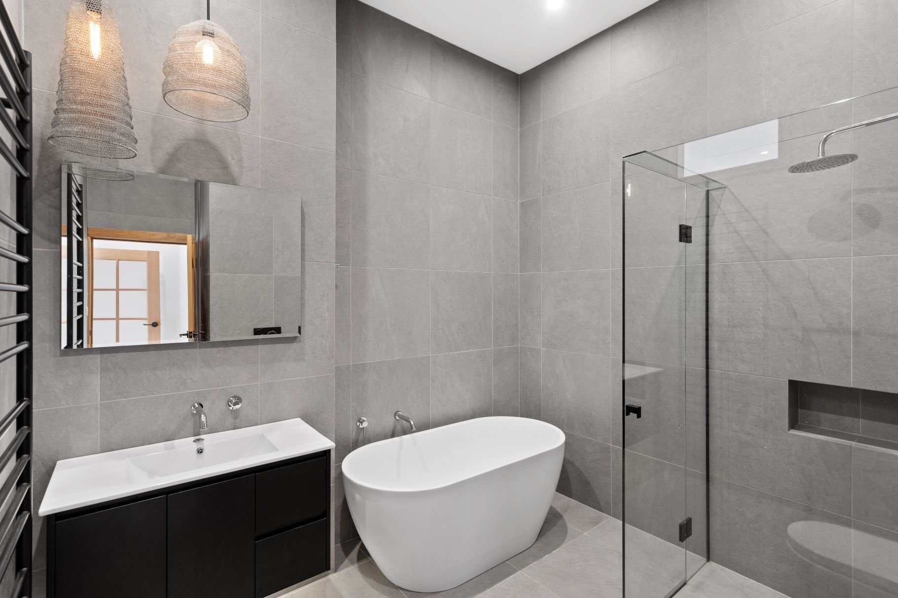 -Central bathroom with free standing bath and separate shower