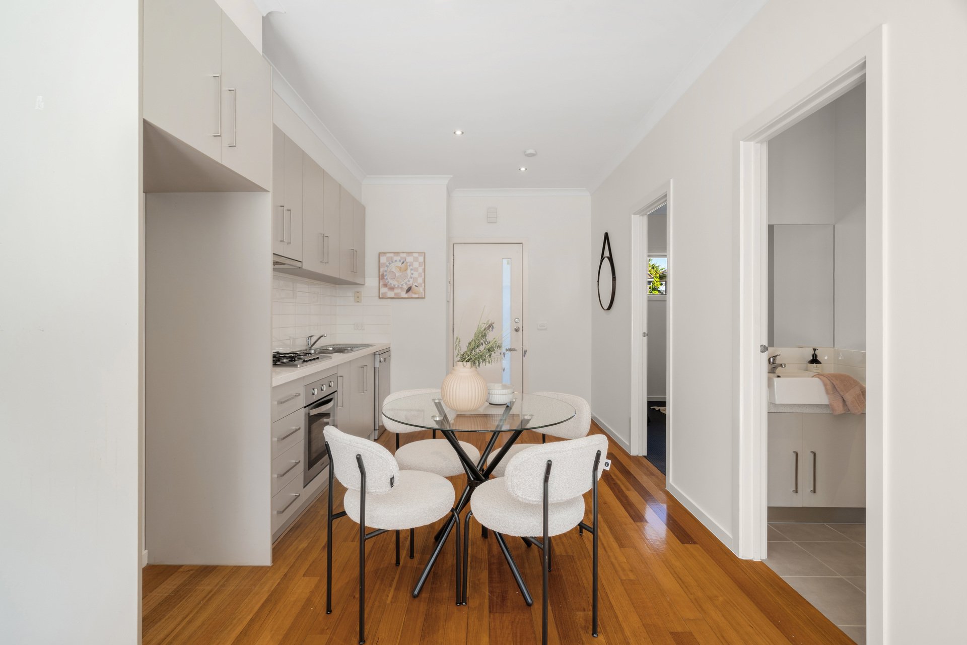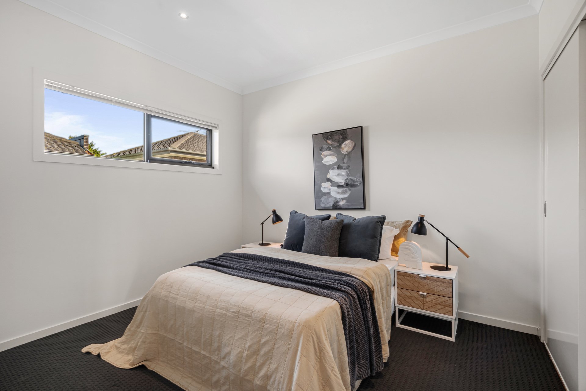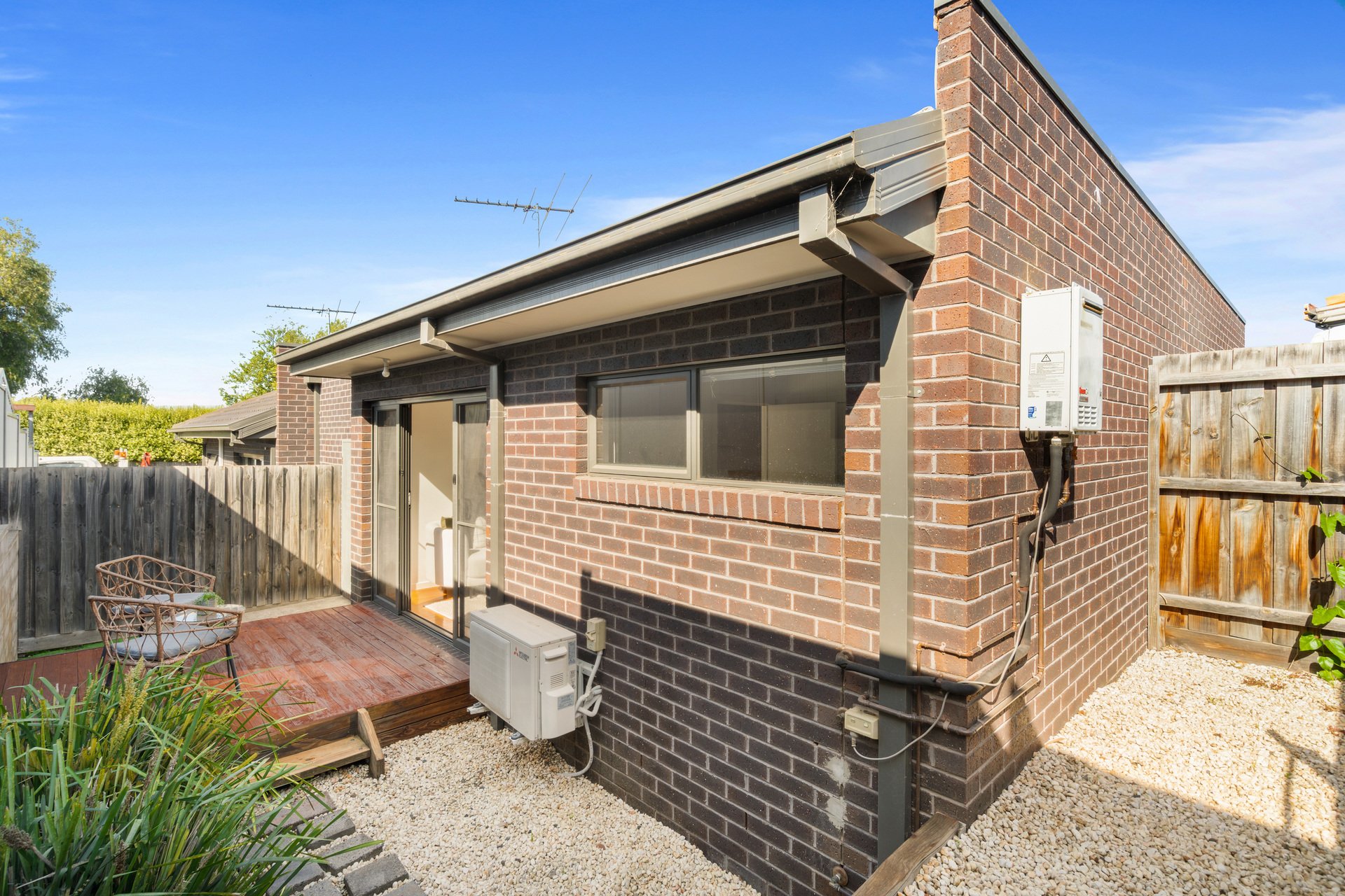 Slide the glass doors wide and step out to enjoy quiet morning coffees, evening drinks and relaxed catch ups on a central deck taking pride of place in a landscaped, easy care courtyard.