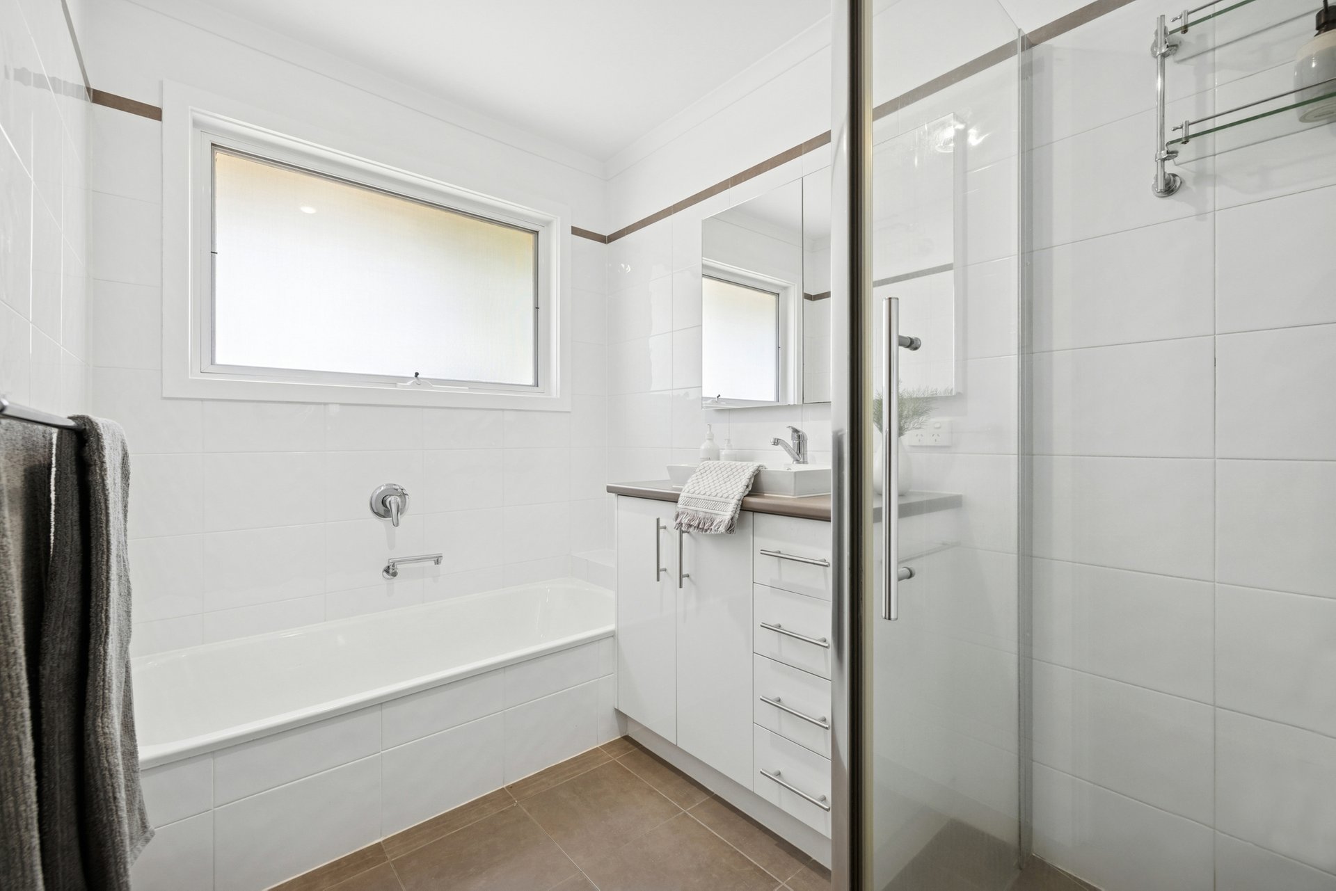 Upstairs, three further bedrooms, all with built-in robes and one with an integrated desk, are complemented by a second bathroom and extensive additional storage. A double garage with direct backyard access, solar power and solar hot water reinforce the long-term appeal.