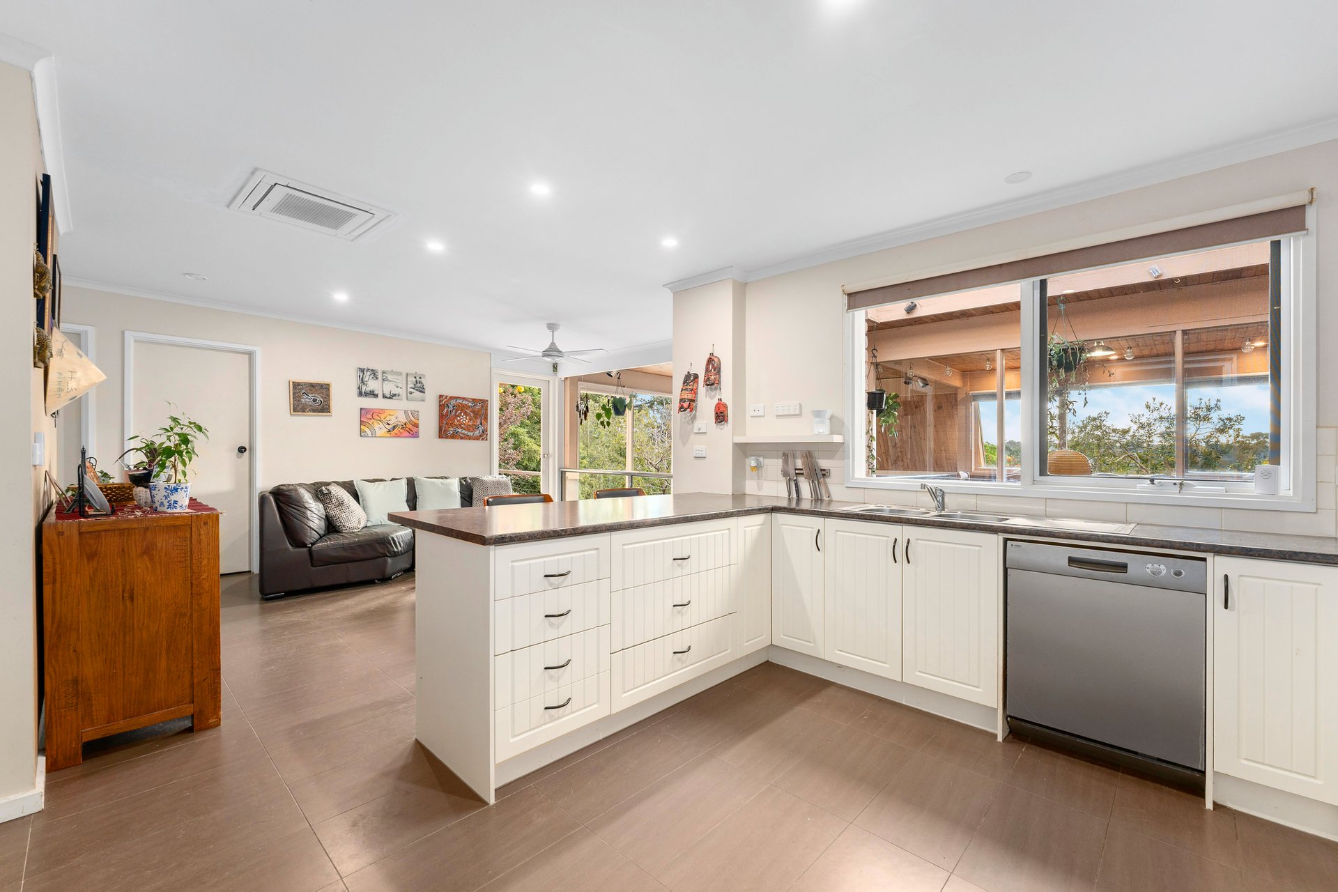 Bathed in natural light, the home features expansive windows throughout, complementing three generous bedrooms, a dedicated study, and a versatile studio space. The master suite is privately zoned, complete with a spacious ensuite, and a