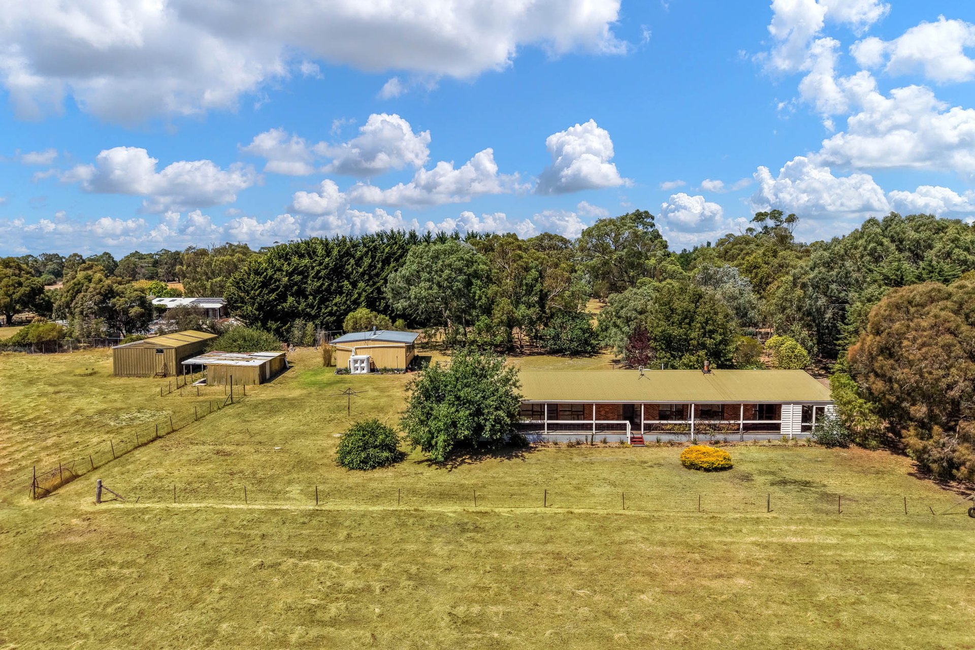 Infrastructure is outstanding. Five paddocks, a high-capacity dam, and versatile shedding include one structure with a high-clearance sliding door and another with a roofed area plus open shelters.