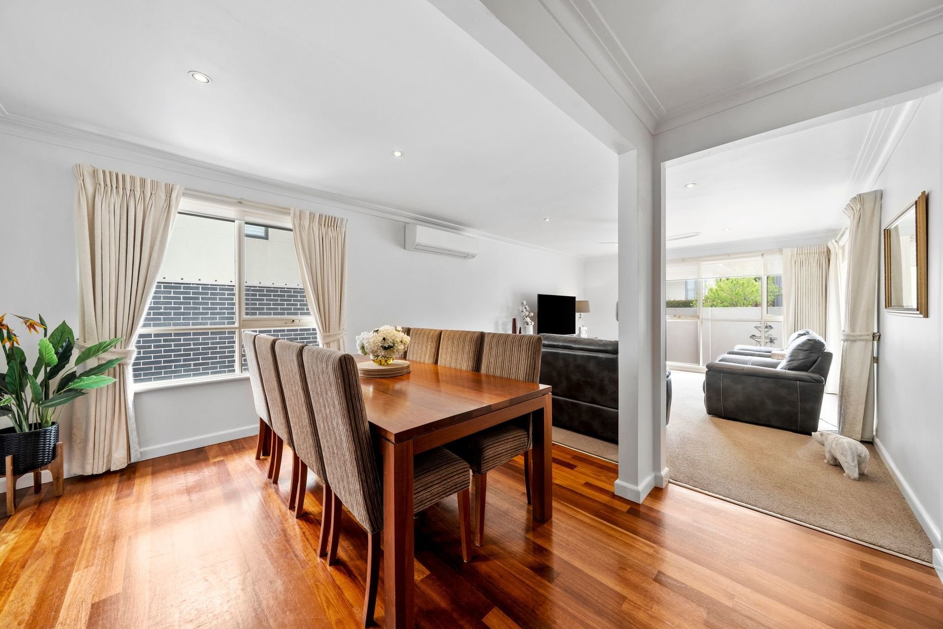 A warm welcome awaits with polished timber floors and a front lounge enhanced by a large split-system air conditioner, new overhead fan, and an automated striped sunblind. The adjoining dining room and modern kitchen impress with a 5-burner gas stove, Electrolux oven, Bosch dishwasher, and under-sink water purifier. To the rear, a spacious family room flows effortlessly to a covered alfresco deck complete with roll-up sun blinds and garden sprinklers, creating an entertainer's haven.