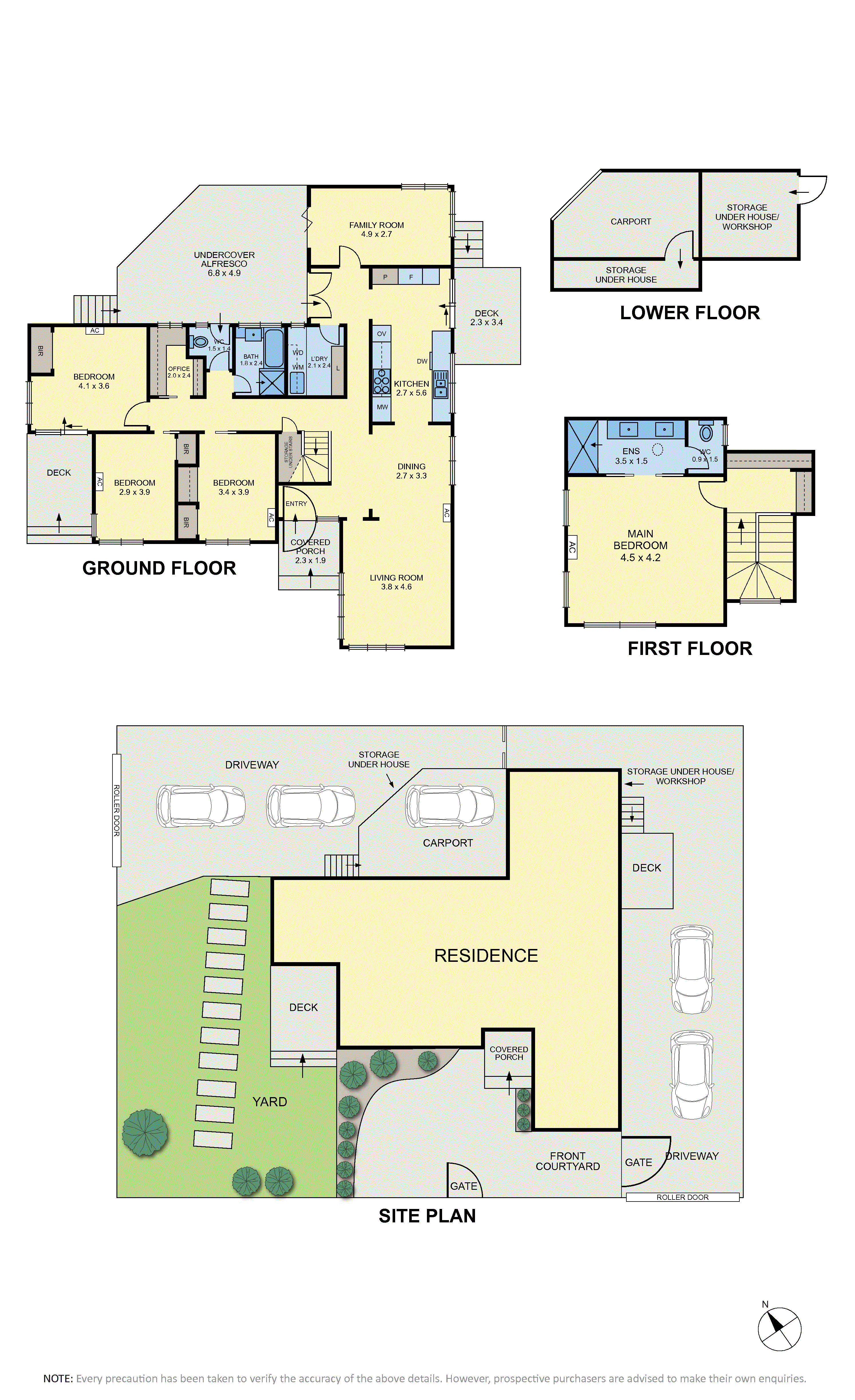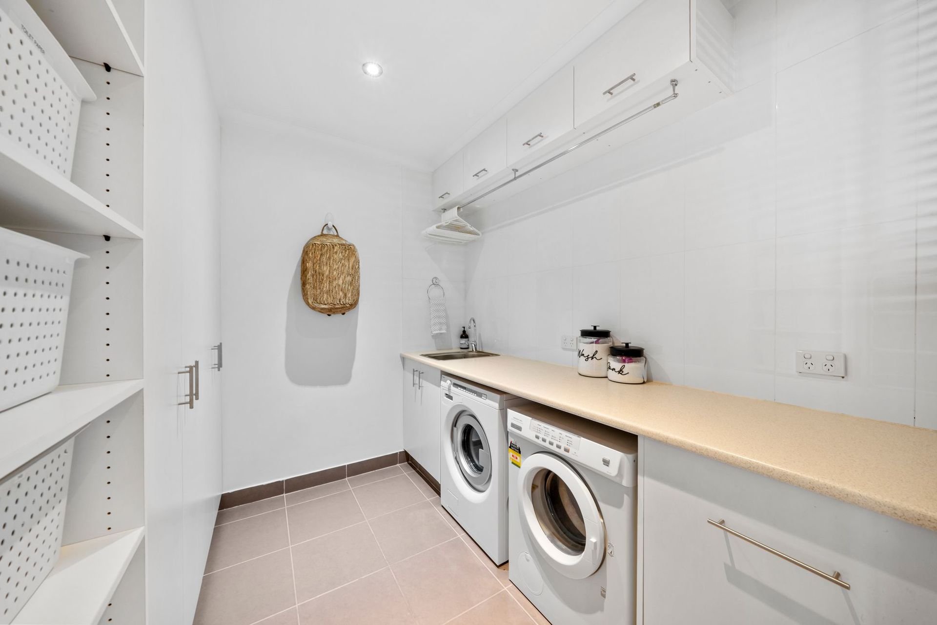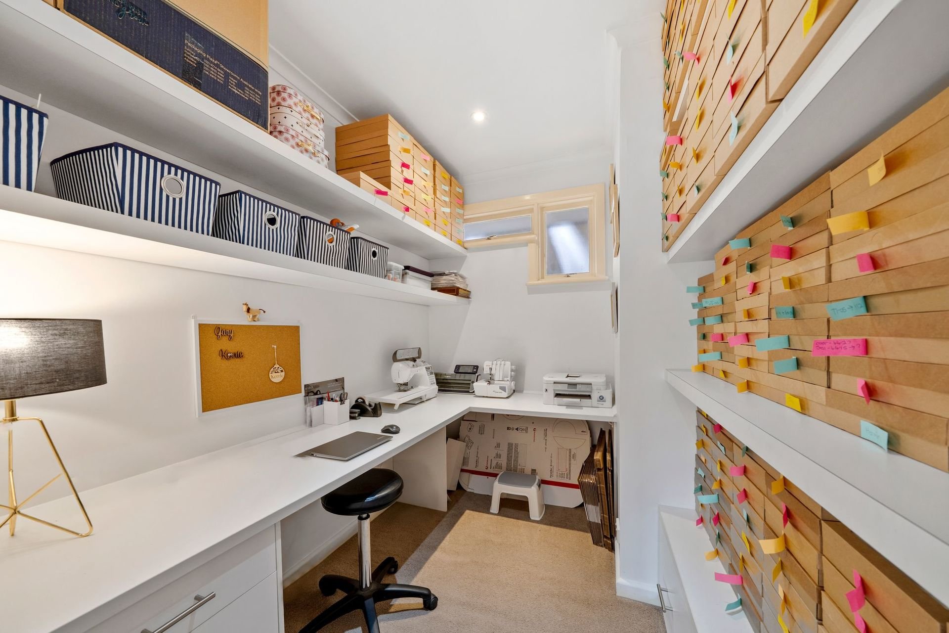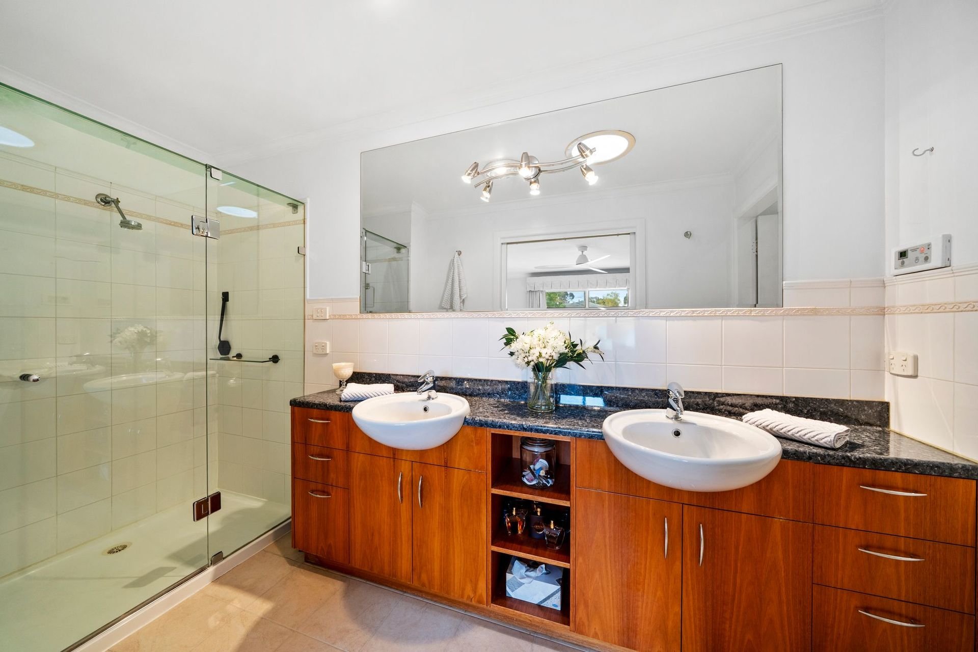 Under the home, a cellar with wine racks is complemented by workshop and storage space, together with dual driveways accommodating up to five vehicles. Added features include ducted vacuum, three-phase electricity, polished floorboards, instantaneous hot water with temperature controllers, and automated striped sunblinds front and rear.