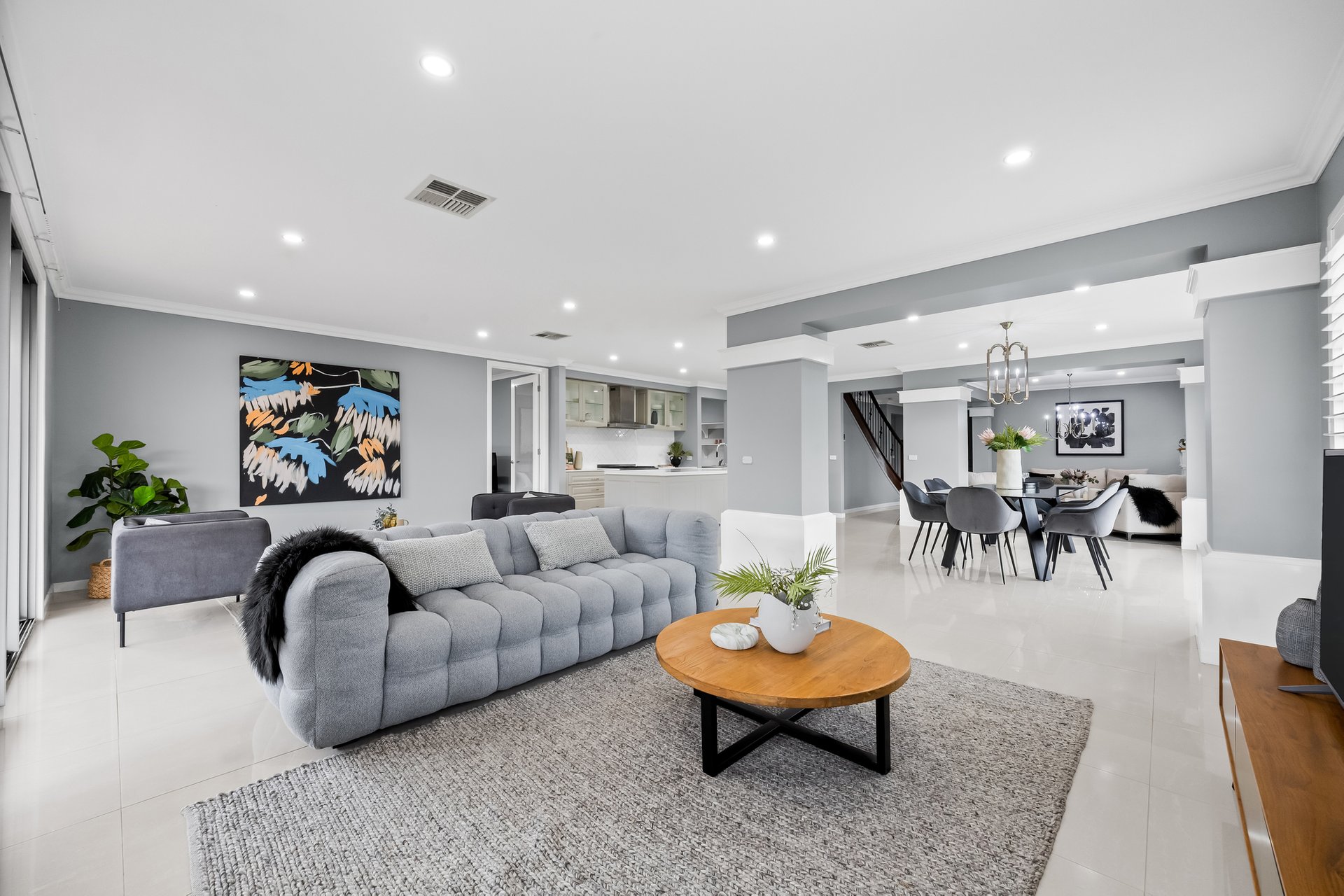 This stunning two-level modern home offers exceptional space and luxury, designed with the growing family in mind. Located in the heart of Truganina, this five-bedroom, four-bathroom residence is perfect for those who value comfort, privacy, and versatility. Upon entry, you're greeted by a grand entrance with a timber staircase, leading into spacious, open-plan living areas with tiled flooring throughout. The formal lounge area, complete with a fireplace, sets a welcoming tone, while the formal dining area offers direct access to the kitchen, making it ideal for family gatherings.