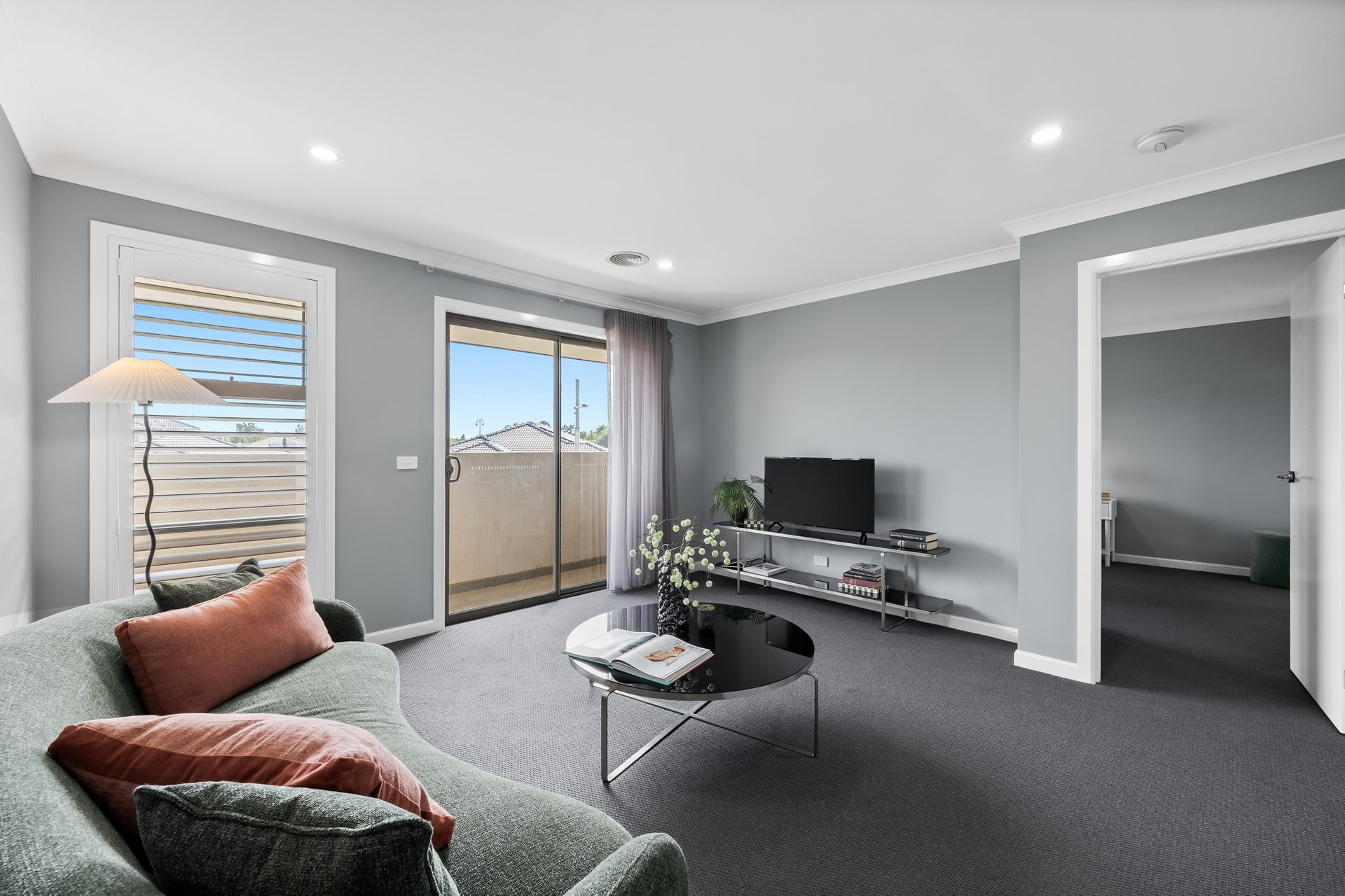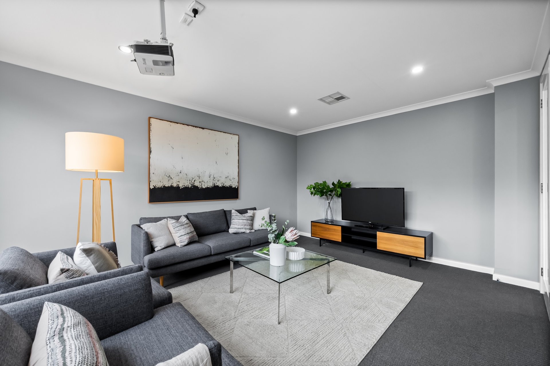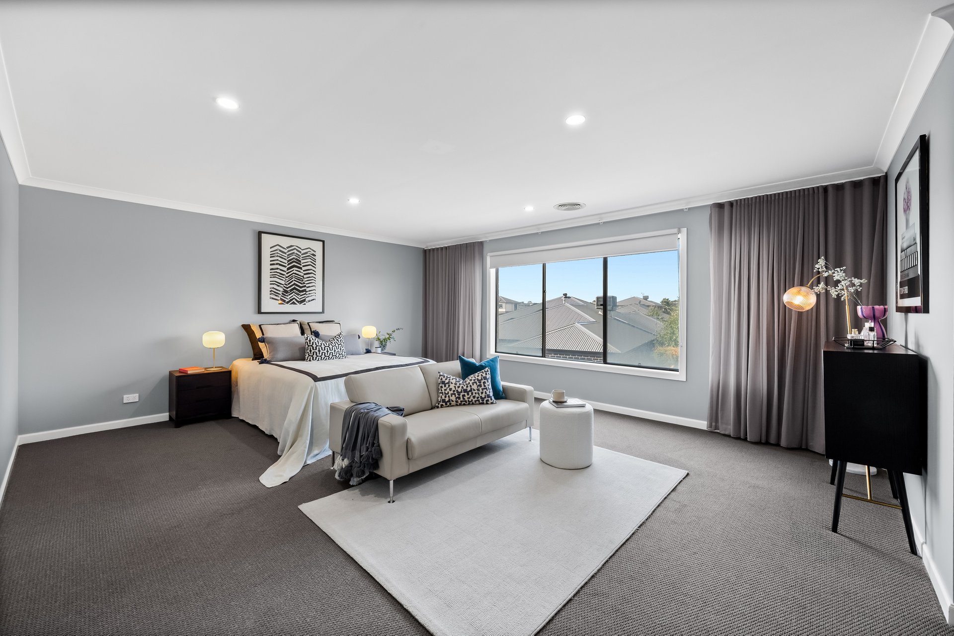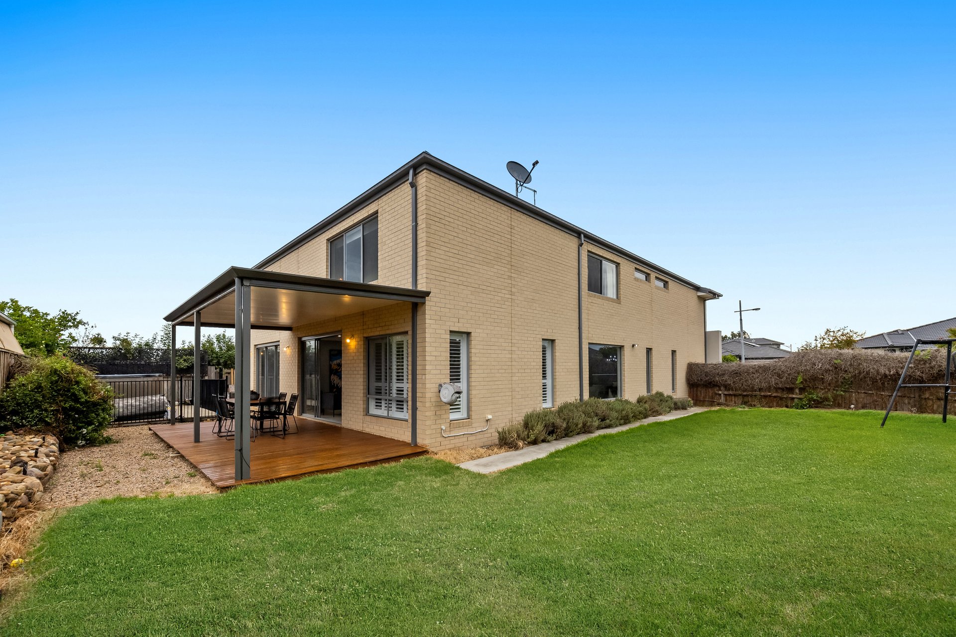 The ground floor includes a versatile study that can be used as a fifth bedroom, a large laundry with a storage room, and a powder room for added convenience. The home also features a double-car garage with internal access, a walk-in linen cupboard, and multiple living zones for maximum flexibility.