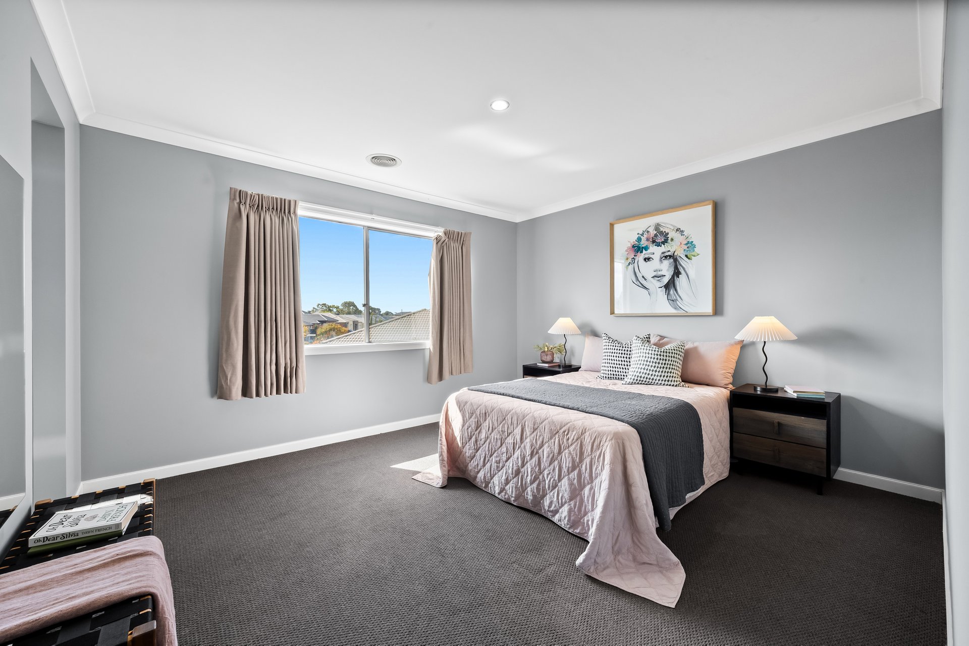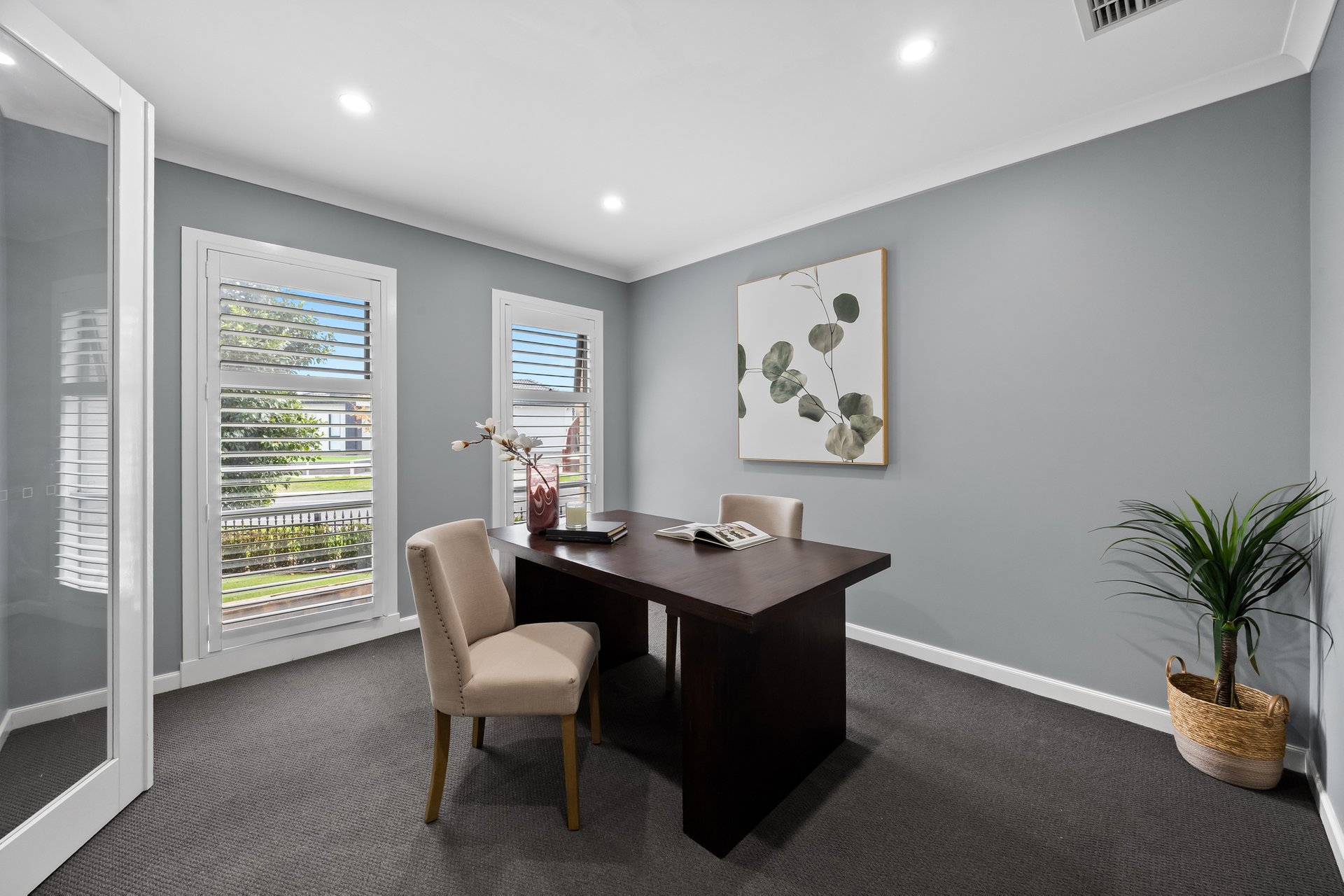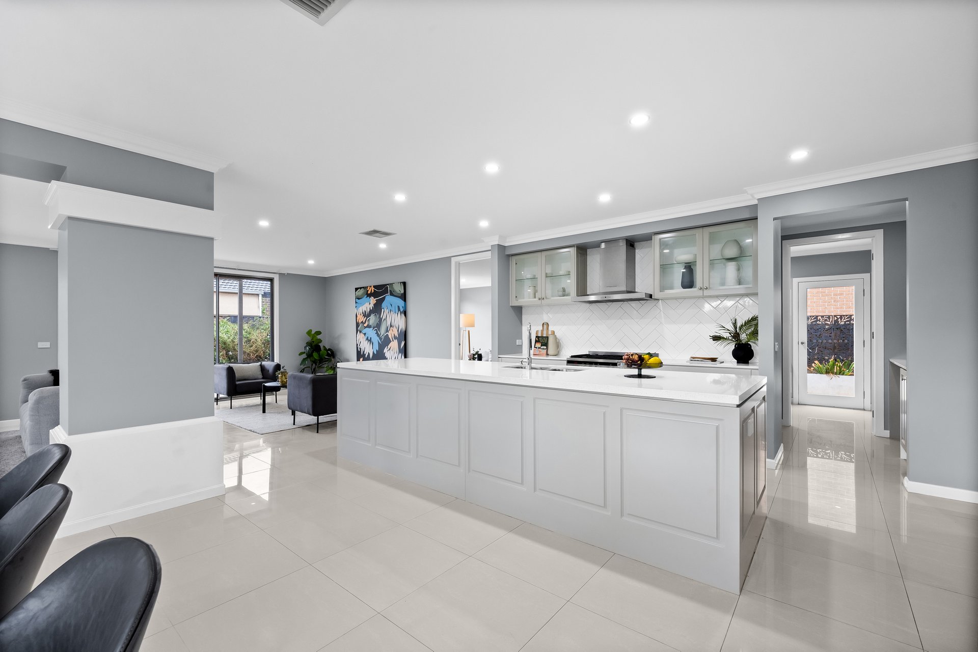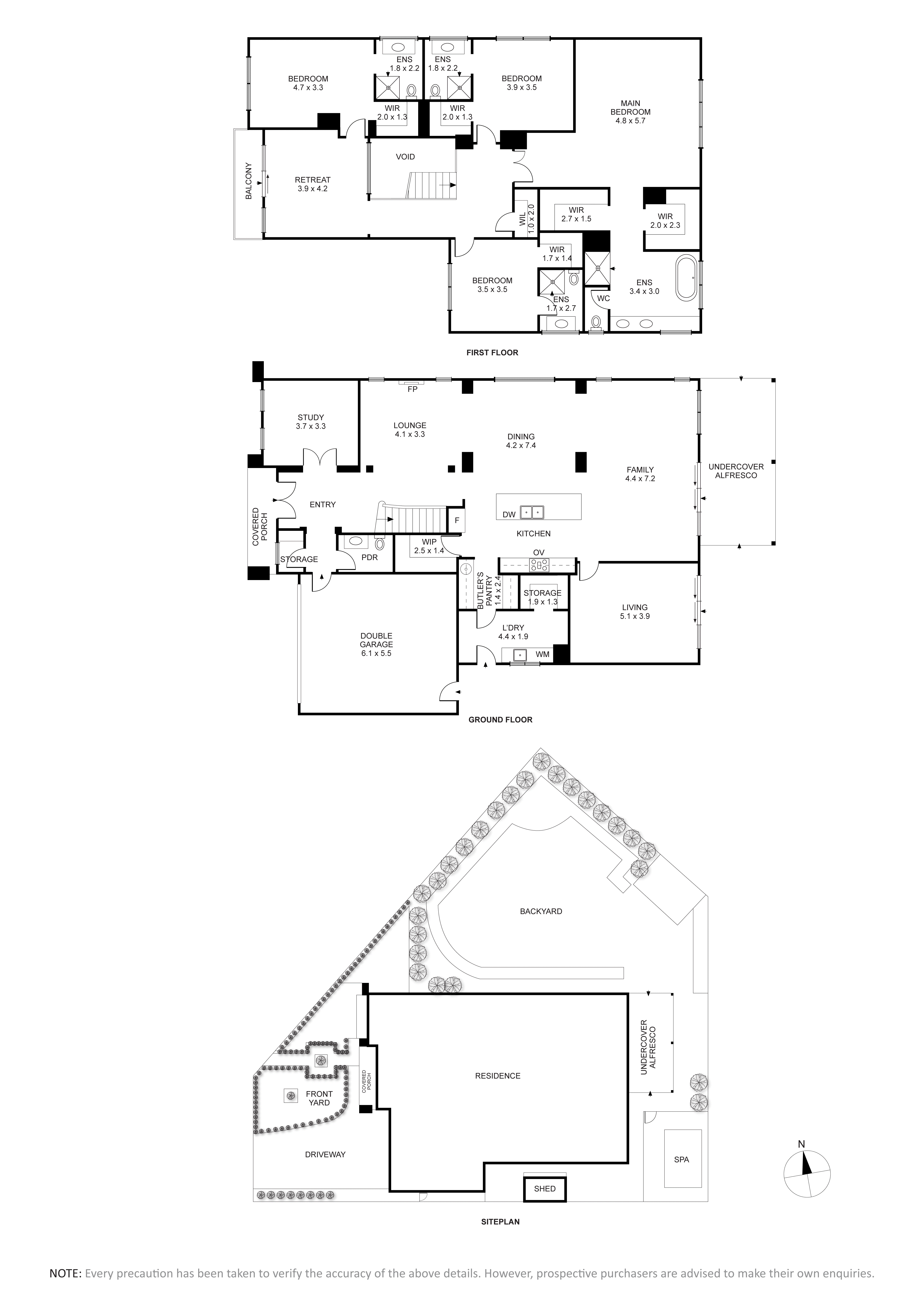 The ground floor includes a versatile study that can be used as a fifth bedroom, a large laundry with a storage room, and a powder room for added convenience. The home also features a double-car garage with internal access, a walk-in linen cupboard, and multiple living zones for maximum flexibility.