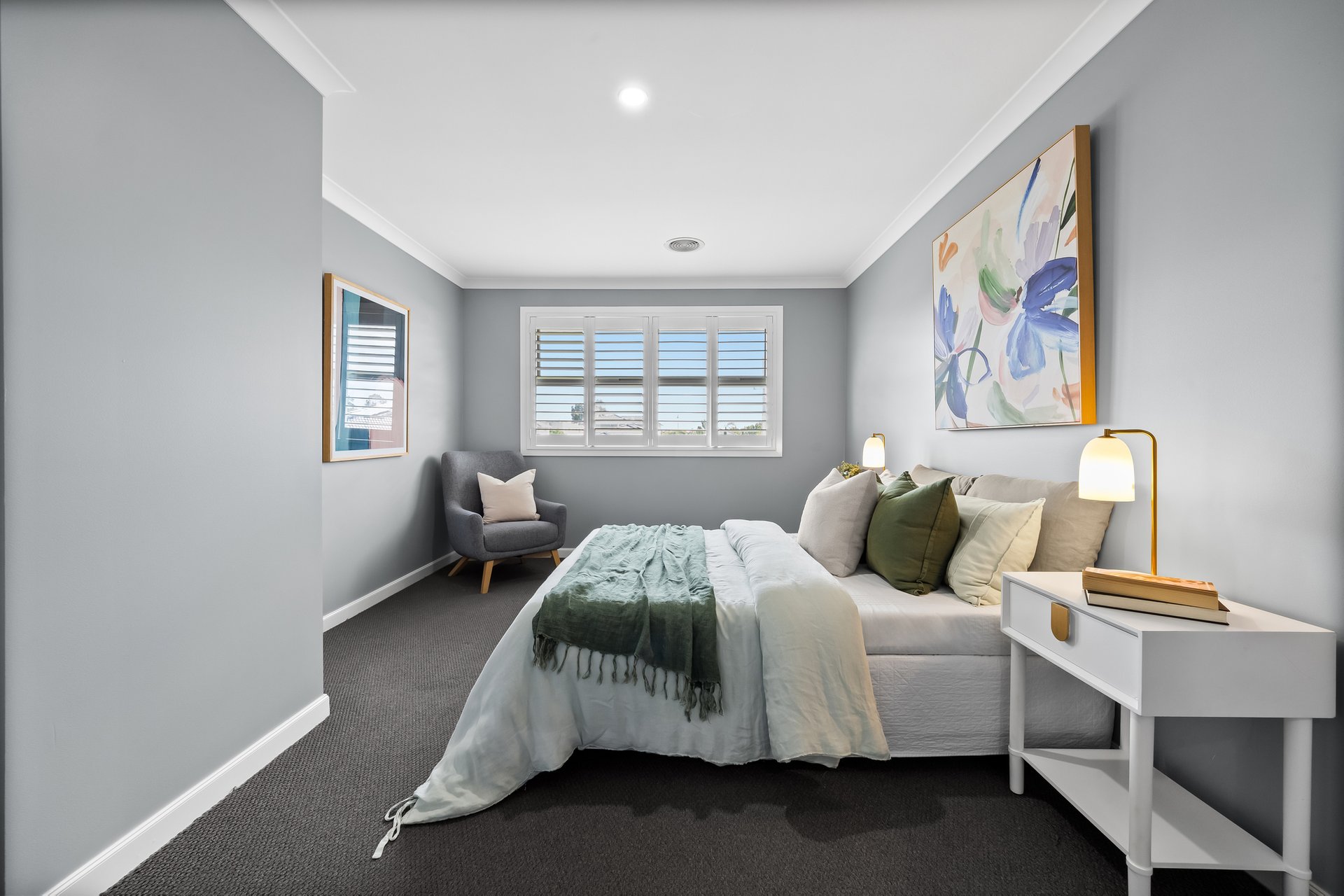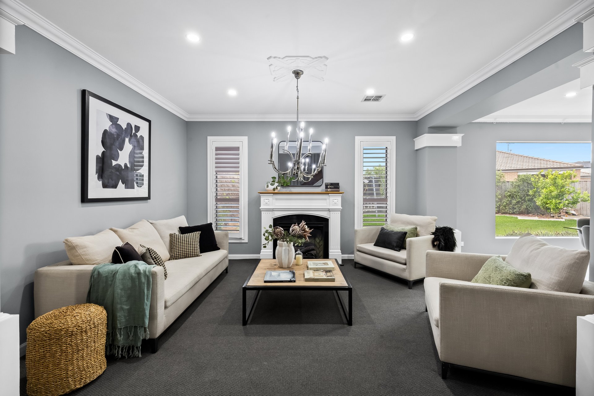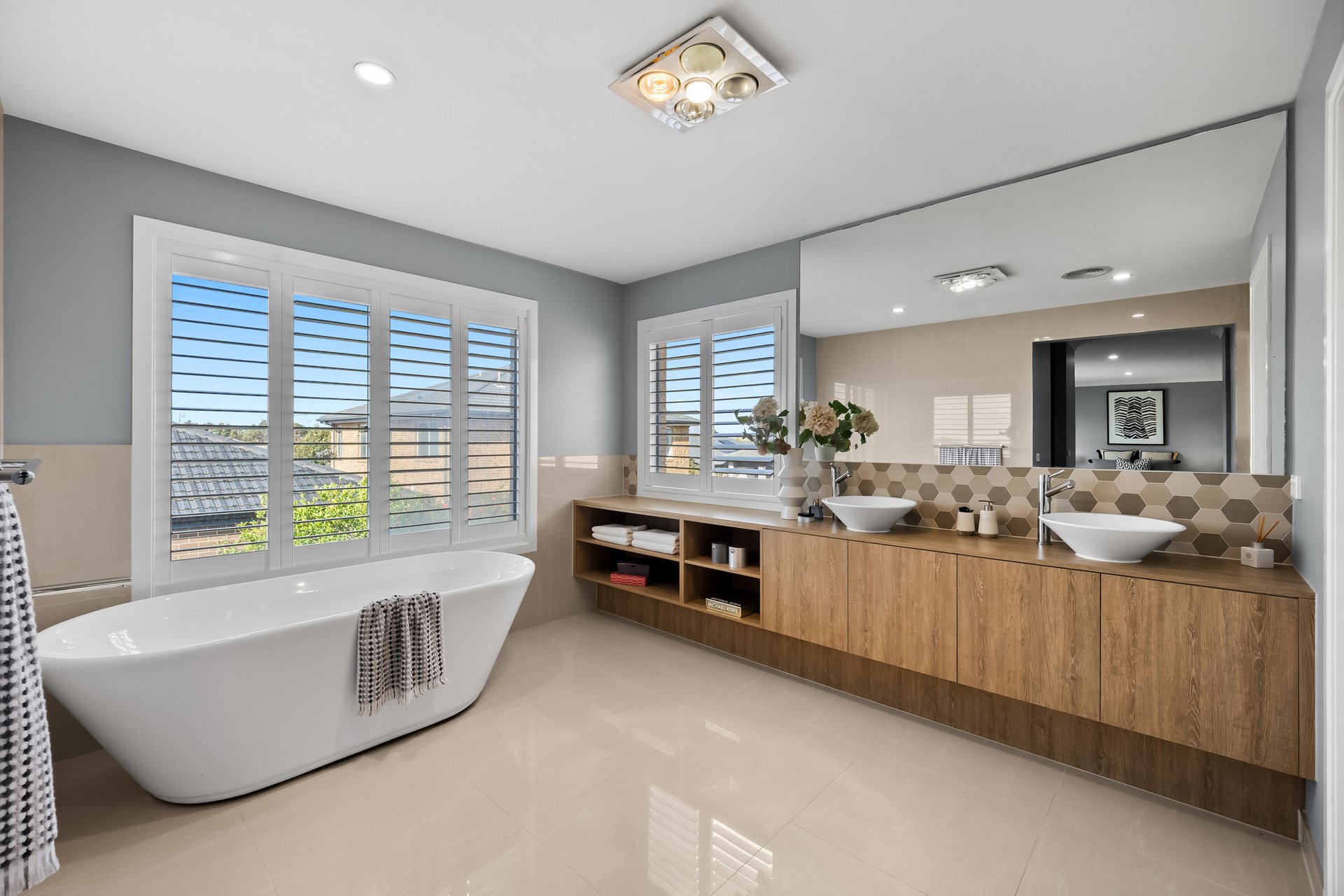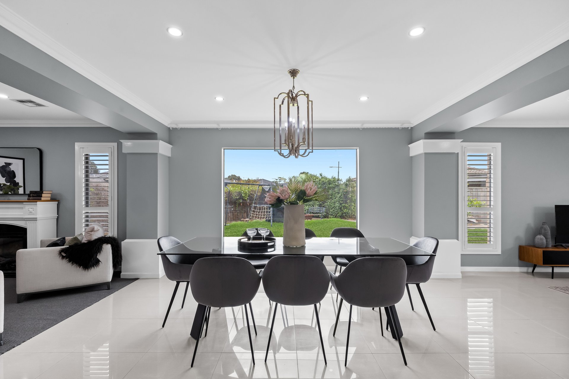 The ground floor includes a versatile study that can be used as a fifth bedroom, a large laundry with a storage room, and a powder room for added convenience. The home also features a double-car garage with internal access, a walk-in linen cupboard, and multiple living zones for maximum flexibility.