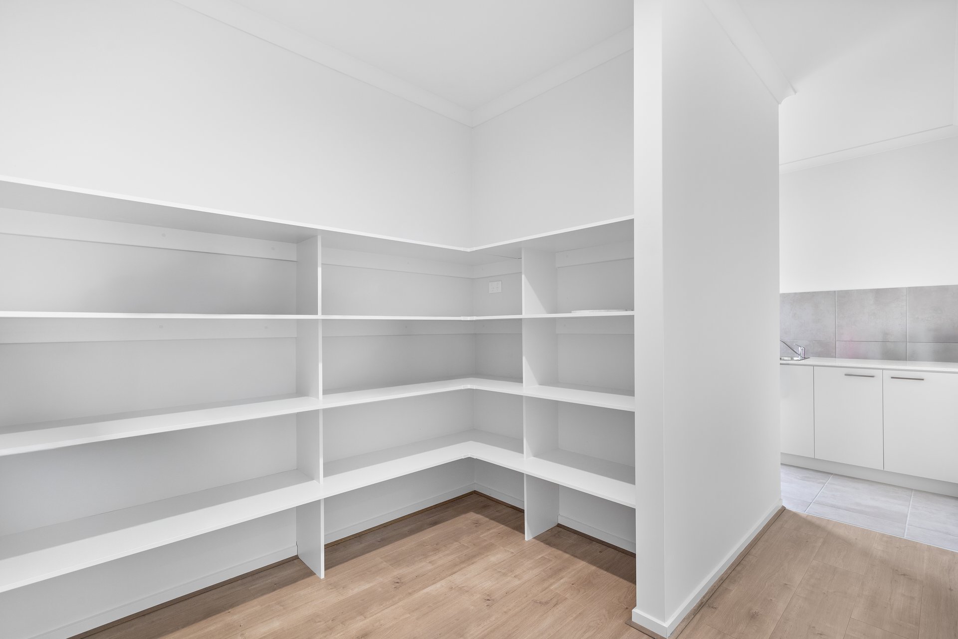 Chef’s Kitchen: Open-plan design with ample bench space, a large walk-in pantry, quality Westinghouse stainless steel appliances, built-in microwave, and a 6-burner gas cooktop with oven.
