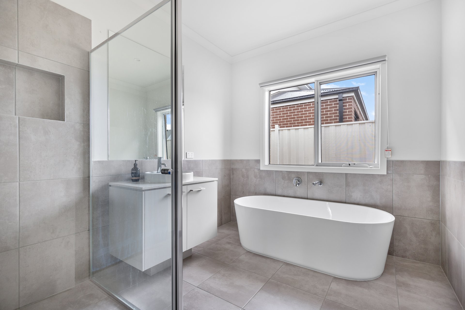 Additional Bedrooms: Three well-proportioned bedrooms with built-in robes, serviced by a modern central bathroom with floor-to-ceiling tiles, bathtub, and separate toilet.