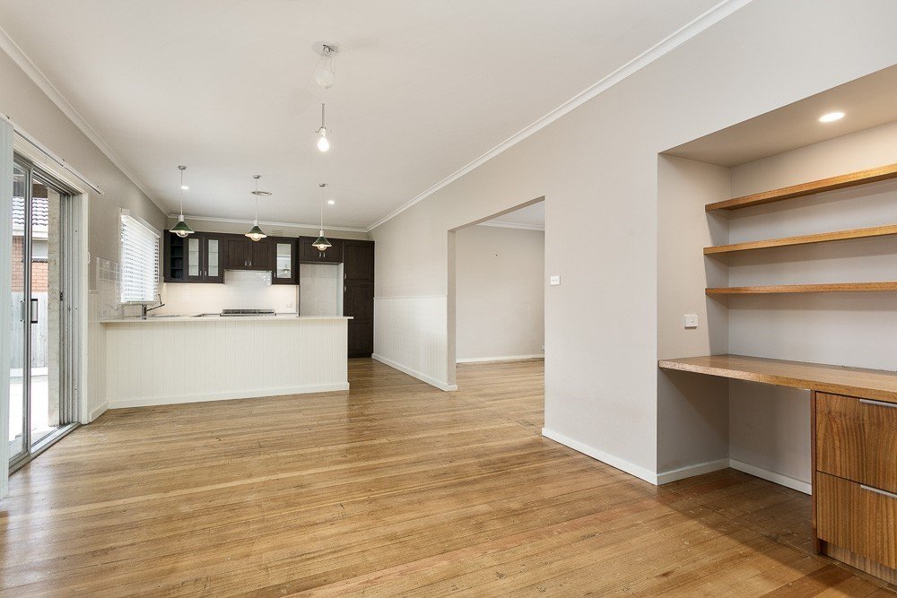 A wide entrance hall leads you through the property, where you’ll find three generous bedrooms and a central bathroom featuring a free-standing bath, double vanity and shower, along with a convenient second toilet and separate laundry. The large kitchen is equipped with stone benches and a dishwasher and flows into a dedicated dining area, while a built-in desk provides a practical space for working from home.