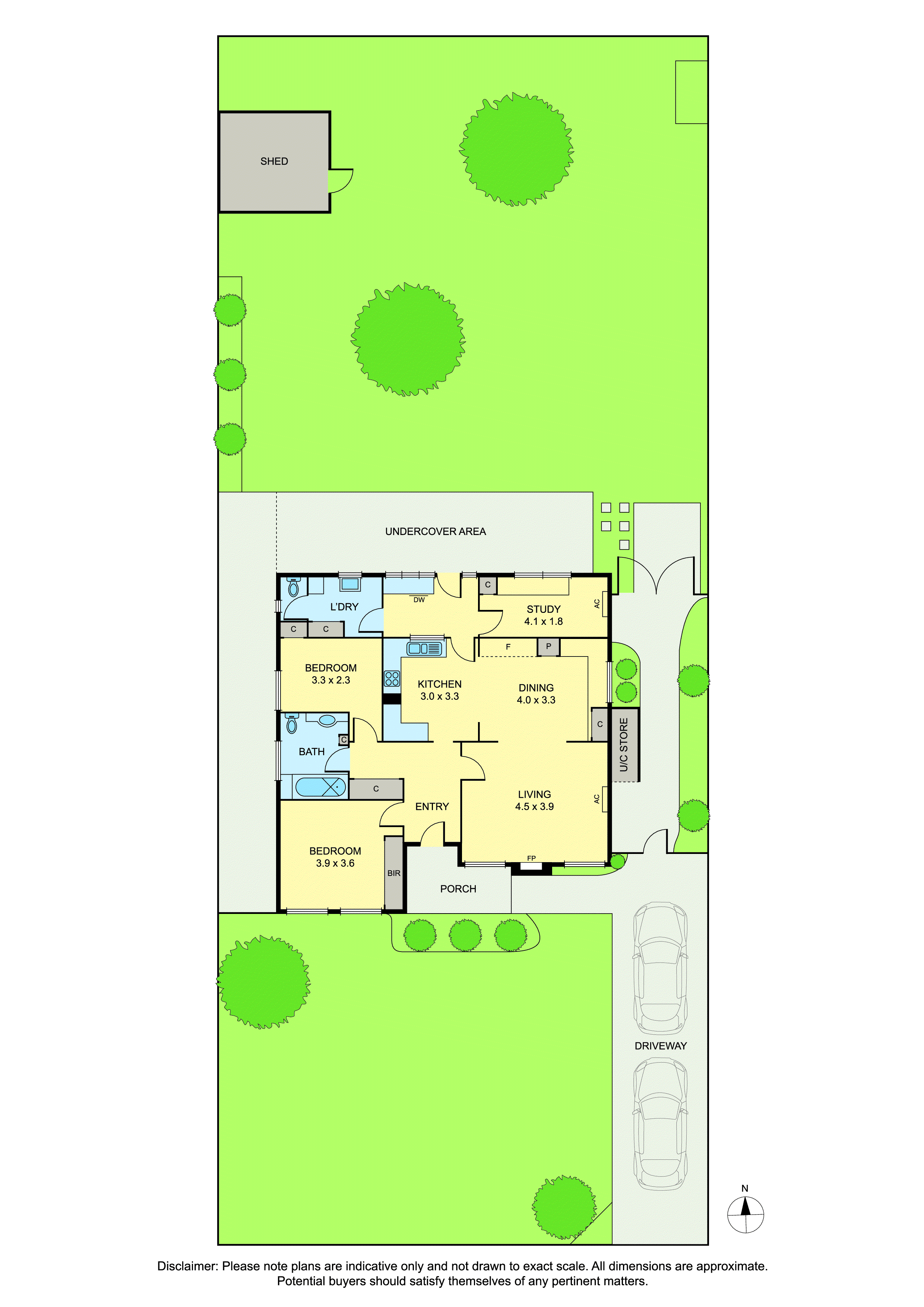 The kitchen includes with quality appliances, as well as an extended light-filled northern space at the rear which features dual dishdrawers. This back area is also home to a versatile 3rd bedroom/study space. The main bedrooms deliver built-in robes and both sit not far from the modern bathroom, while there is an additional toilet off the laundry. The huge northerly garden is fully fenced making it ideal for families and pets. The property features a sizeable undercover terrace with strip heating and café blinds, reverse cycle heating/cooling, evaporative cooling, large shed, and off-street parking options.