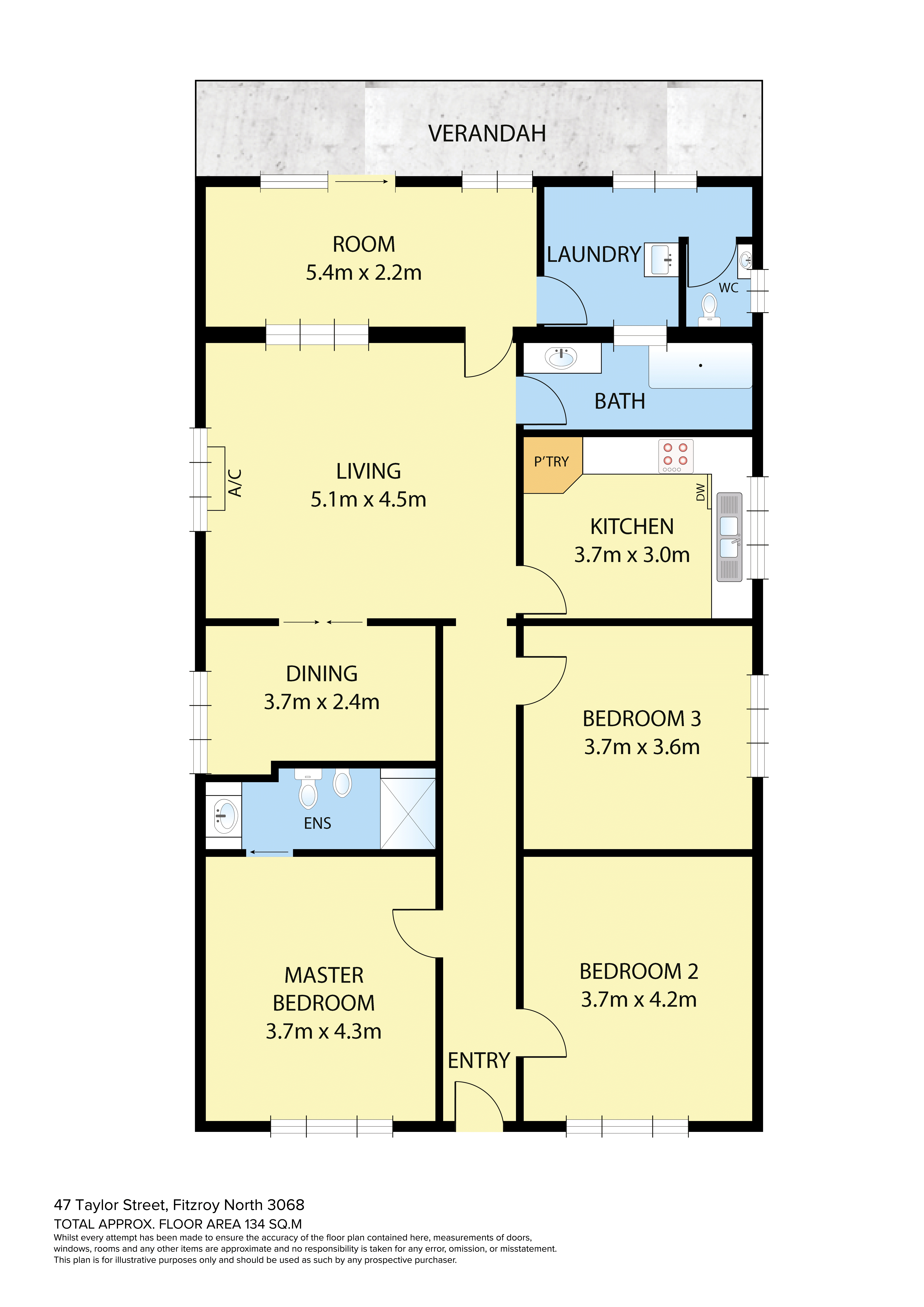 Superbly located this property is only minutes away from everything you could need! Well-presented comprising of three spacious bedrooms, master with ensuite, central lounge room with split system, main bathroom with shower over bath, additional powder room, separate laundry, kitchen with gas stove top, dishwasher, ample storage and bench space, light filled open plan living room, all complimented by a stunning sun room with glass sliding door which opens up to a small private courtyard. Parking is along Taylor Street which is not has no permit retrictions.