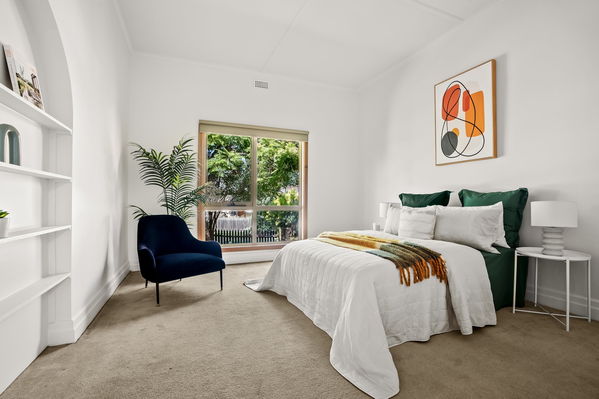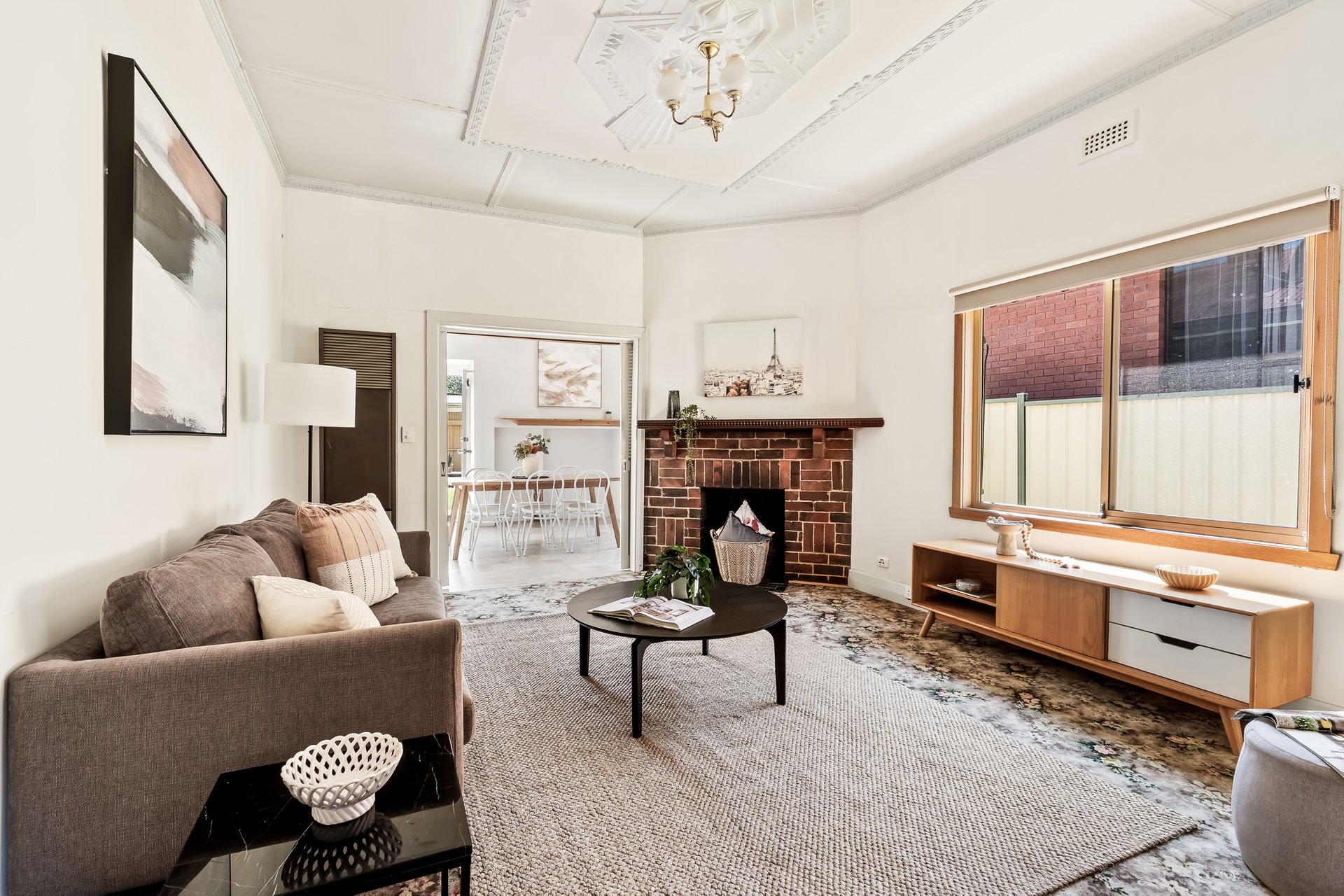 Steeped in history, this wonderful semi-detached home will be admired for its generosity of space, versatile floor plan and unrivalled convenience to lifestyle amenities. A grand old dame in a peaceful neighbourhood that offers plenty of space for the growing family along with the opportunity to modernise and enhance to its former glory or even extend or subdivide from a rear lane, the possibilities here are endless (STCA). The interior boasts a welcoming entrance that flows past three generous sized bedrooms and immaculate family bathroom before stepping into a grand living room alongside an open plan kitchen and dining area that connect to a generous rear yard. The neat kitchen showcases functional appliances including dishwasher along with an abundance of storage. Added features also include split system heating and cooling, polished hardwood timber floors, decorative ceilings, original brick fireplaces, a full sized laundry with separate WC, single garage with side drive access. In a coveted neighbourhood nearby to local schools, cafes, parklands, High Street shops/dining plus numerous amenities.