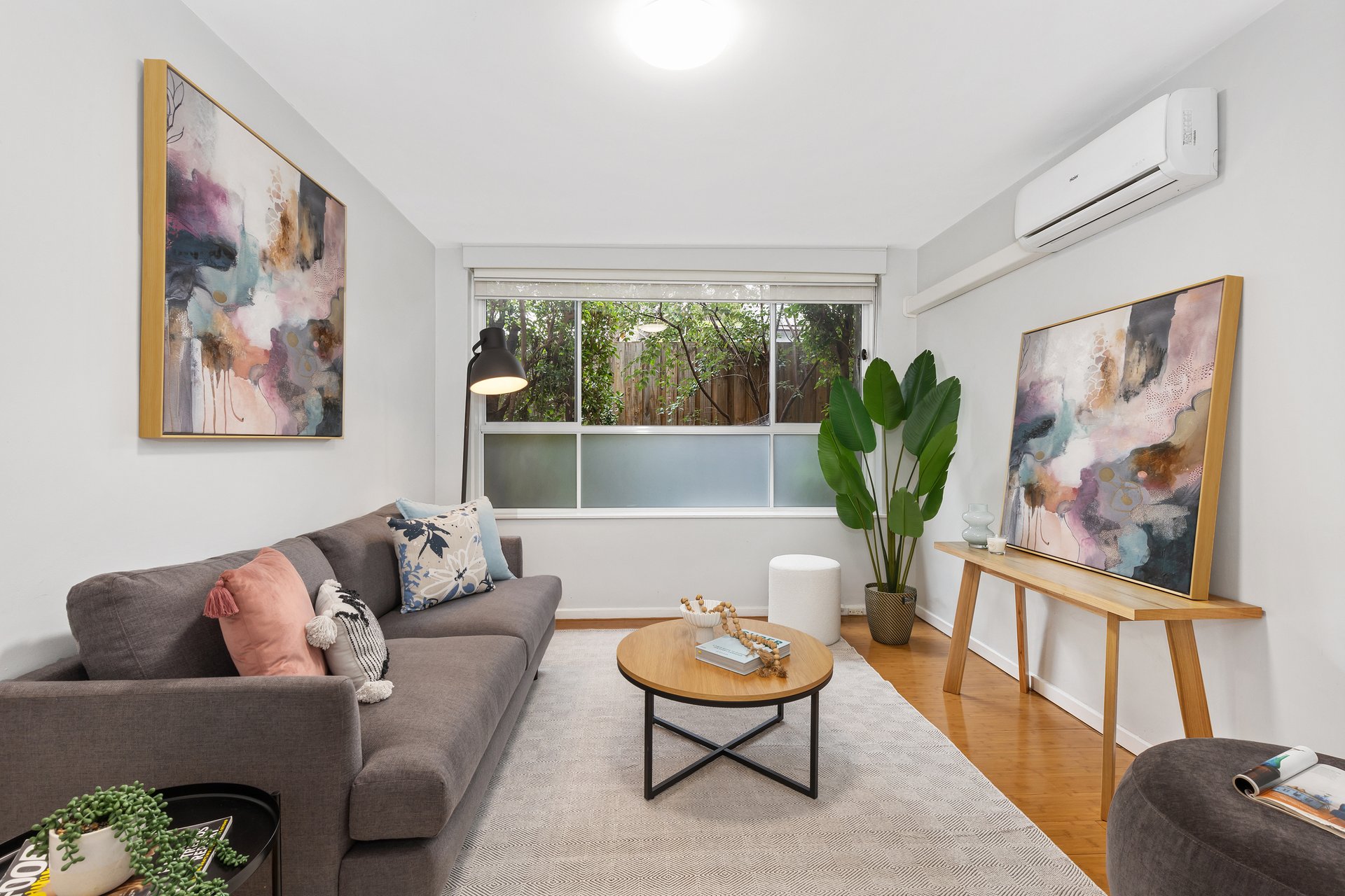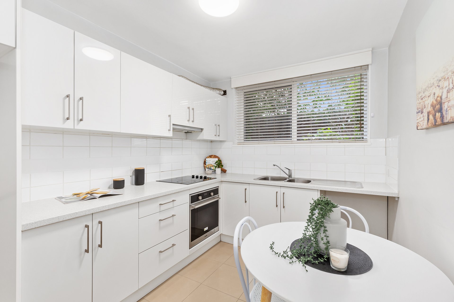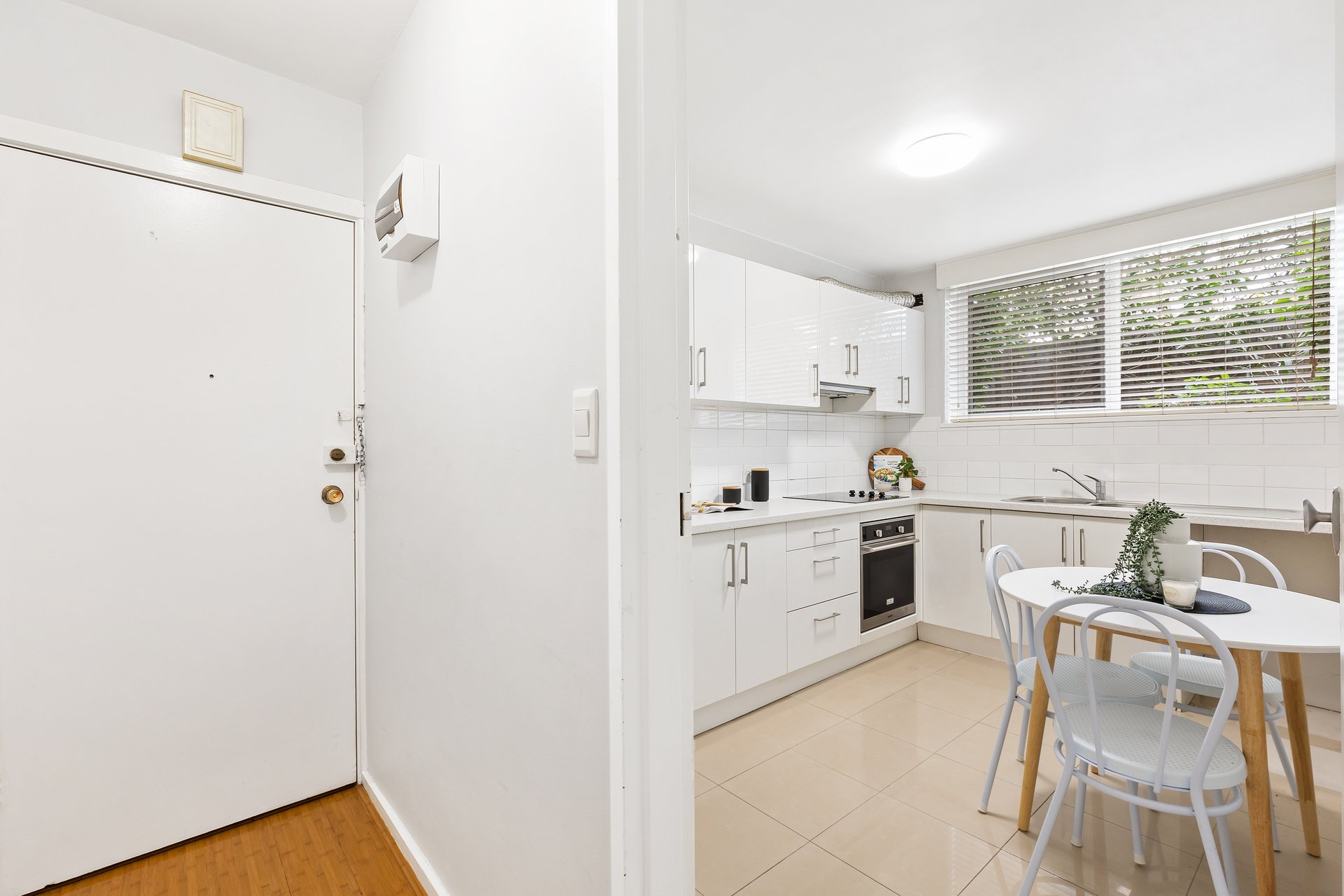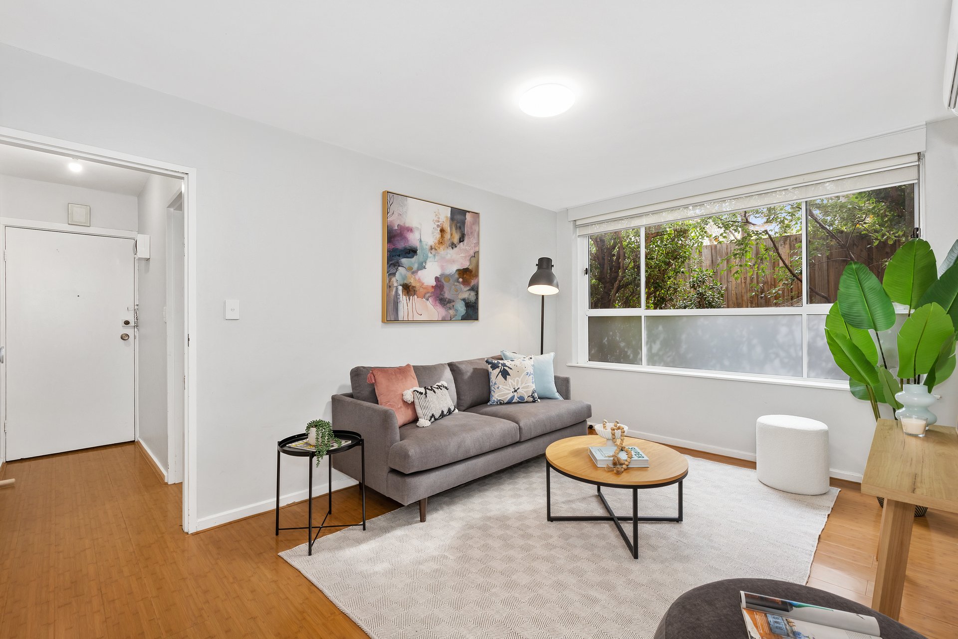The well-designed floorplan features a generously sized bedroom with built-in robe, complemented by a beautifully renovated ensuite and separate powder room for added practicality. A spacious kitchen appointed with quality Blanco appliances, abundant storage, and provisions for a front-loading washer flows seamlessly into the sunlit living area, where a wide garden-facing window enhances the sense of light and space. Year-round comfort is assured with split-system heating and cooling, while a covered car space adds further appeal.