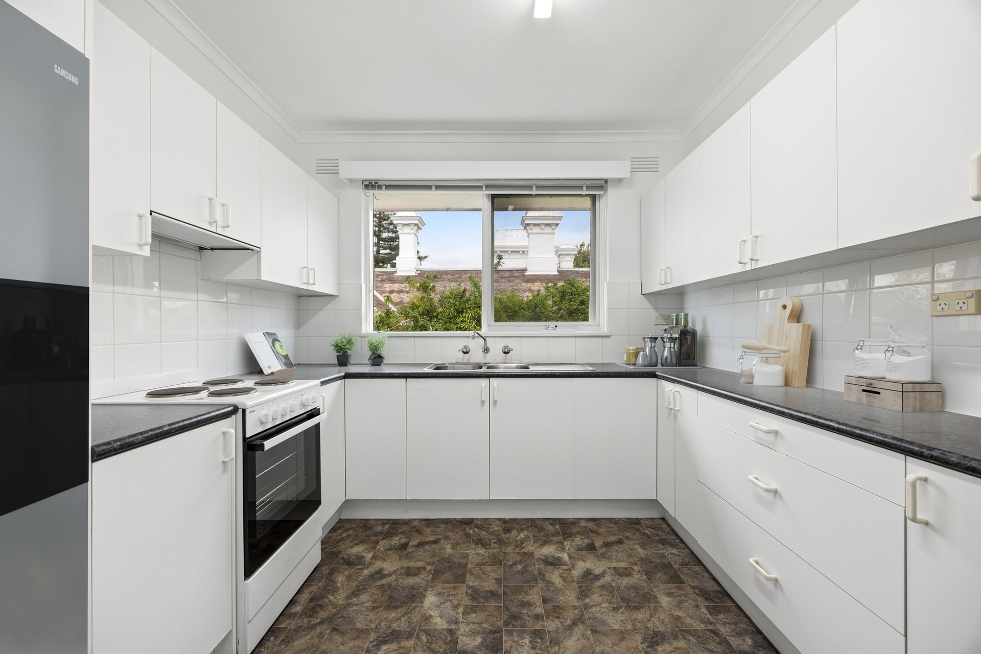 In a tree-lined street surrounded by established homes, this solid sixties apartment in a boutique block of just eight immediately stands apart for its scale. The proportions are generous in the way only this era delivers, with a layout that is easy to live in. The inclusion of a lock-up garage is a rare advantage, adding both security and long-term value, while communal gardens give the building a quiet residential character.