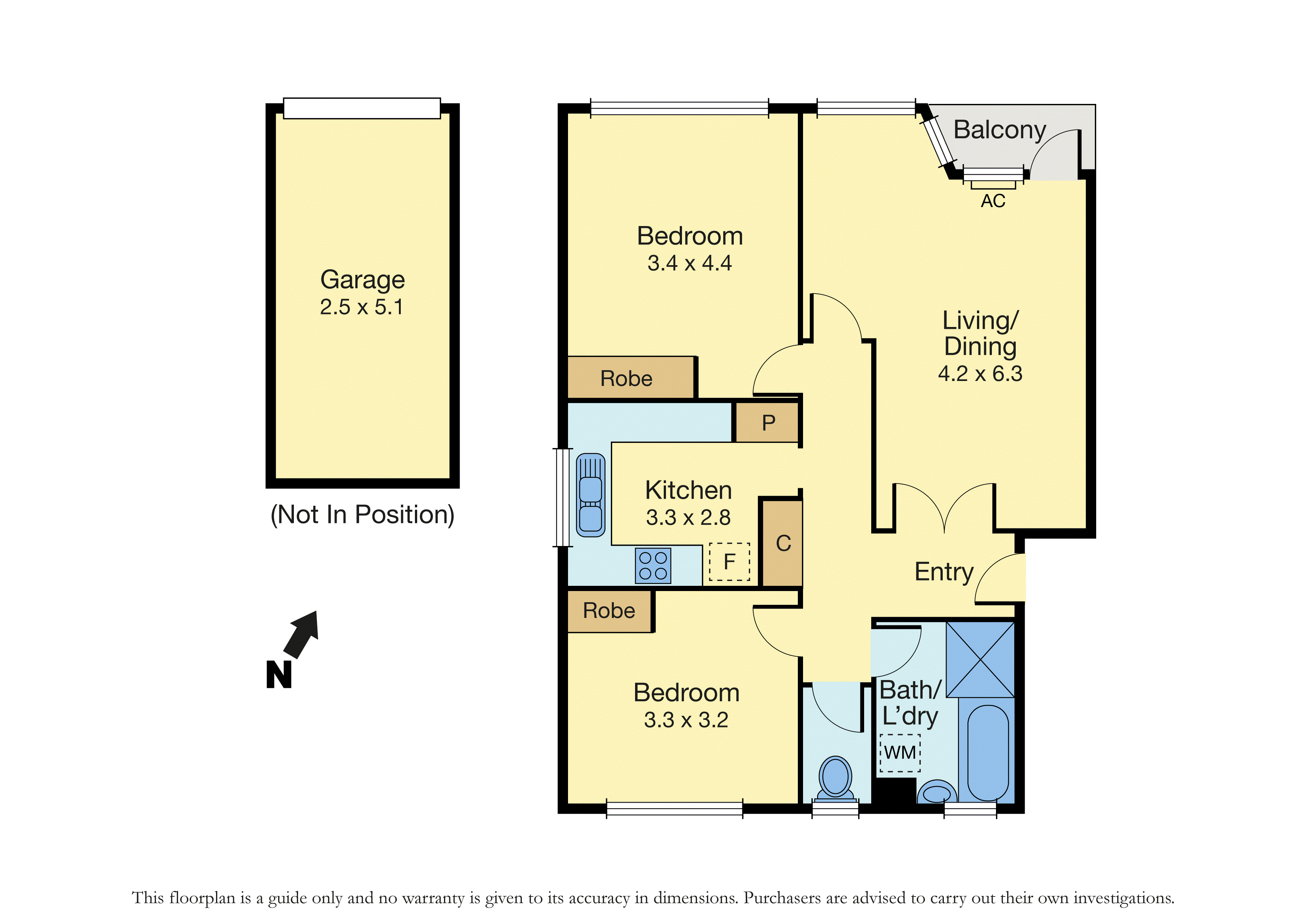 Both bedrooms are comfortably sized, each with built-in robes and their own leafy views. The bathroom is complete with a bath, separate shower, laundry taps and a separate toilet.