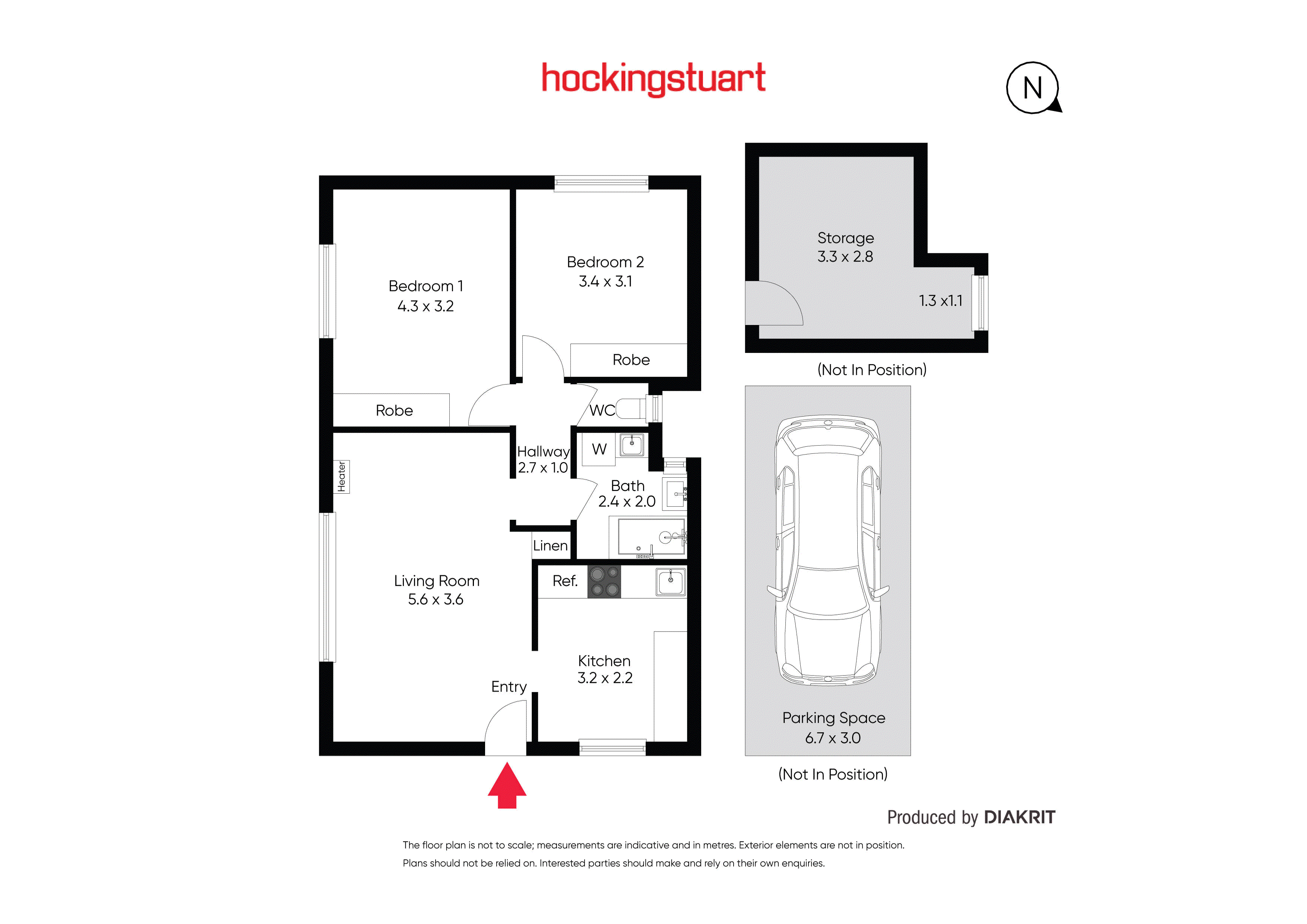 Internals of generous proportions including large living, 2 double bedrooms both with built in robes, neat and tidy bathroom with laundry facilities, and well-appointed kitchen. Undercover car space and large secure lock up storage room both on title, allowing further options with the potential for a study area, studio or just somewhere to put your excess belongings.