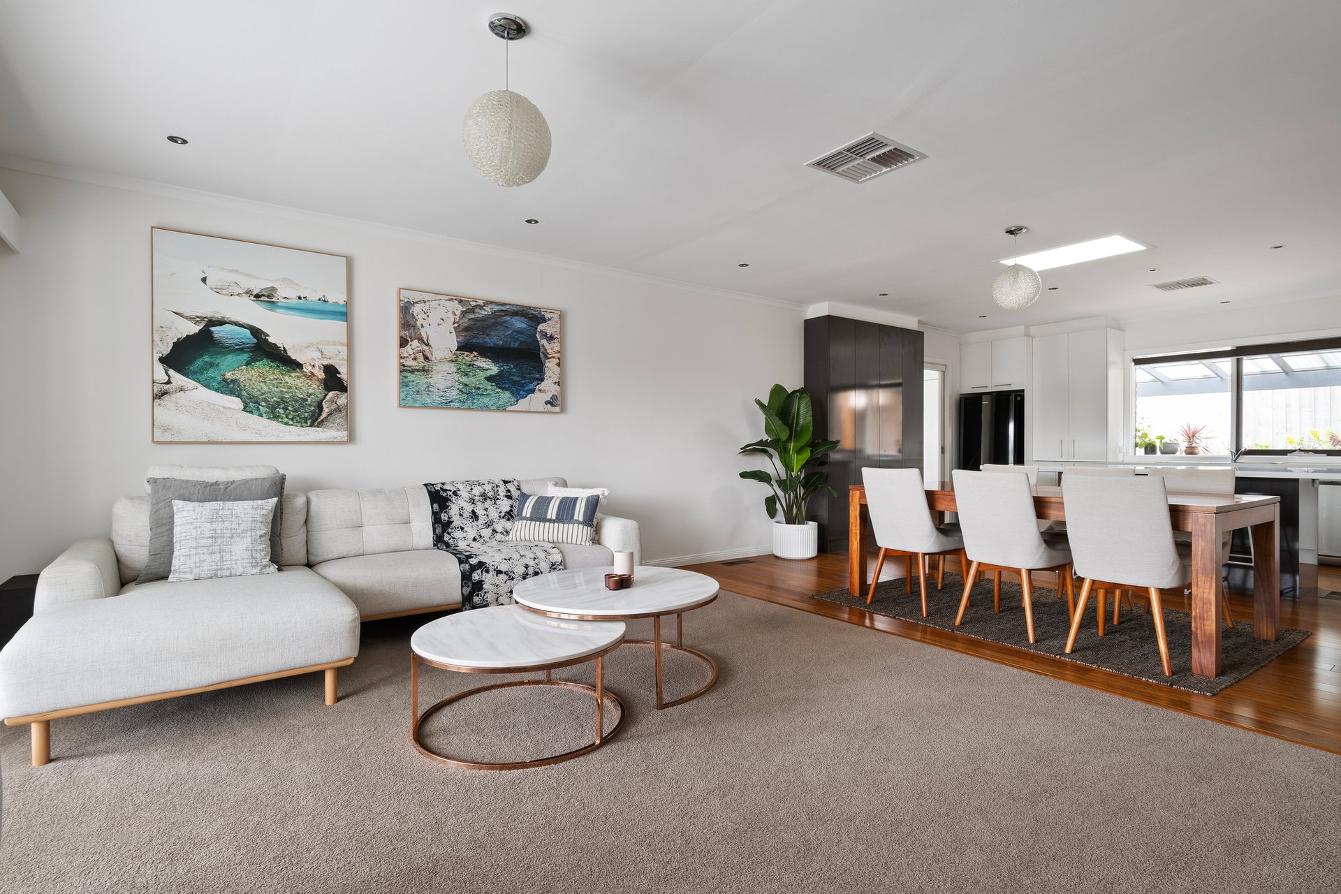 - Sprawling open plan living and dining room