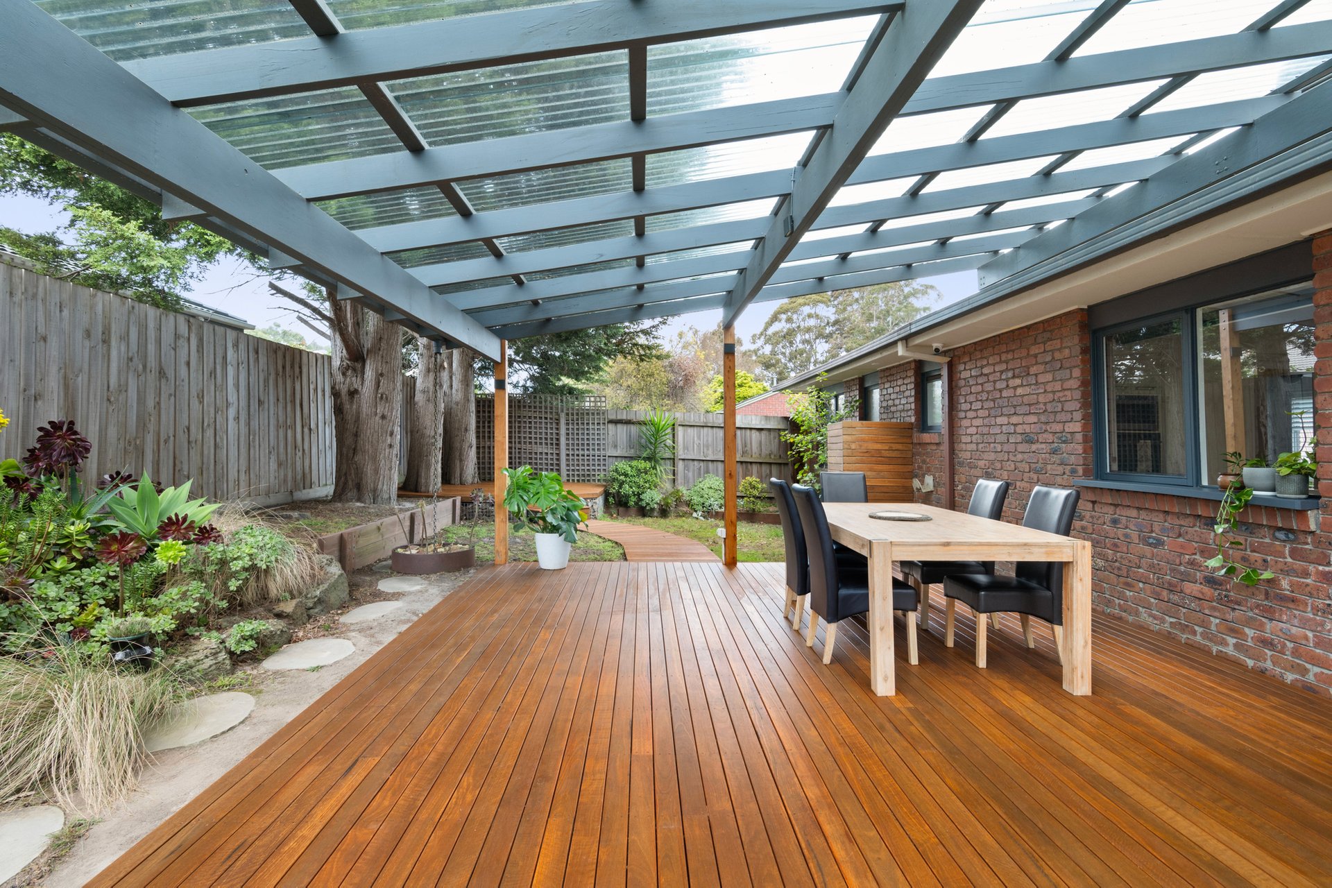 - Generous backyard with covered and open alfresco decks