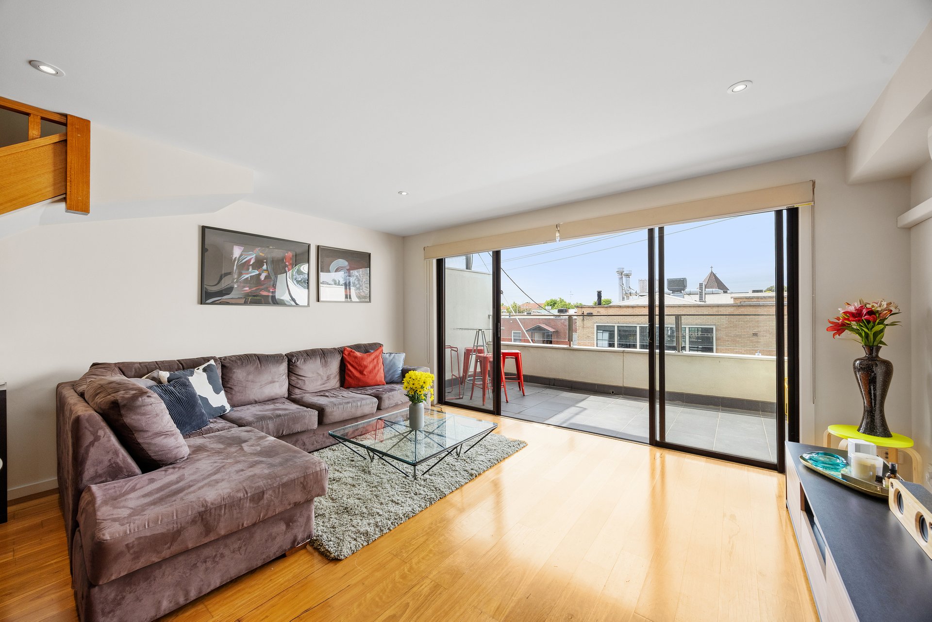 Unit 5/69 Melville Road, Brunswick West, presents a spacious and light-filled two-level apartment designed for modern living.