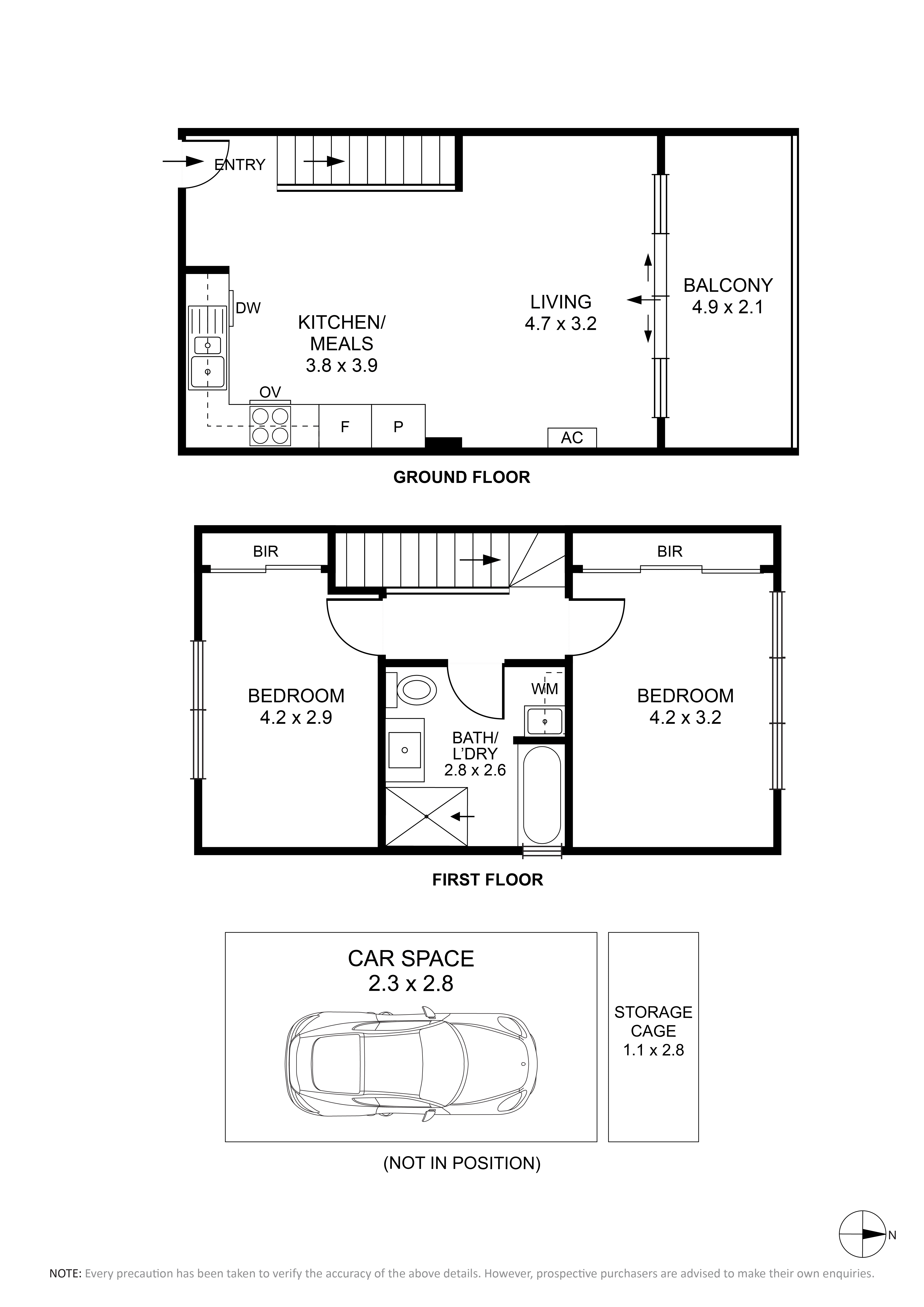 Upstairs, both bedrooms feature plush carpet, built-in robes, and abundant natural light. The central bathroom includes a bathtub, single vanity with Caesarstone benchtop, chrome finishes, and floor-to-ceiling tiles, while the adjoining European laundry provides an additional sink for convenience. Additional features include NBN connectivity, a storage cage, and a secure single car space. The low-maintenance design and sunny balcony add ease to everyday living.