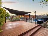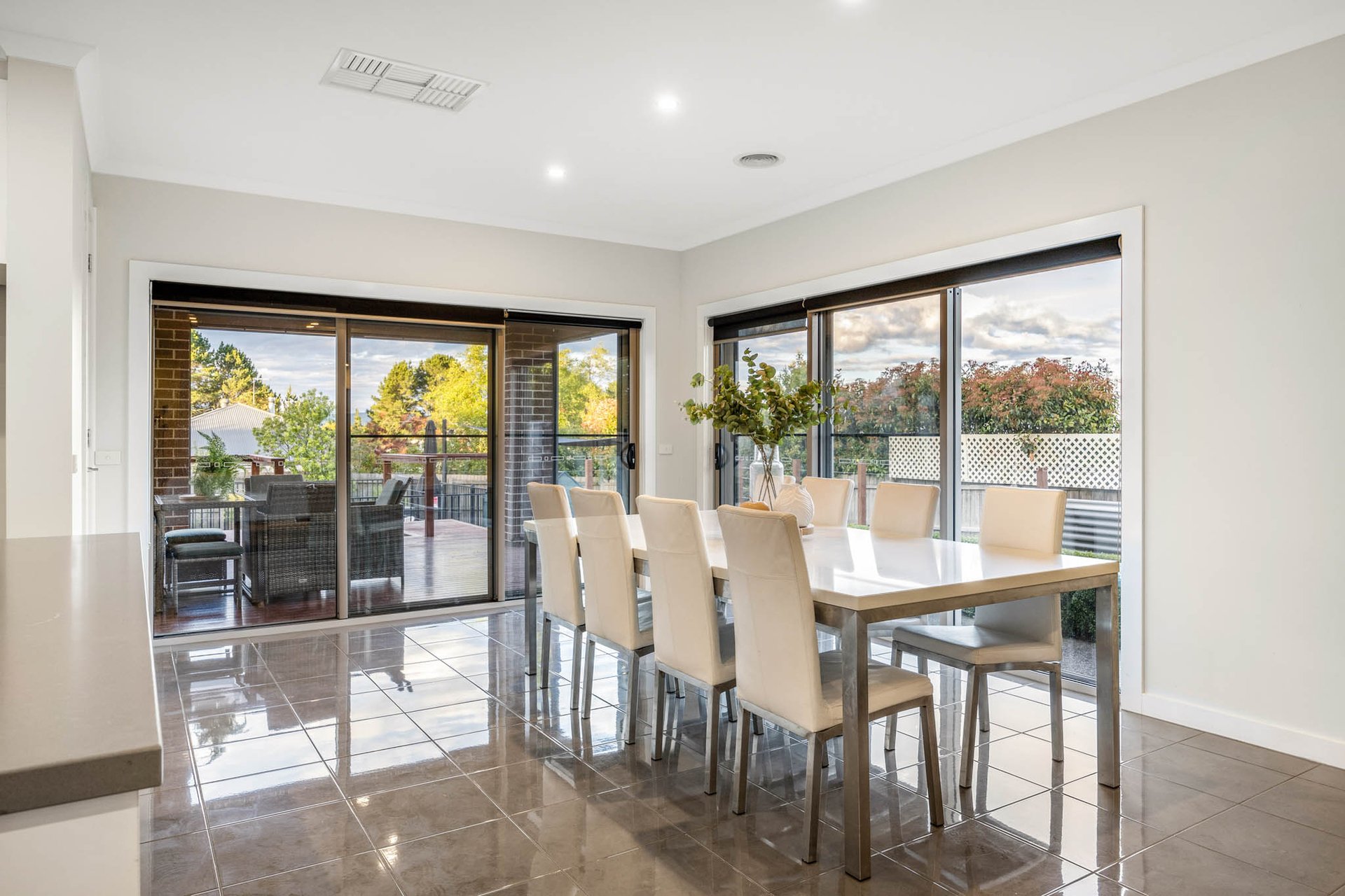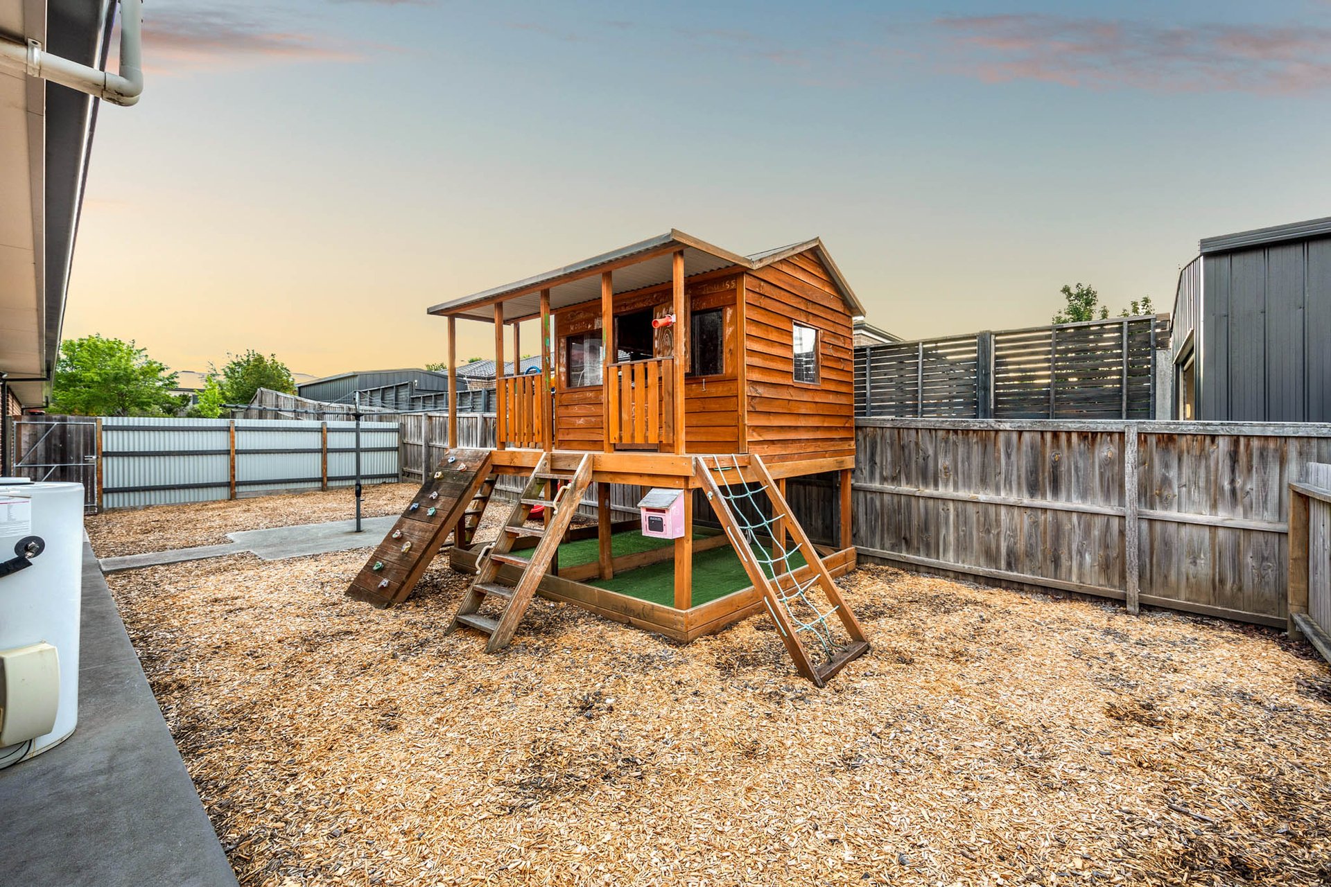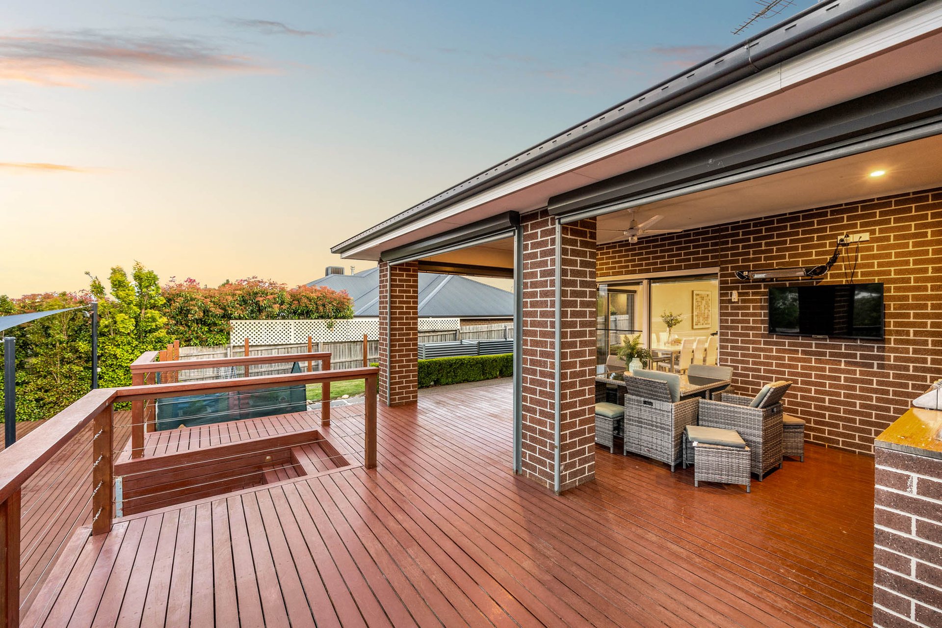 Double-glazed sliders open seamlessly to the alfresco entertaining area, sunlit from the north and appointed with a full barbecue kitchen and bistro blinds, where long views reach to Mount Macedon, setting the scene for unforgettable gatherings. A solar-heated swimming pool and poolside entertaining deck with a shade-sail complete the resort-style ambience, while meticulous, low-maintenance landscaping includes an adventure cubby house for younger imaginations.