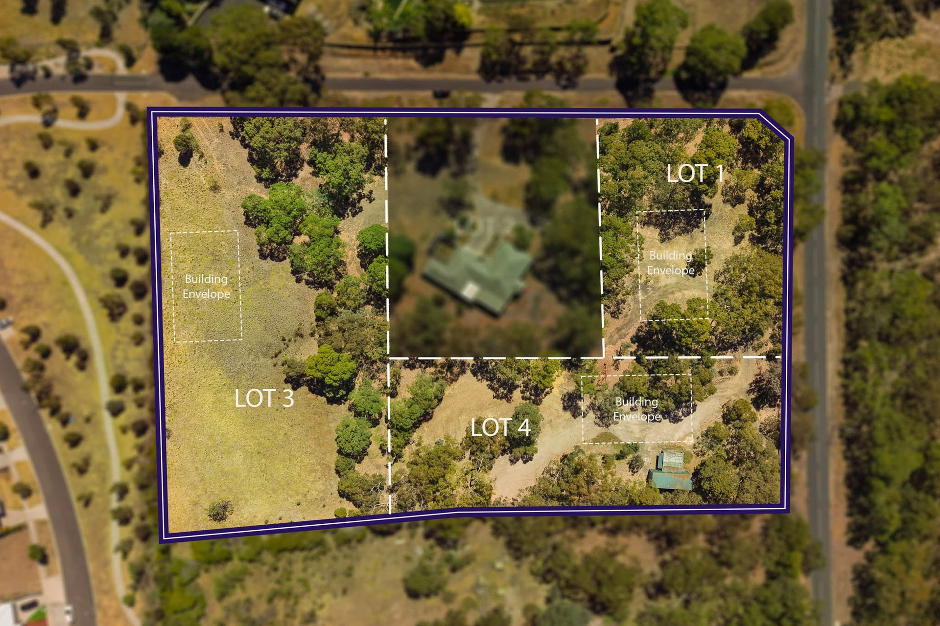 Large allotments comprise: Lot 1 at 4,081 m² (approx.), Lot 3 at 8,122 m² (approx.), and Lot 4 at 4,494 m² (approx.) with essential services available (water and power). Each parcel provides ample space to conceive a full scale luxury home with room for lifestyle assets such as a pool or tennis court (STCA).
