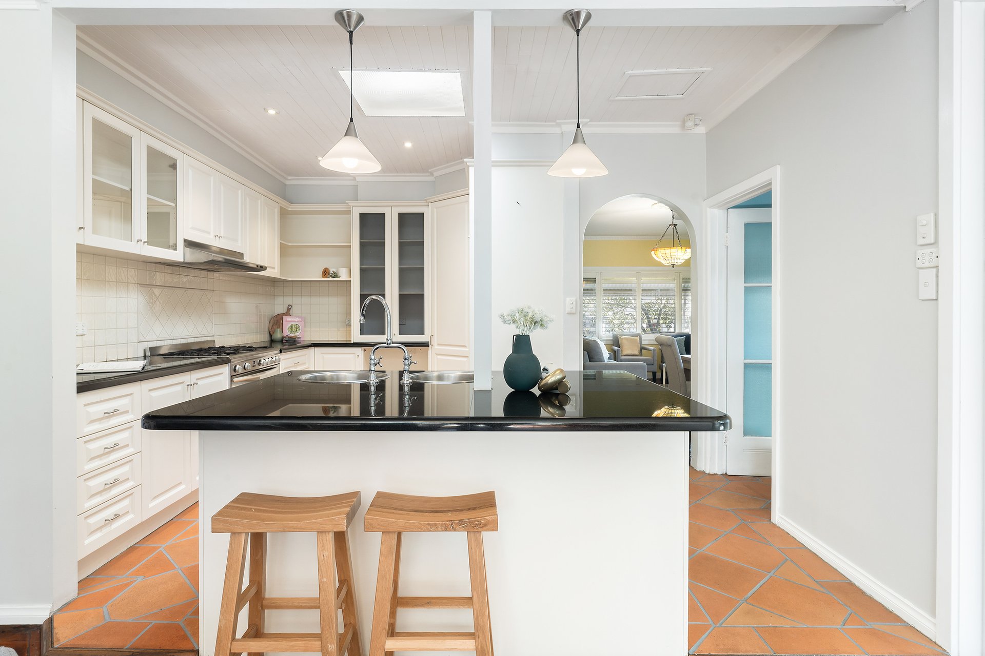 The modern north-facing family and dining zone is open, light filled and relaxed, and flows into the kitchen which features stone countertops, an island bench, pantry space and quality appliances. A separate laundry and powder room offer added convenience.