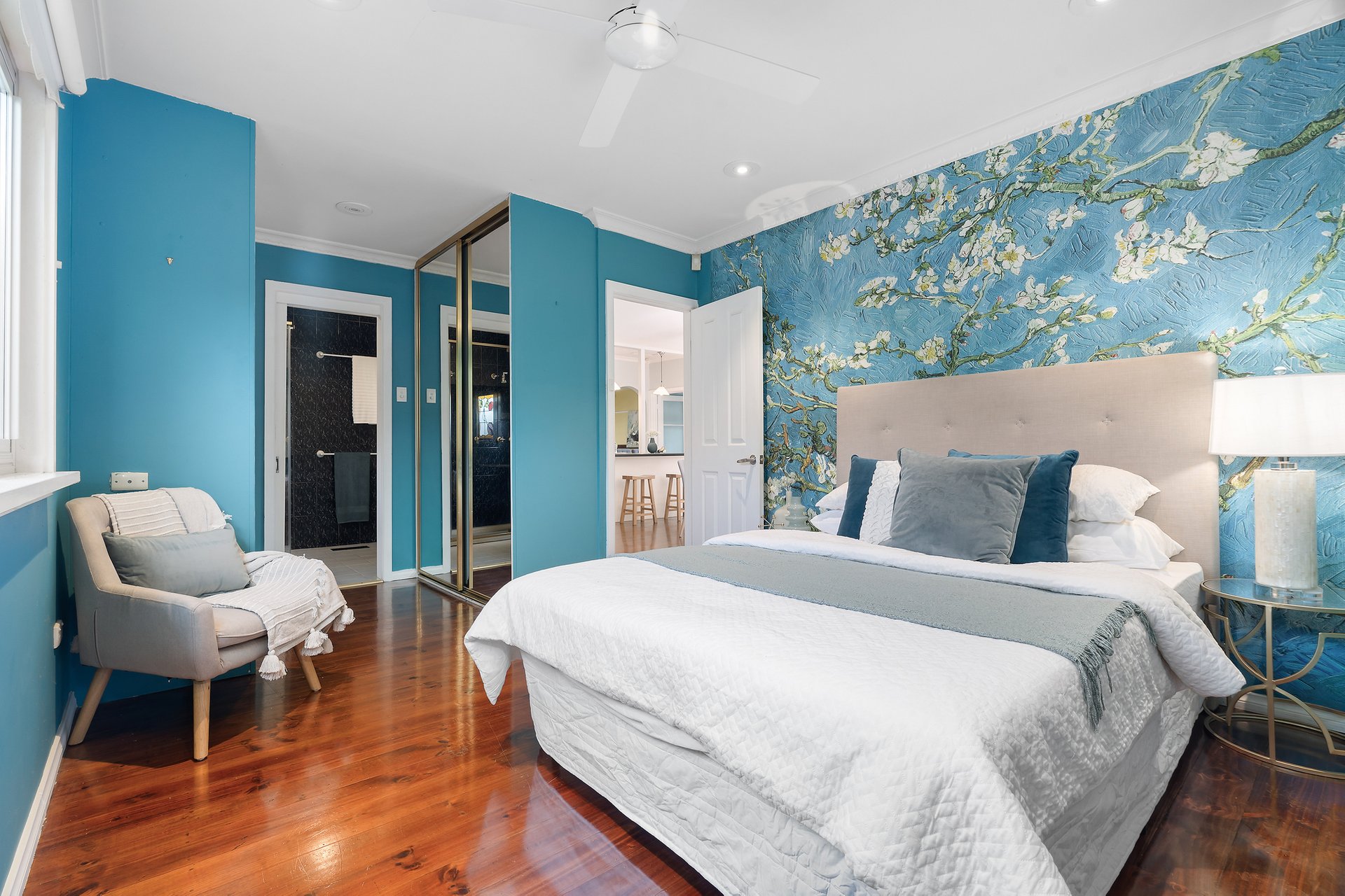 A landscaped front garden frames the entrance to the property and is complemented by a generously sized north-facing entertaining area at the rear. Once inside, polished floorboards, plantation shutters and plenty of storage make for easy living. Two master-sized bedrooms each feature double mirrored built-in robes and private ensuites, and a sizeable third bedroom is ideal for younger children or guests. A large front lounge room offers family versatility, and a secluded study/office provides a cosy and quiet retreat.