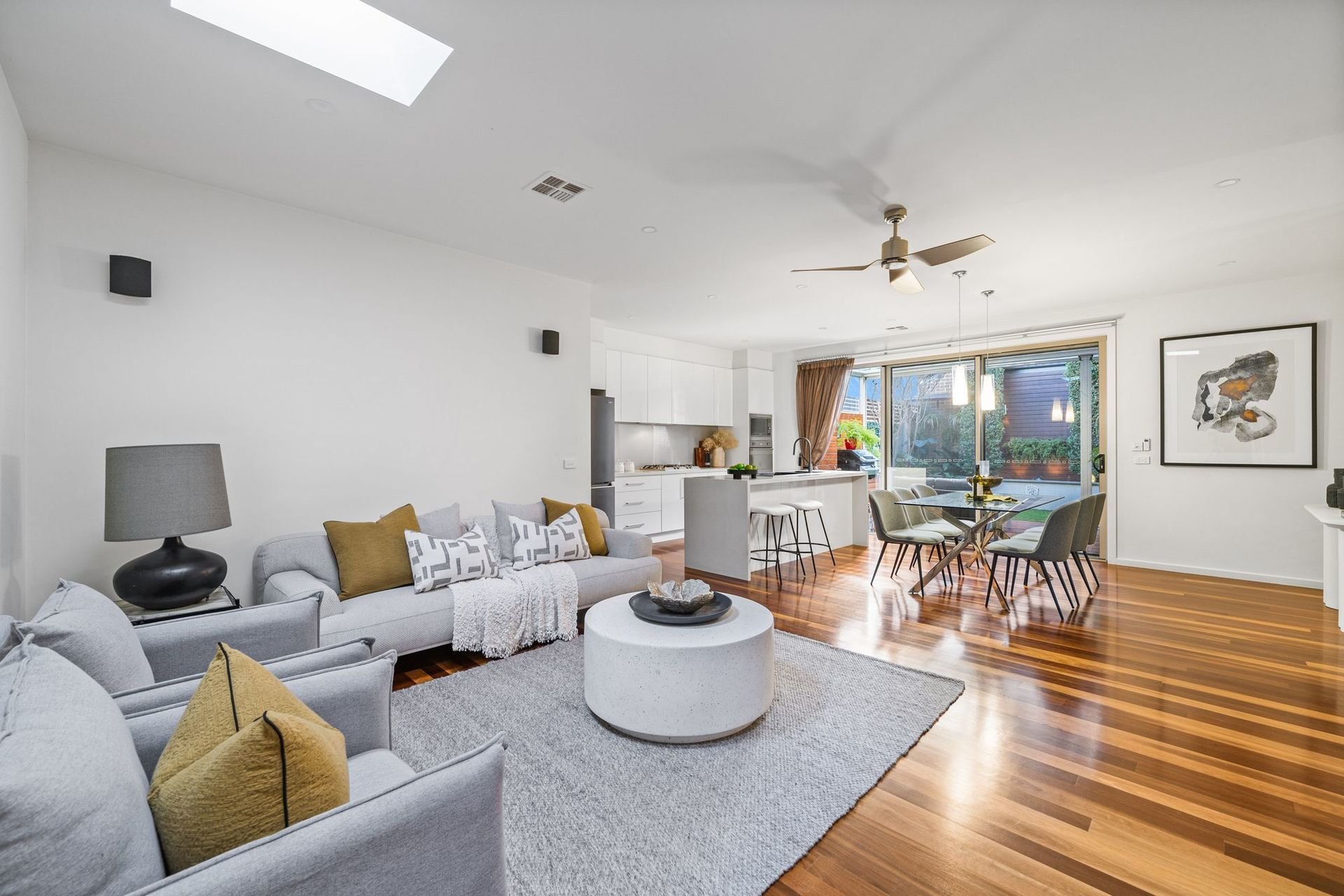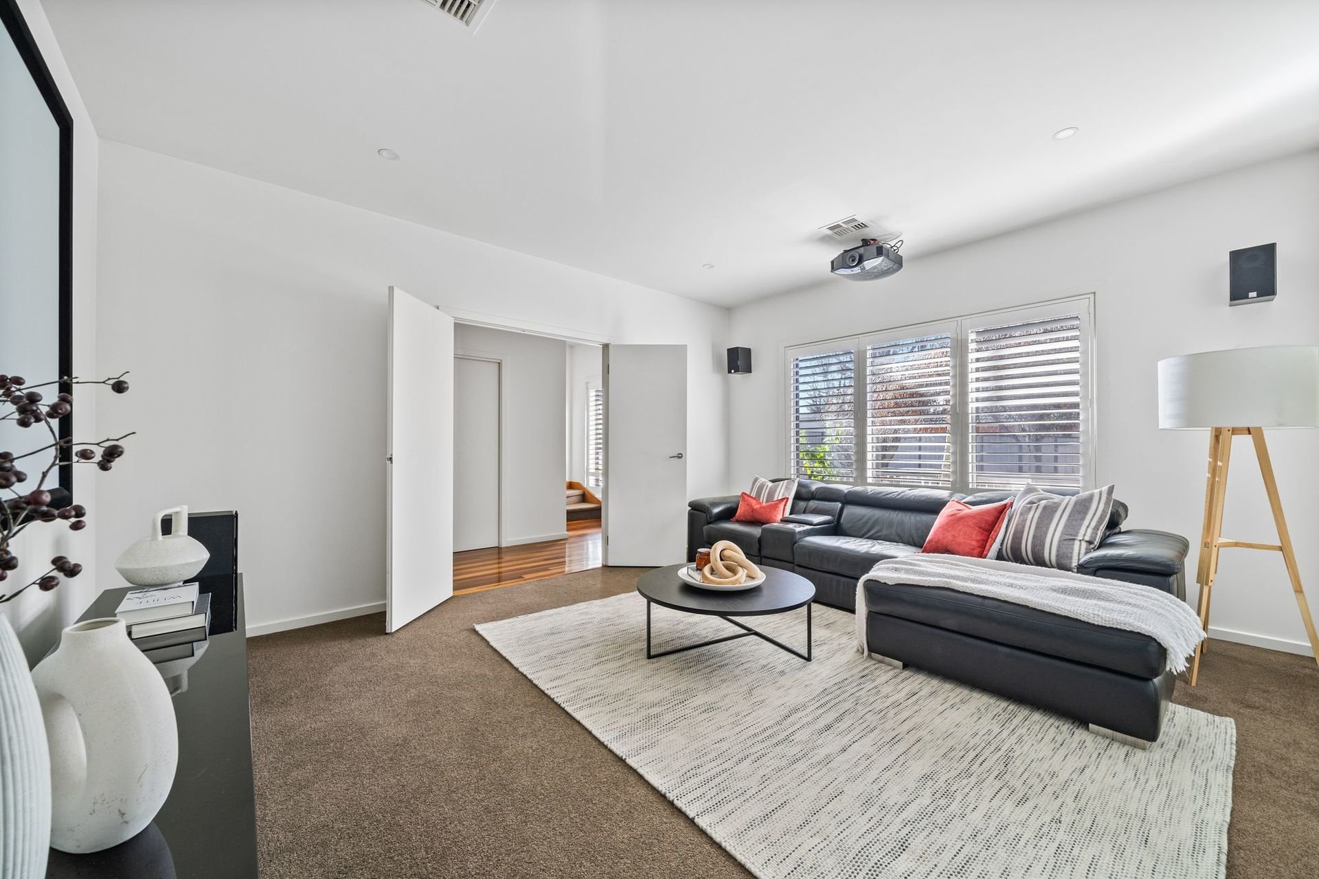 Beautifully proportioned and bathed in natural light, the home features a flexible ground floor layout that includes a home theatre or fourth bedroom, preplumbed and prewired for a future master suite with ensuite and walk in robe.