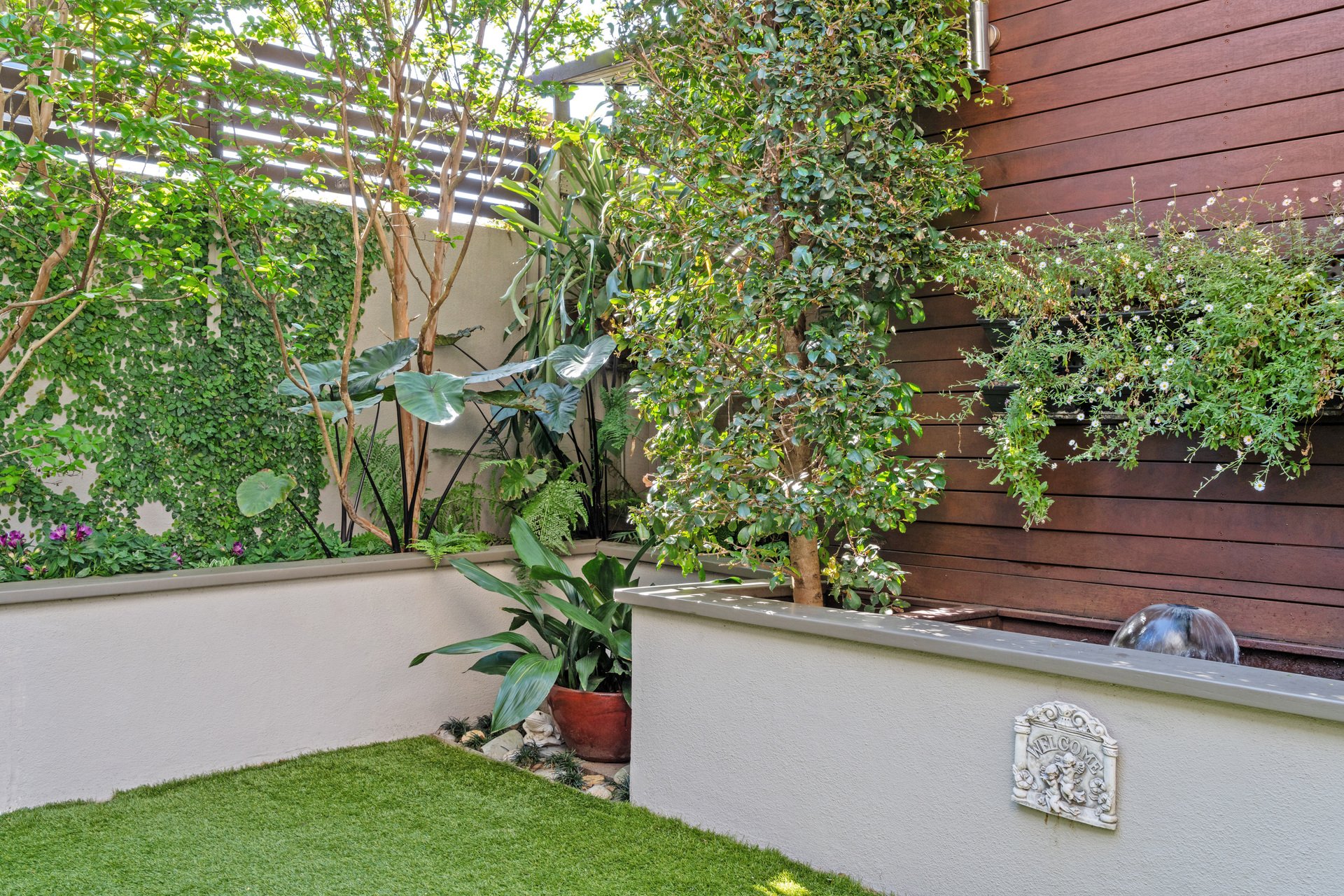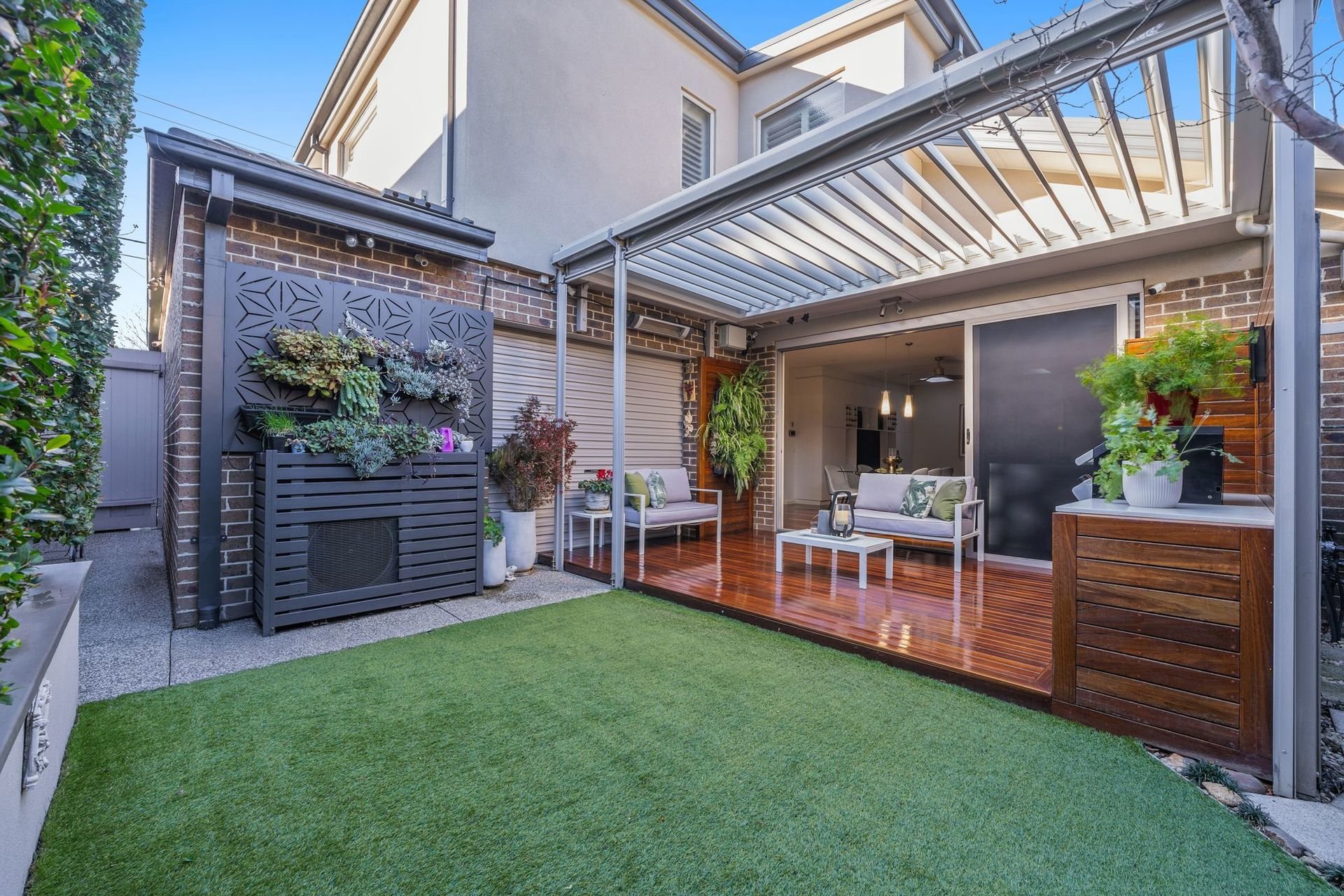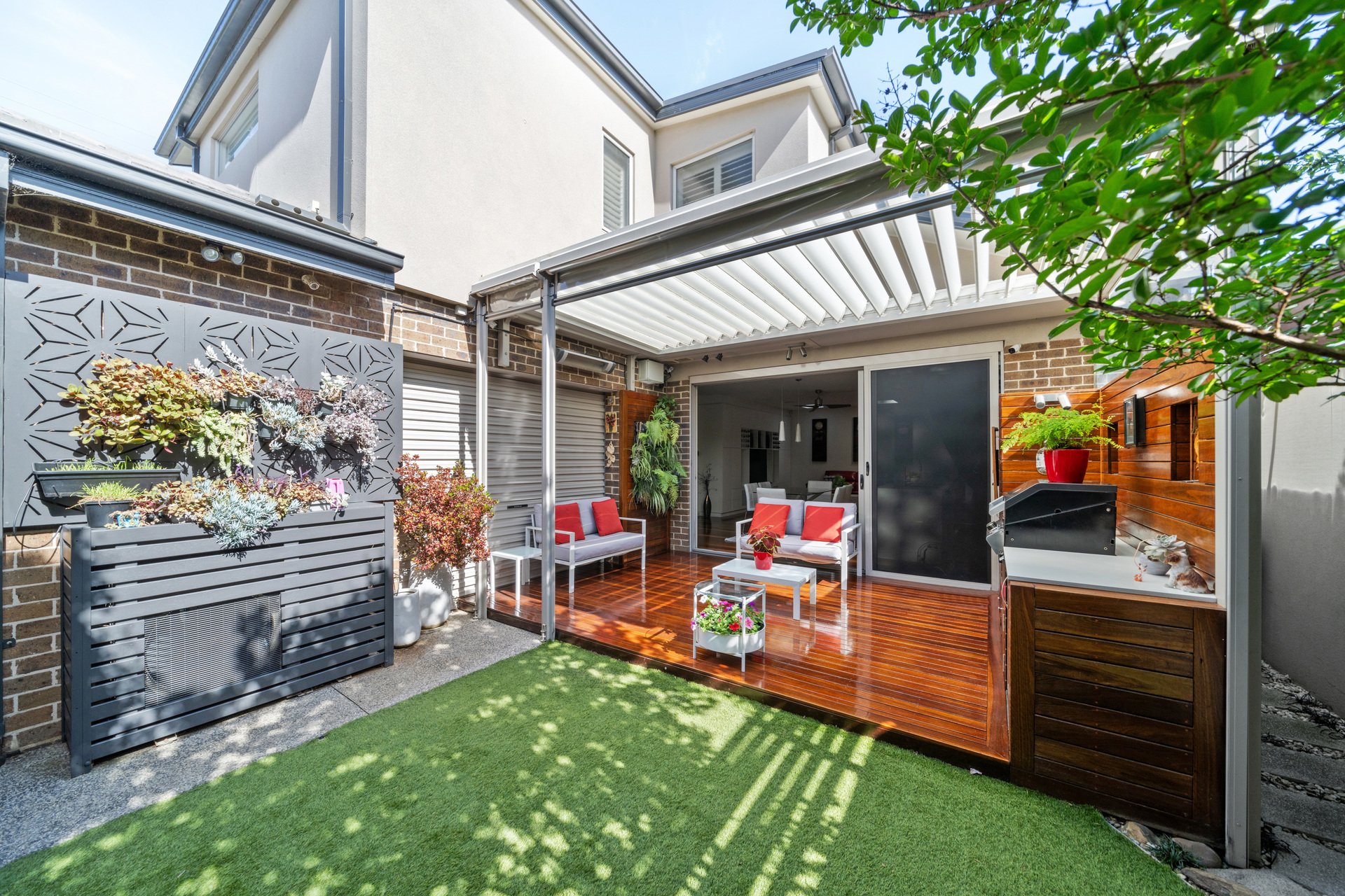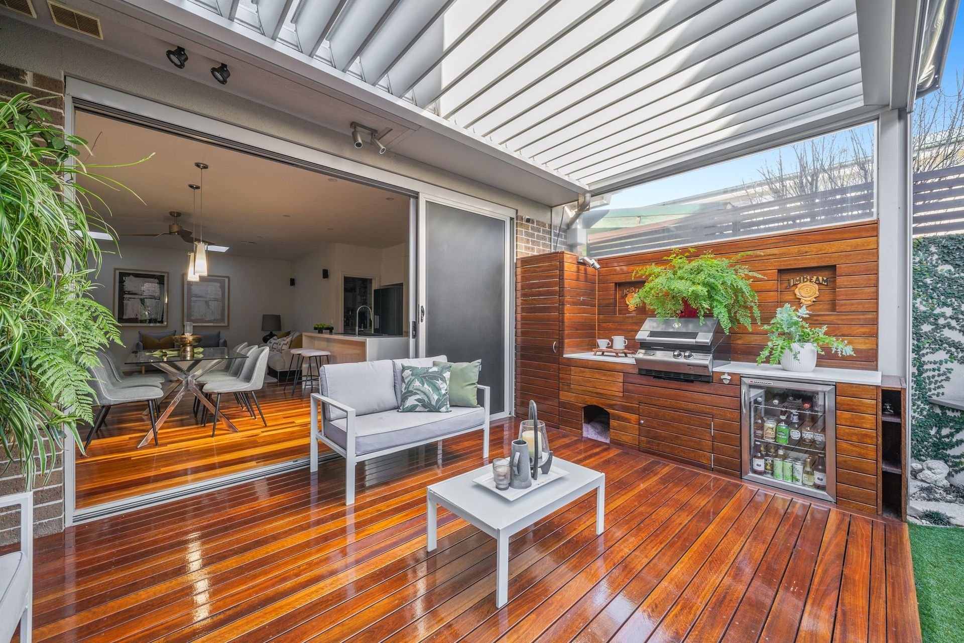 Designed for year round enjoyment, the outdoor entertaining zone features an automated Vergola roof system, built in barbeque kitchen, café blinds, tranquil pond and established, beautifully landscaped gardens with garden lighting and automated irrigation.