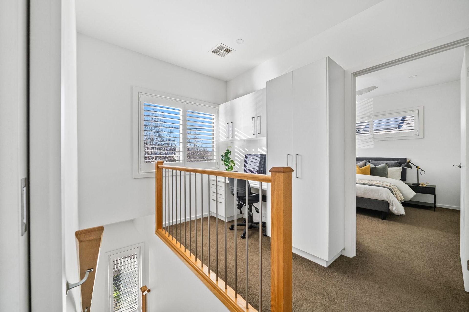 Upstairs, three spacious bedrooms include a master with walk in robe and ensuite, with a dedicated study nook, sparkling central bathroom, guest powder room, full size laundry and internal access to a remote controlled double garage add further functionality.