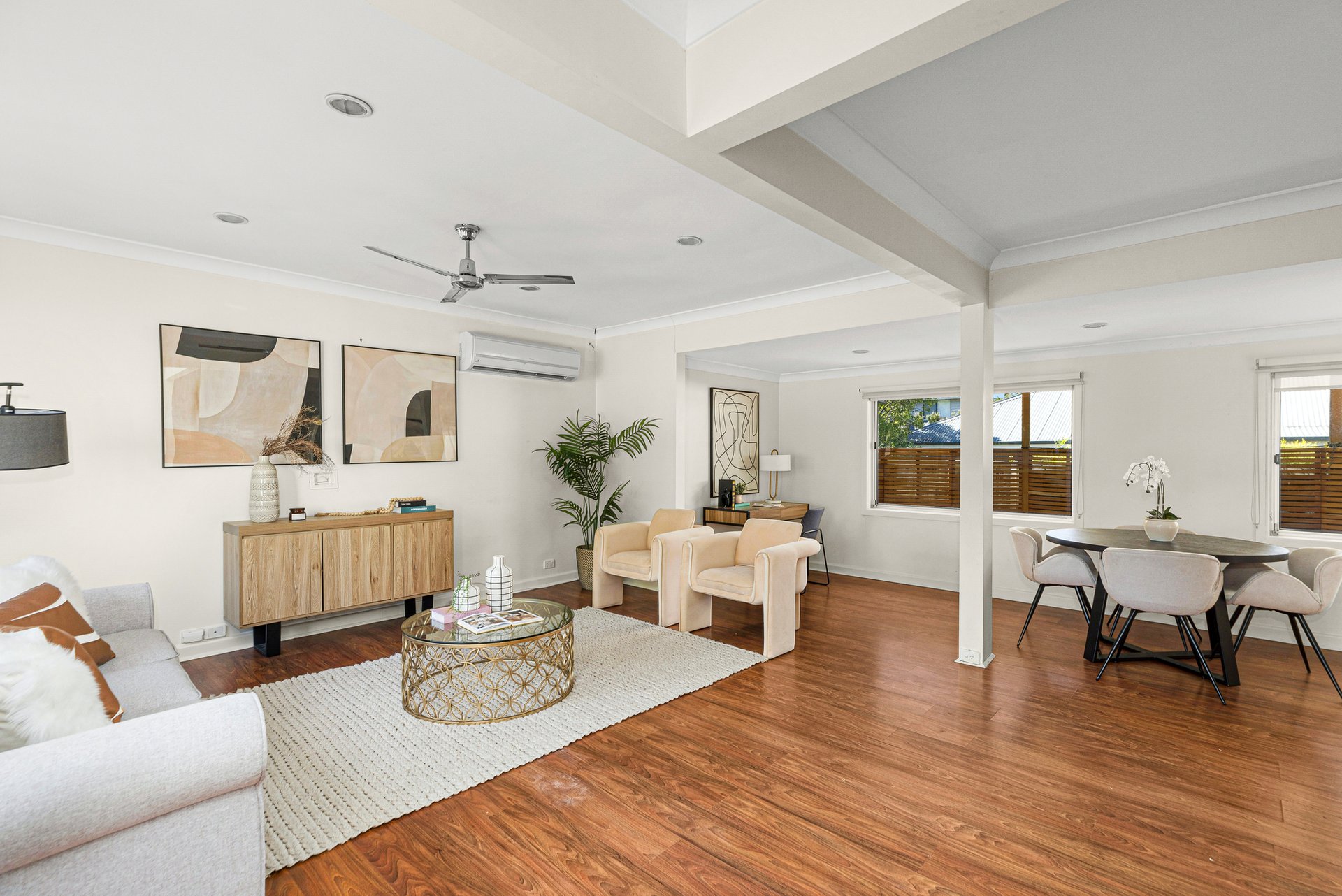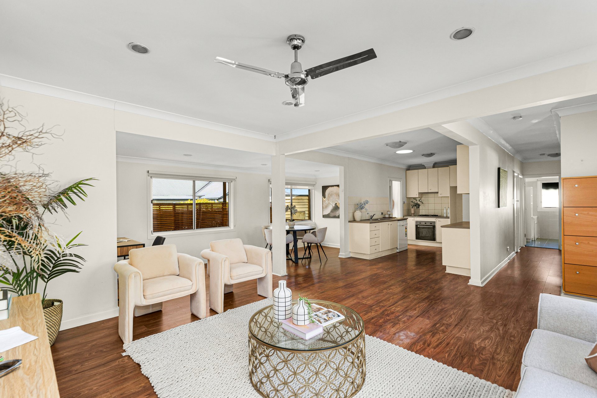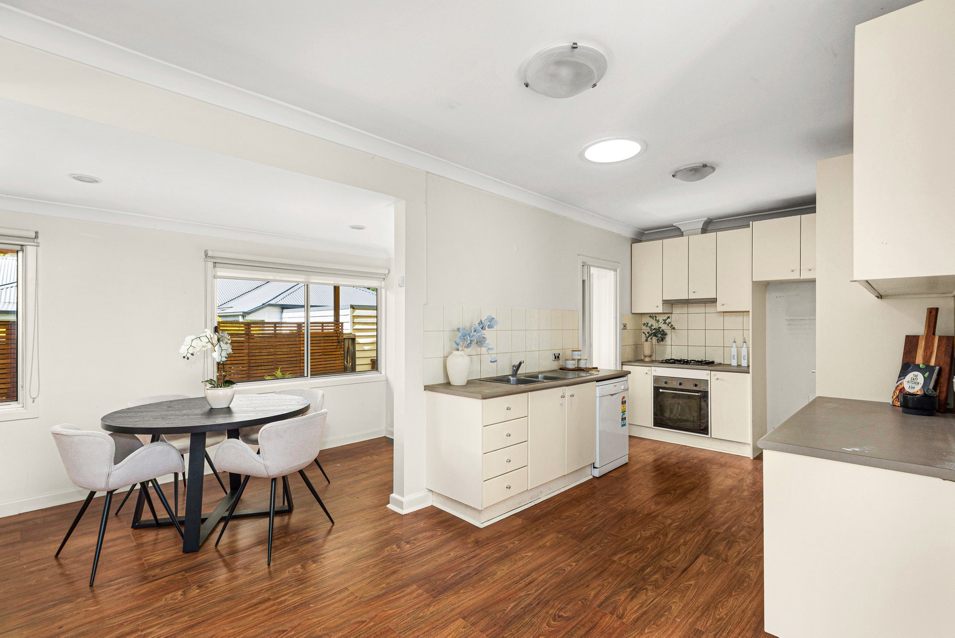 A generous separate dining area is positioned alongside a spacious kitchen. The impressively proportioned backyard includes plenty of lawn with low maintenance leafy borders, providing plenty of secure space for pets or children’s play.