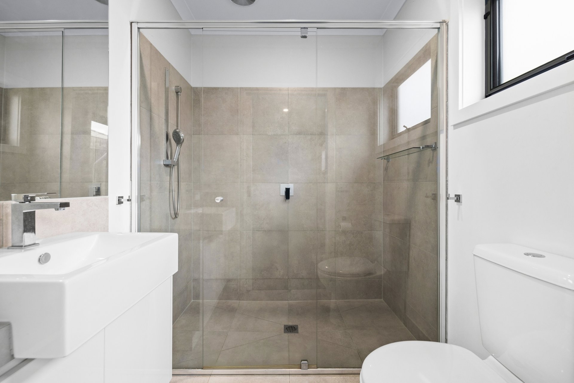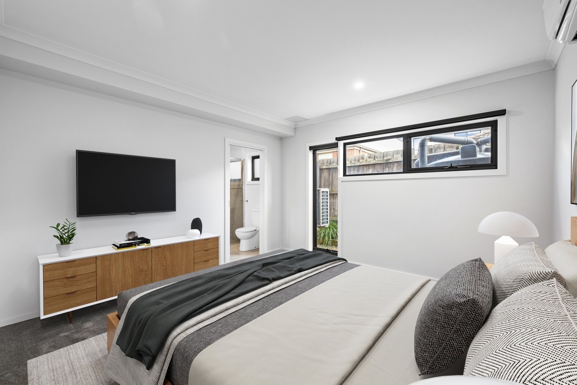 Both levels of the home feature a master suite with a walk-in or built-in wardrobe, as well as a sleek ensuite. The ground floor room also boasts a deep under-stair storage cupboard.