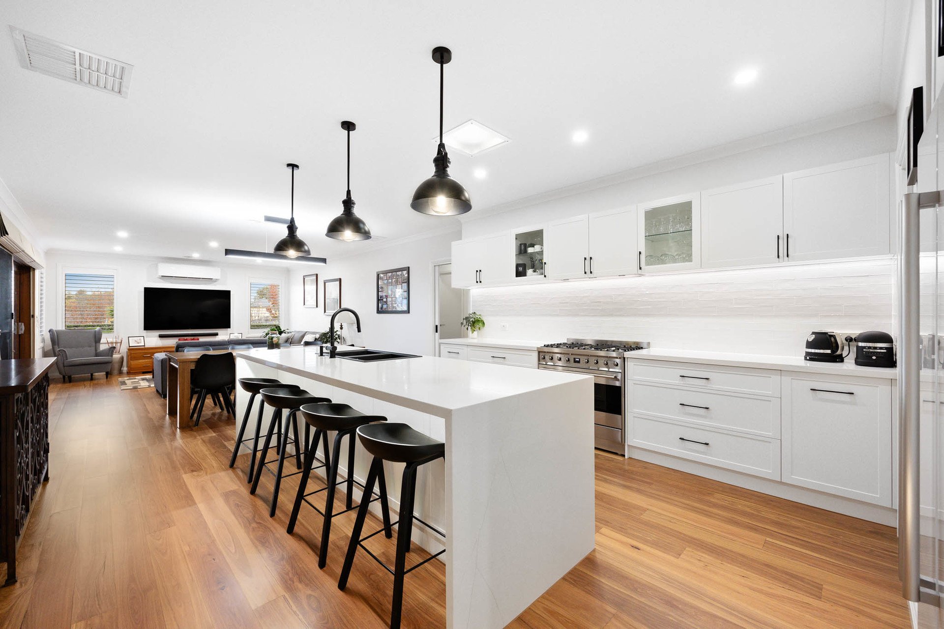 A home of unparalleled distinction, this luxurious residence delivers an extraordinary family lifestyle on an impressive 1244m² (approx.) parcel of manicured, landscaped grounds. From its stately entry portico, the home opens to lavish interiors enhanced by plantation shutters, Australian Blackbutt engineered timber flooring, and spacious dimensions throughout.